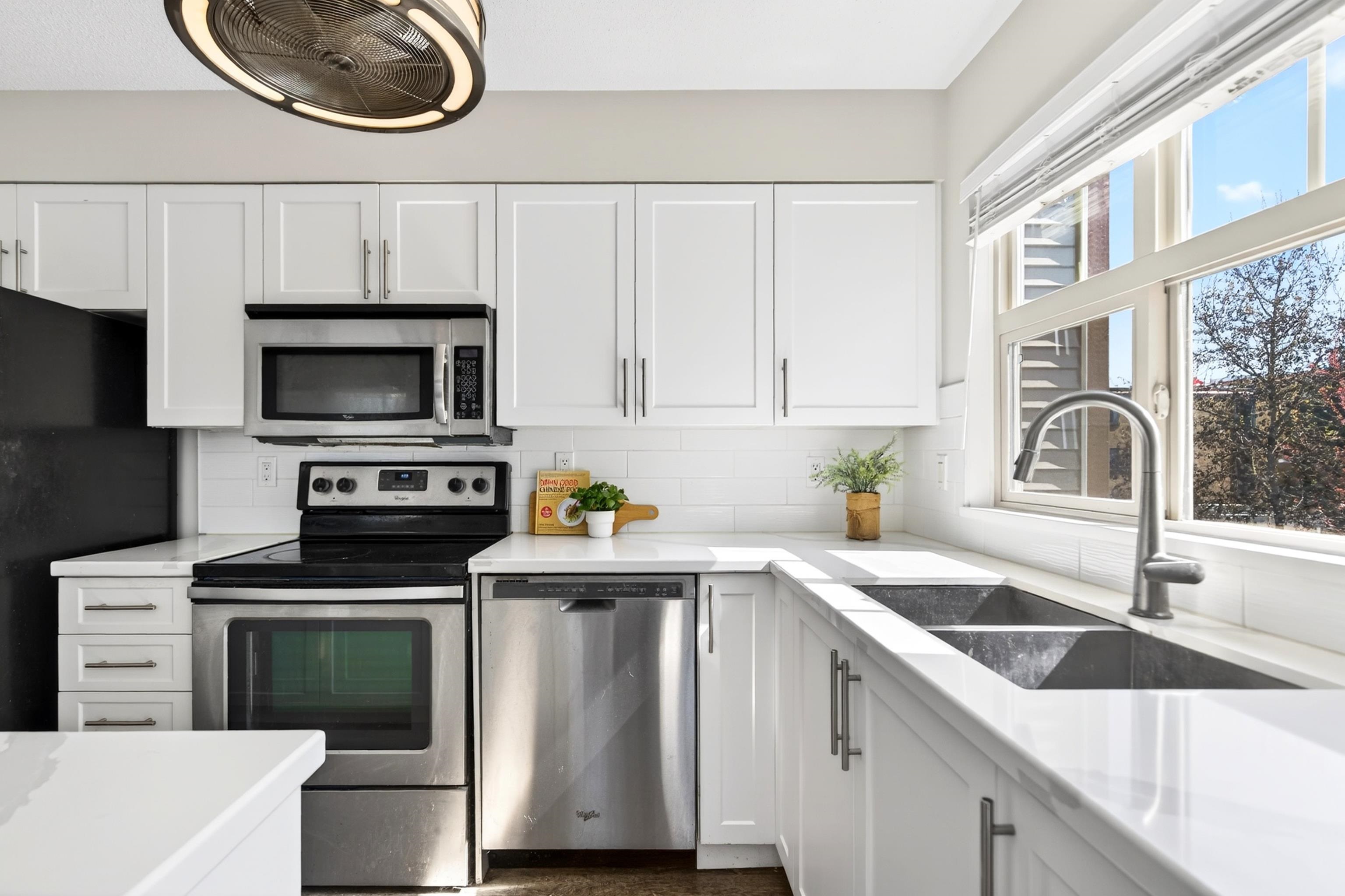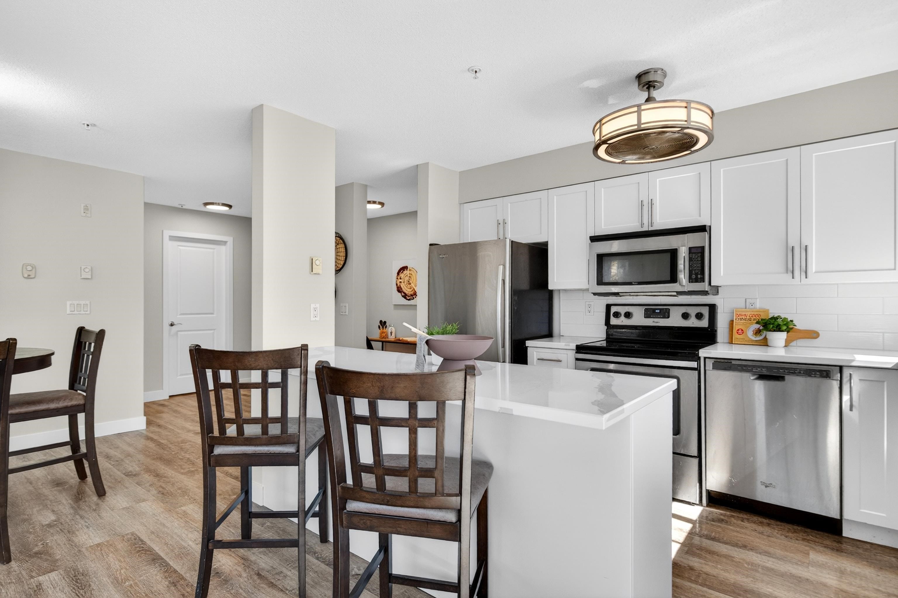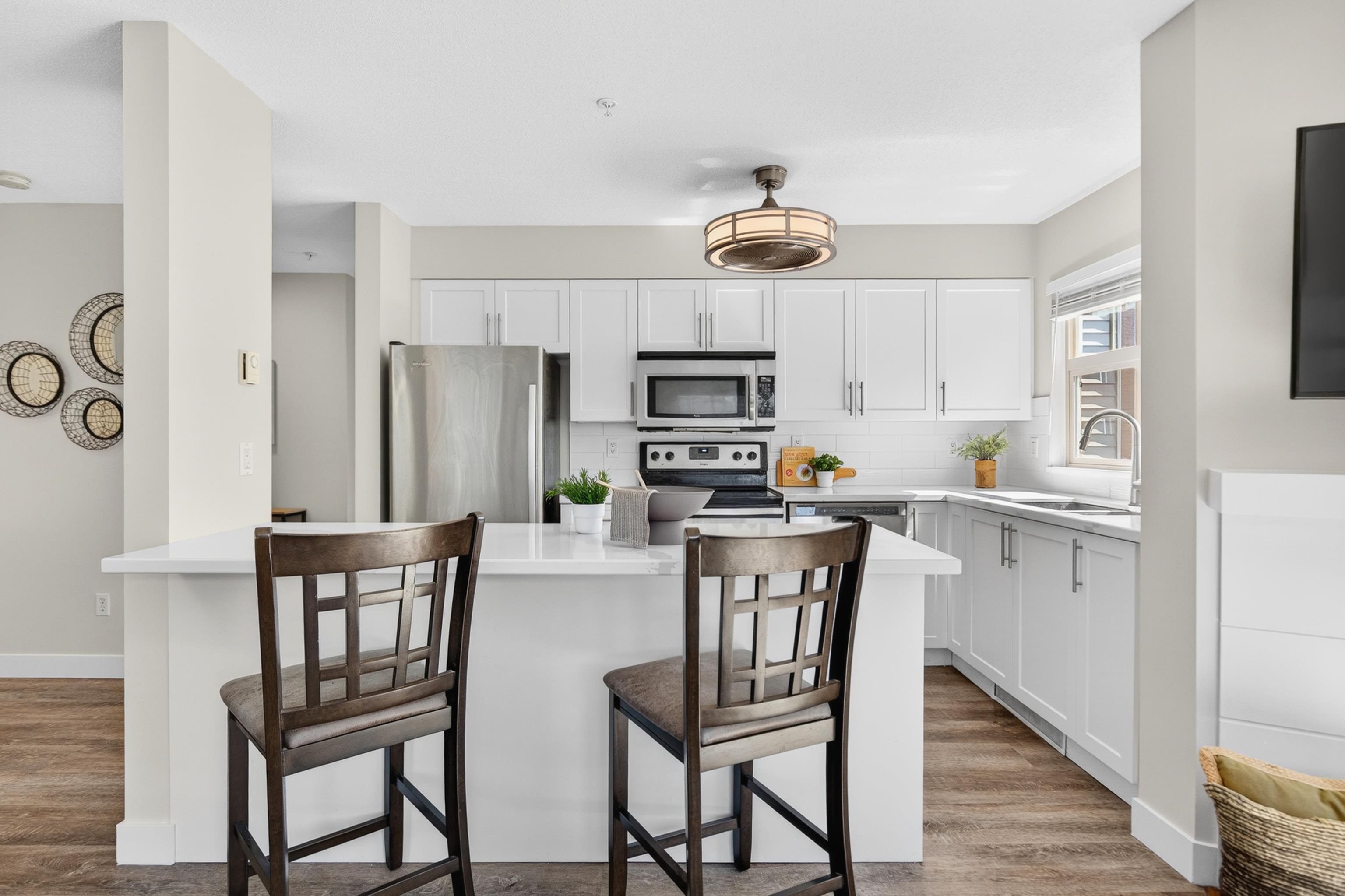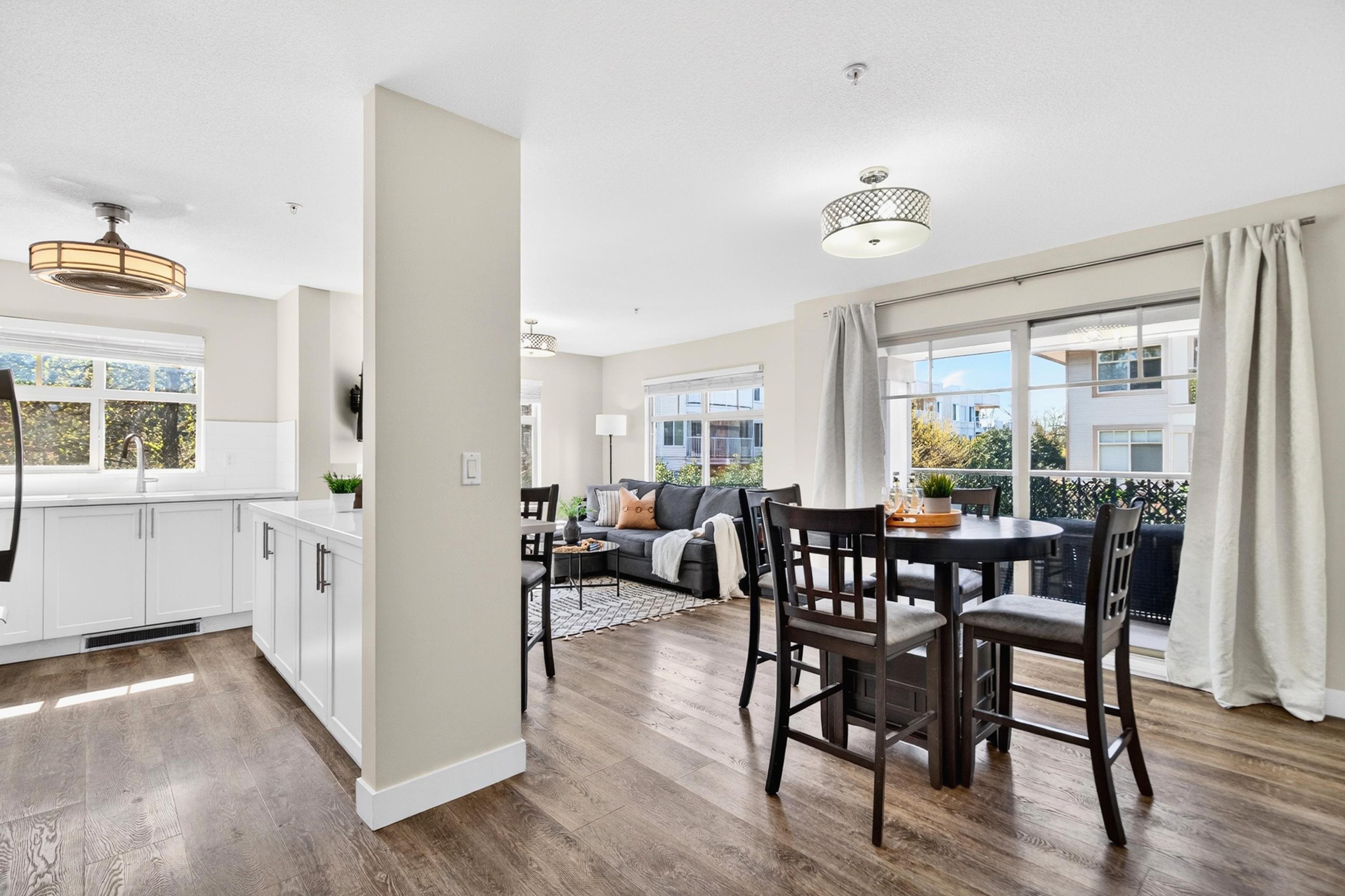 Stylish and bright, this 3rd-floor corner unit at Urbano blends modern design with everyday comfort. Featuring 2 bedrooms plus an open den, perfect for an office. A full-sized kitchen with breakfast bar, and a bright south-facing layout perfect for entertaining. Brand new paint throughout, recently updated with laminate floors, lighting, and cabinet doors. Smart floor plan with storage on the same floor and 2 tandem secure parking stalls. Just steps to schools, transit, and a short walk to downtown Maple Ri...