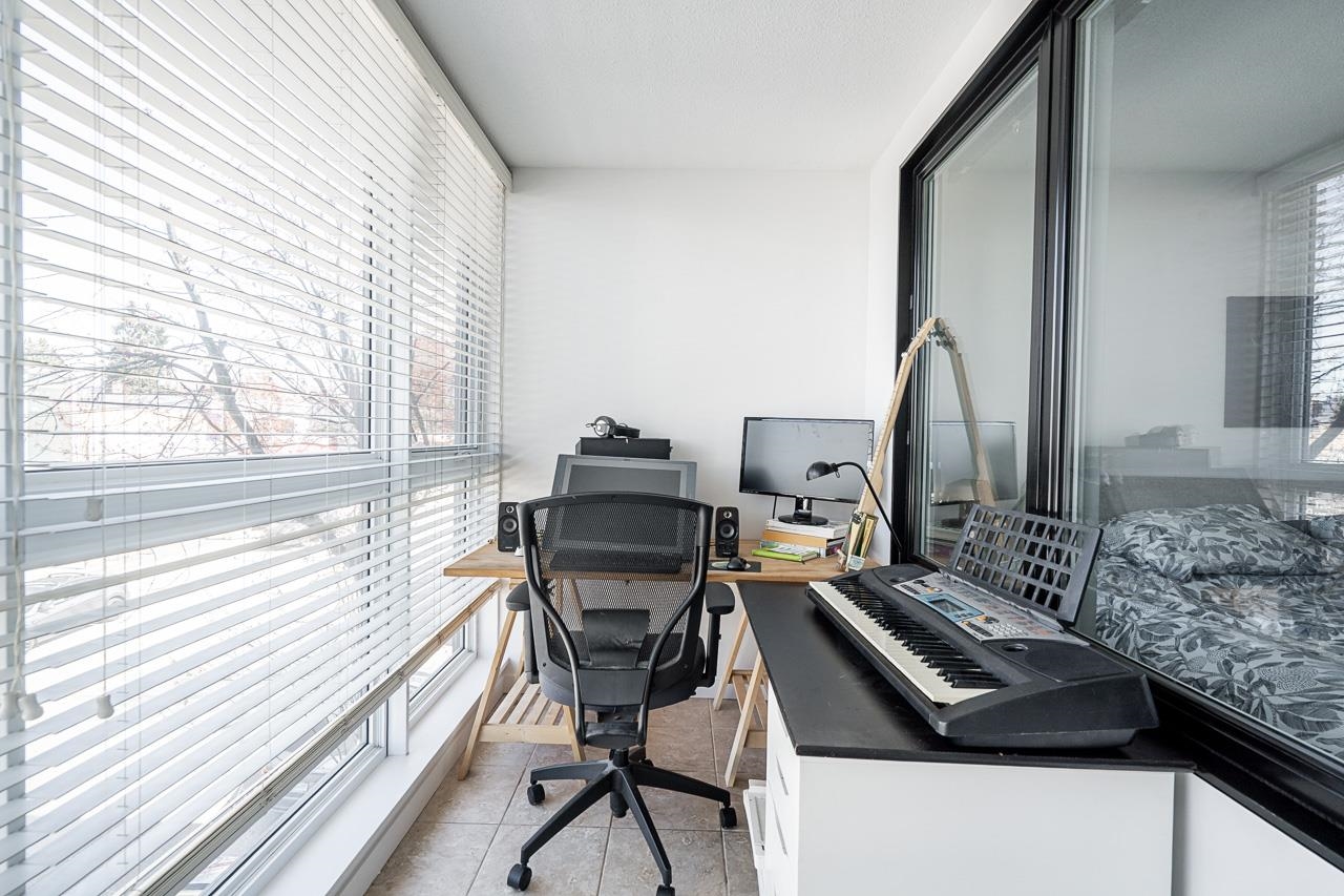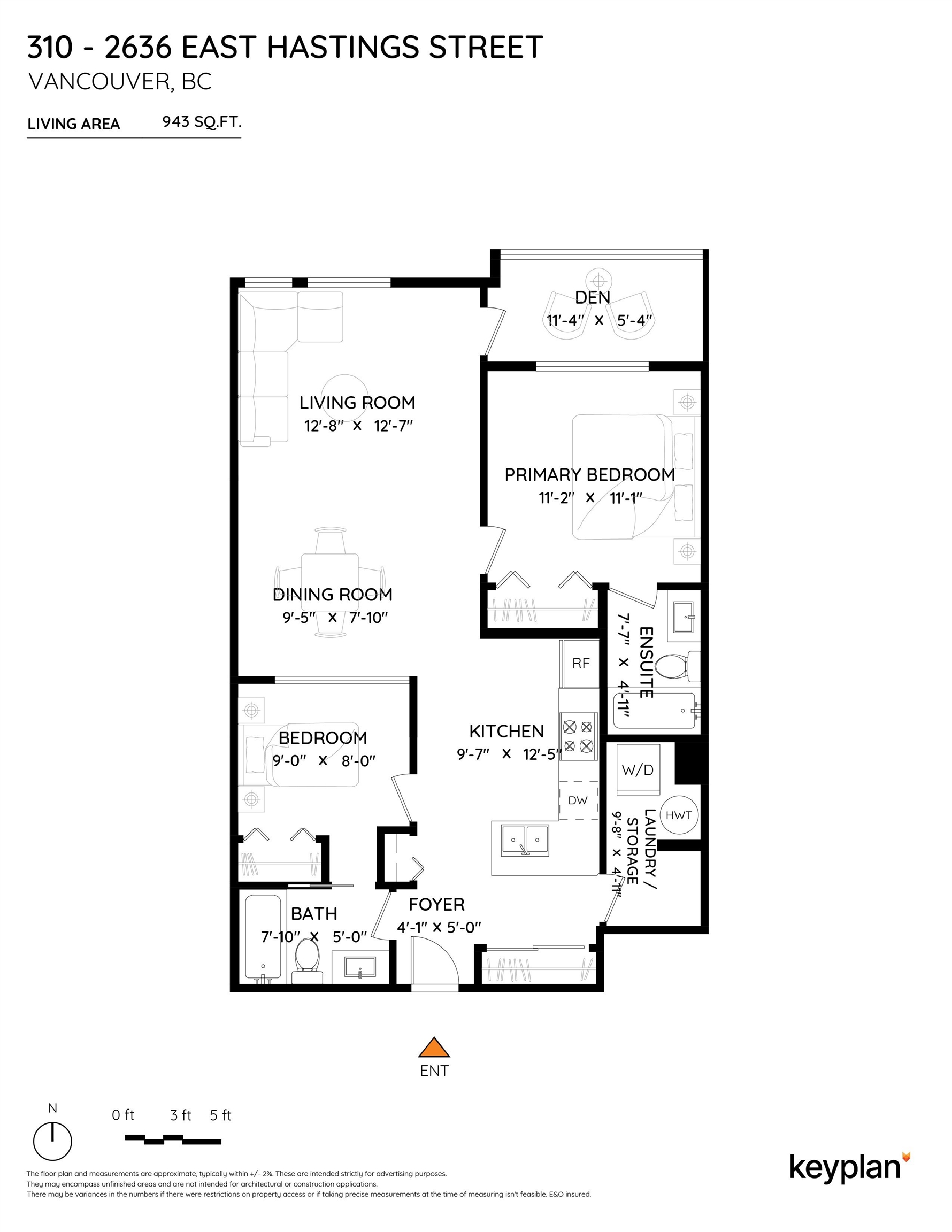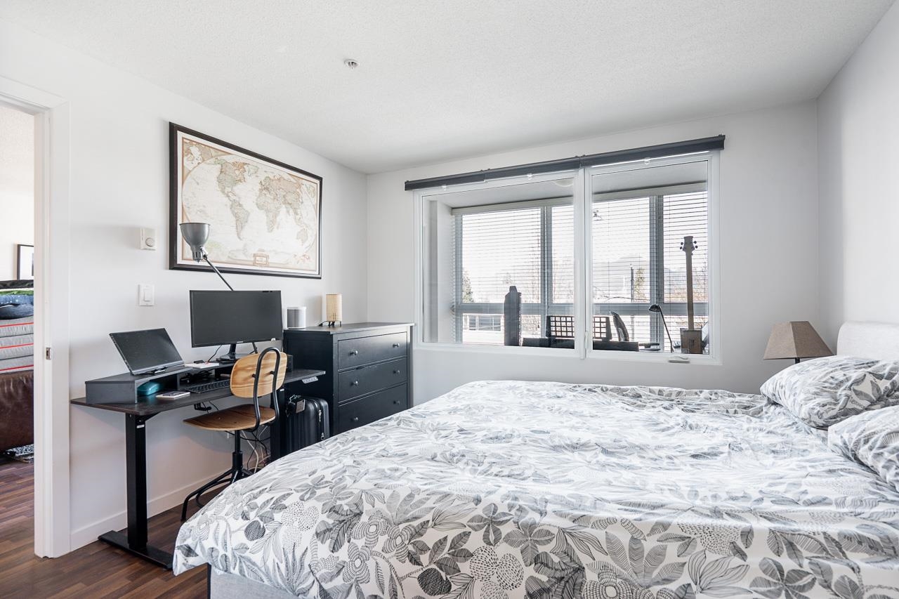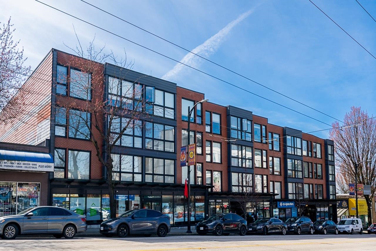 Welcome to this well-designed 2-bedroom + den home in the vibrant Hastings Sunrise neighbourhood at “Sugar”, a chic concrete boutique low-rise building. This bright suite features an open-concept layout with a very spacious living & dining area boasting a beautiful mountain view, plus a roomy kitchen with stainless-steel appliances & granite countertops. The thoughtfully separated bedrooms provide privacy, with the primary bedroom accommodating a king bed and featuring a full private ensuite bathroom. The d...