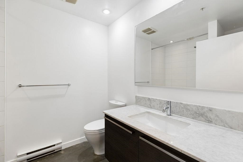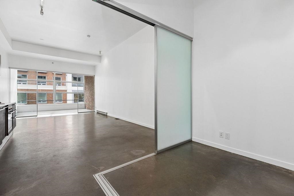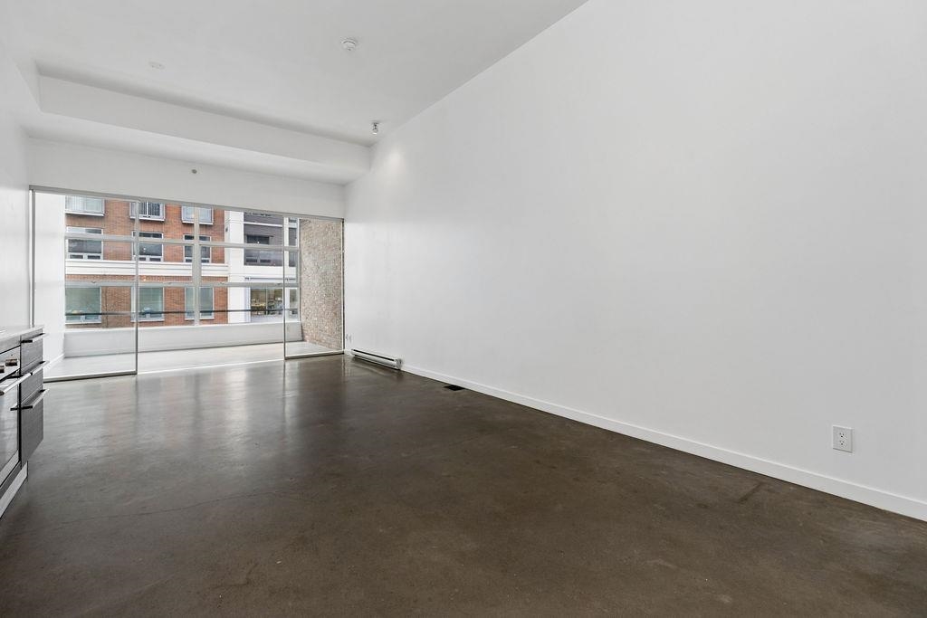 Loft-style living in Gastown at the Paris Block, a heritage conversion by Salient Group. This space blends character w/ a modern feel, feat. exposed brick, over-height ceilings & polished concrete floors. Open-concept layout with a spacious living area, plus a large den that can be reconfigured to suit your lifestyle. Linear kitchen w/ stainless steel countertops & backsplash ties into the home’s aesthetic. Wide entry hallway & in-suite laundry add to the practicality. W/ a shared rooftop feat. BBQ and city...