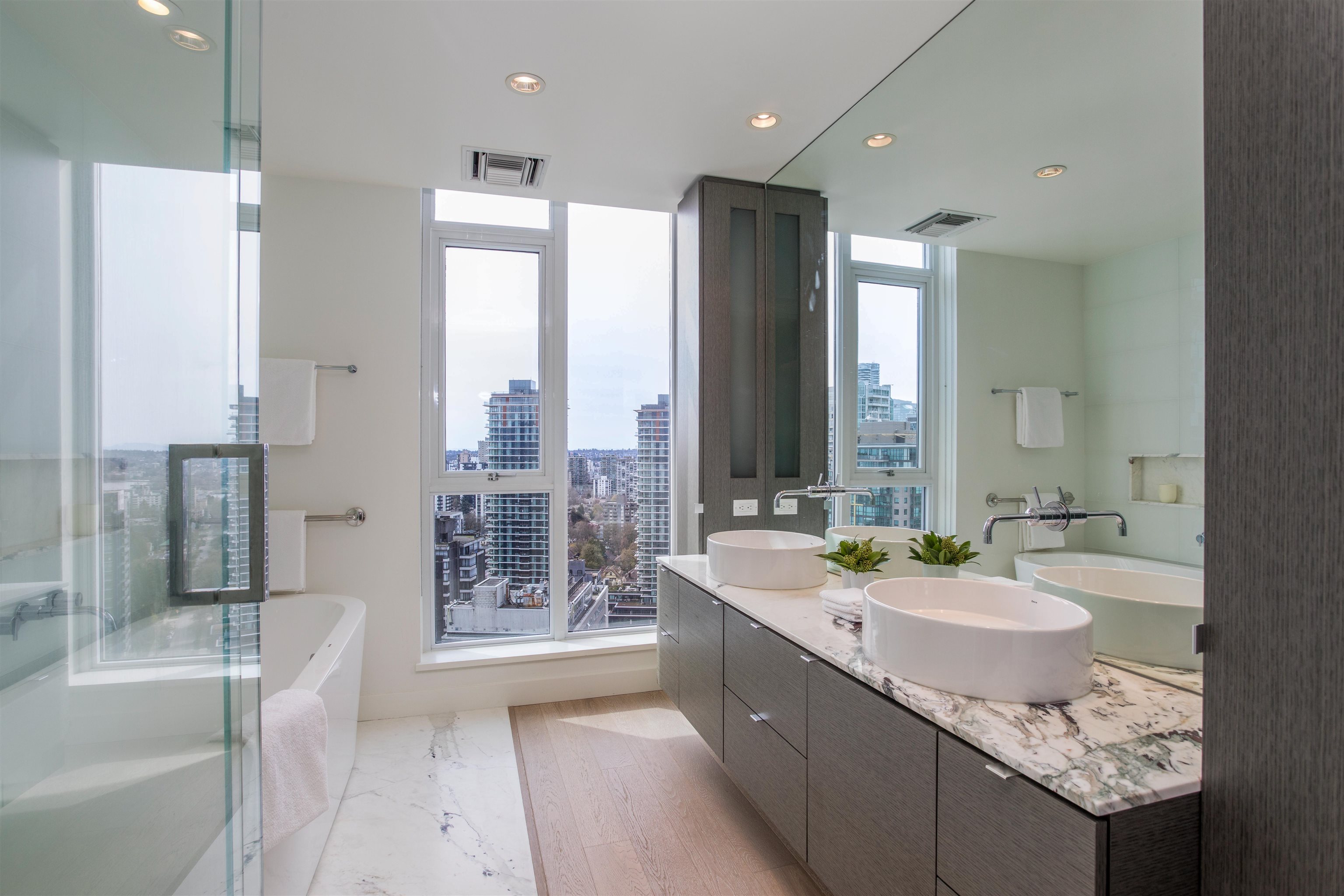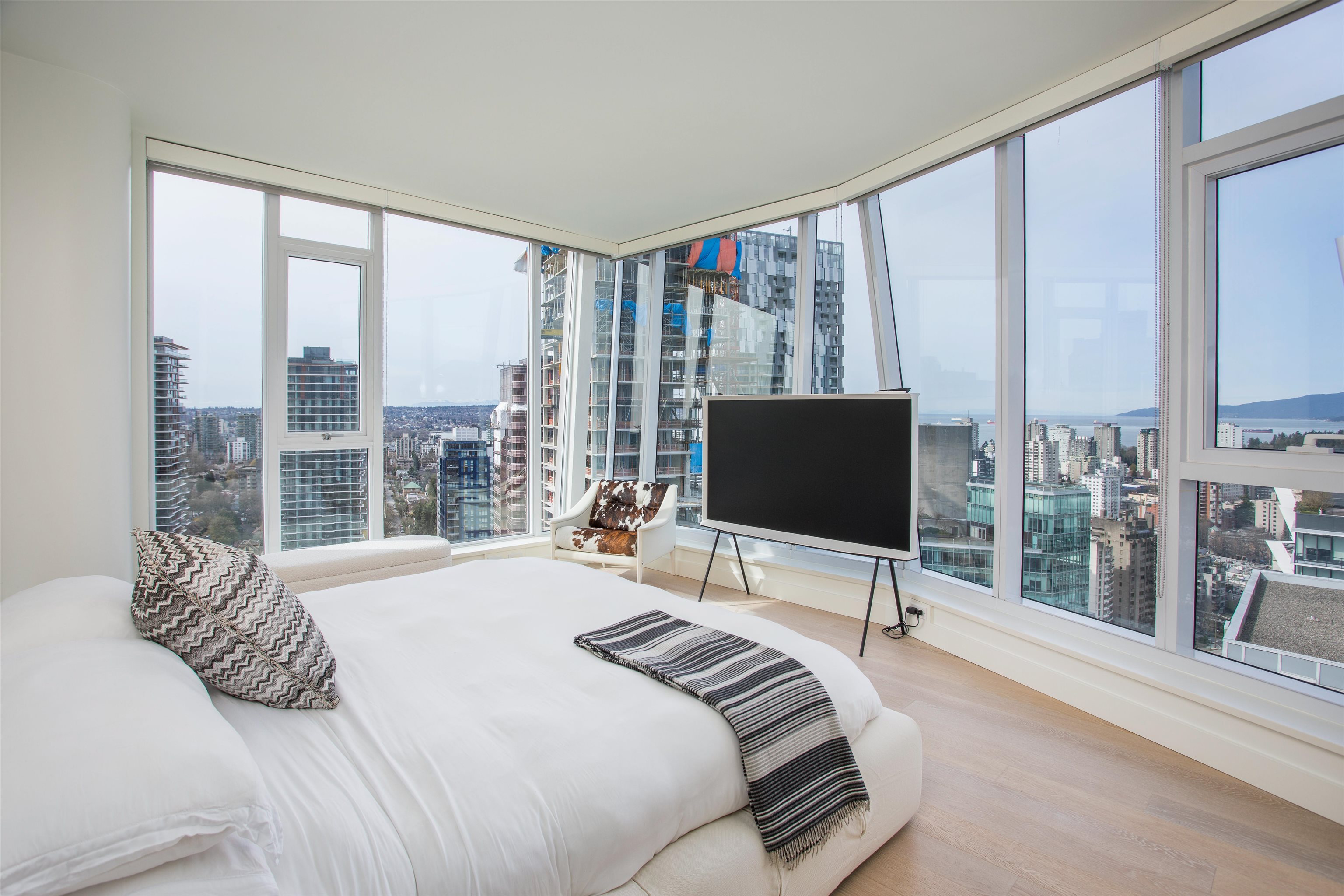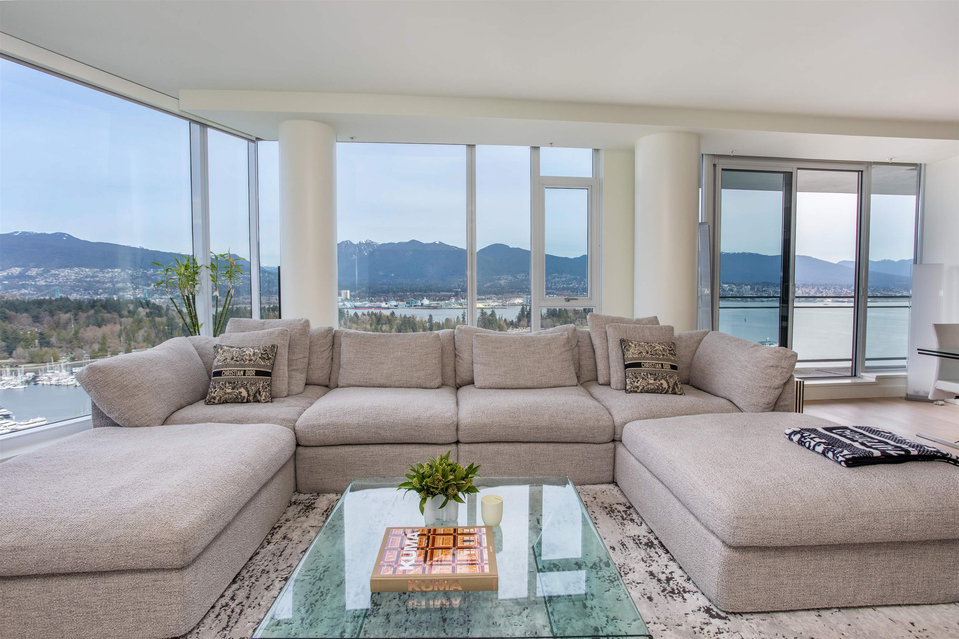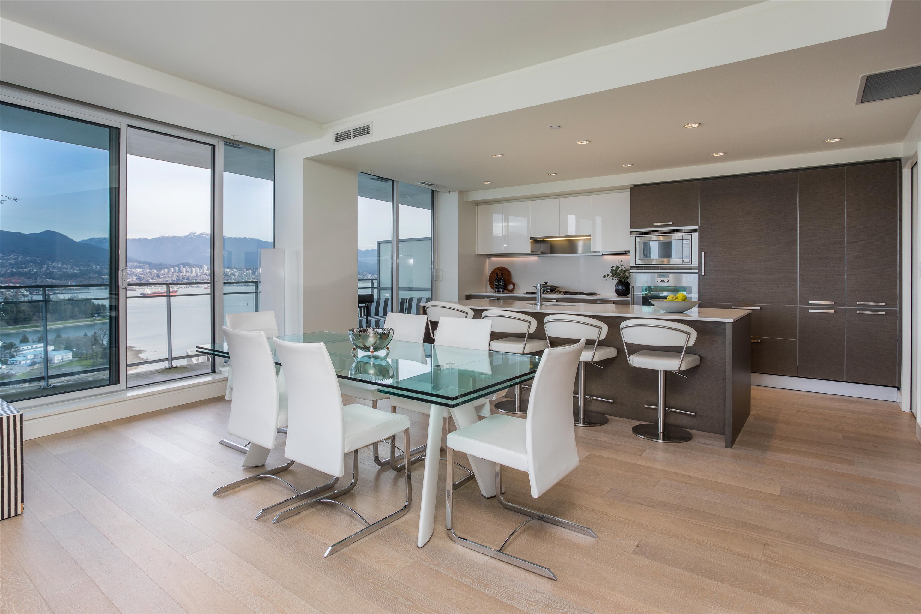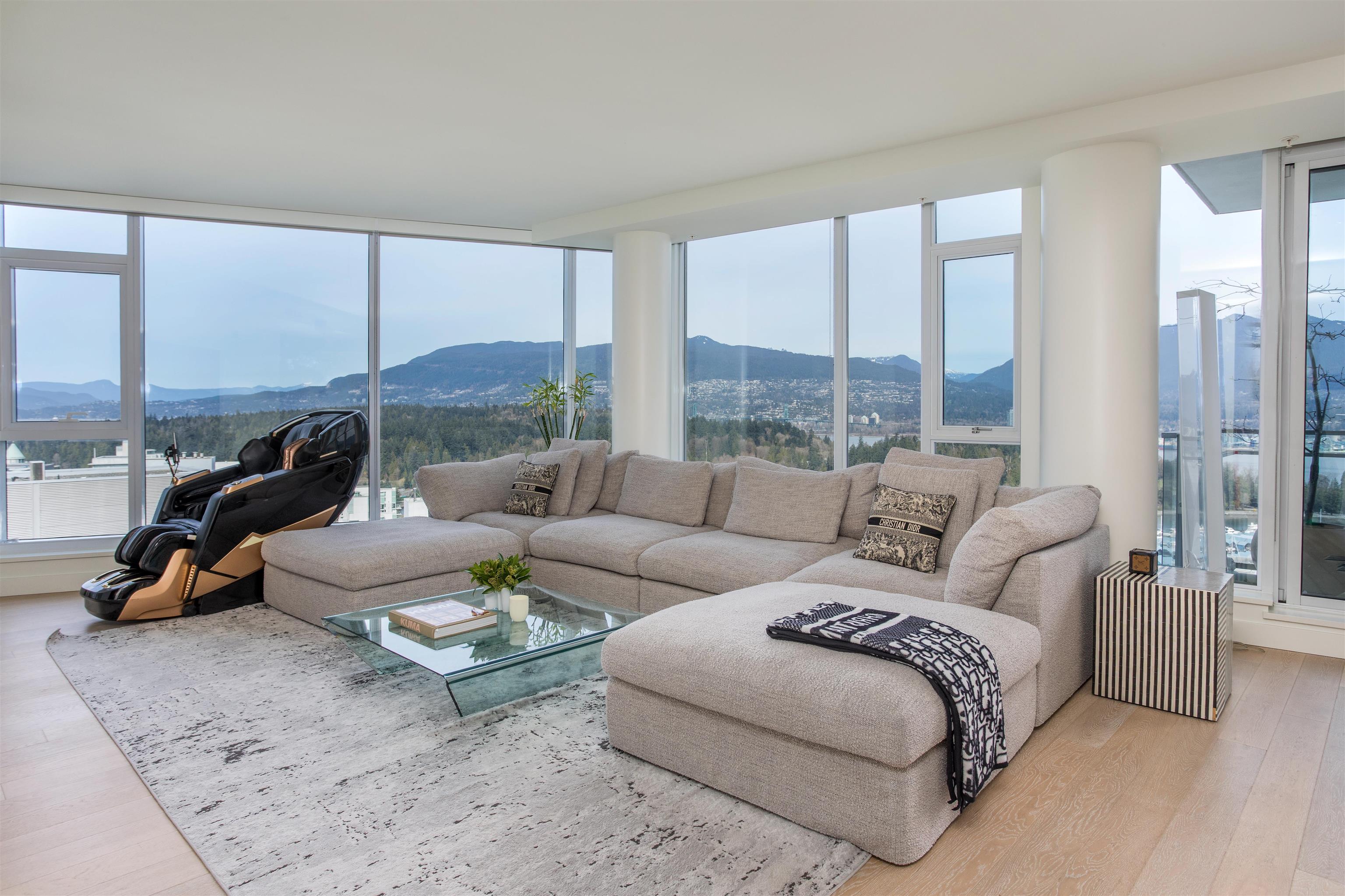 Exceptional NW corner residence at West Pender Place features panoramic views of the Ocean, Mountains, Burrard Inlet, Stanley Park, and English Bay. This spacious 2,051 sq ft, 2-bedroom-plus-den home provides scale, light, and versatility, with the den suitable as a third bedroom. Over-height ceilings and floor-to-ceiling windows enhance the feeling of space and showcase stunning views. The kitchen is equipped with Dada Cucine cabinets, a large centre island, and Gaggenau and Sub-Zero appliances. An expansi...