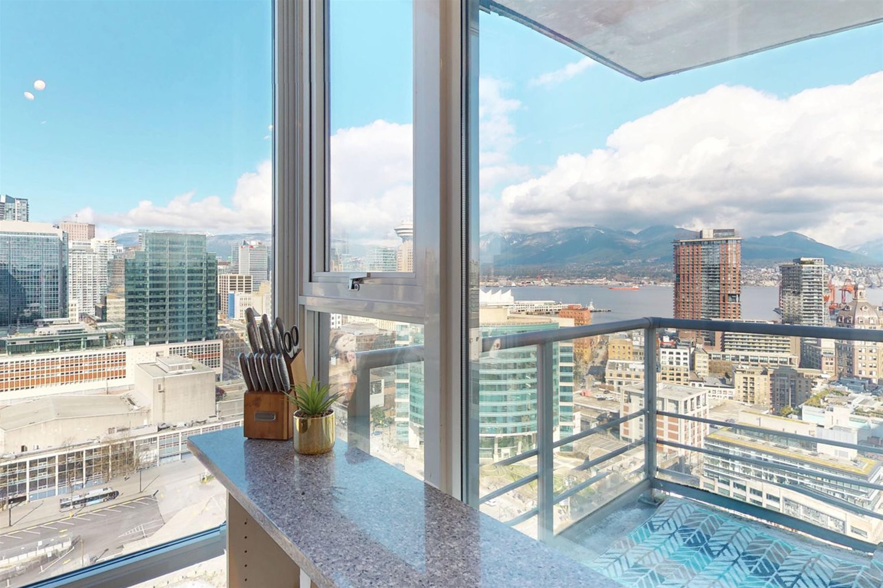 STUNNING PENTHOUSE w/PRIVATE 450sqft ROOFTOP PATIO, an entertainer’s dream! Welcome to Spectrum 2 by Concord Pacific. This spacious NW corner suite perched on the 31st flr offers spectacular views of Canada Place, the Ocean & North Shore Mountains. Thoughtfully designed w/2 separated bdrs for privacy, floor-to-ceiling windows & abundant natural light. Recently renovated w/new stone kitchen/bathroom countertops, S/S appliances & modern light fixtures, in-suite storage & laundry. Enjoy building amenities inc....