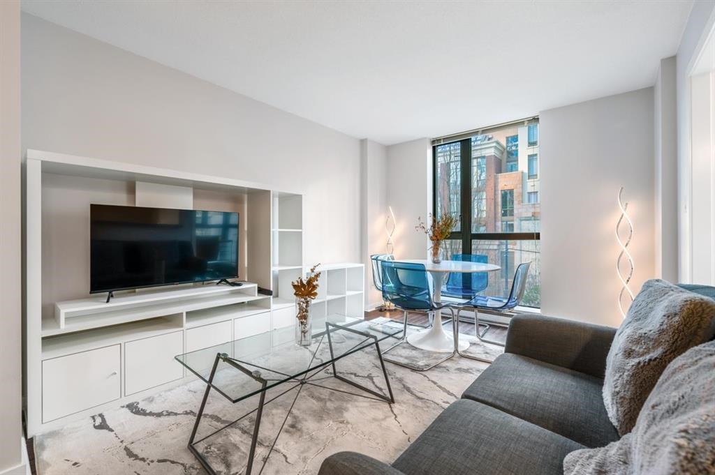 Welcome to Oscar by Bosa! This fully furnished top-floor corner unit is a unique junior 1 bedroom + home office designed with ensuite laundry. Prime location near Choices, the Seawall, Canada Line, theatre district, and restaurants provide convenient access to all the amenities Yaletown and Downtown have to offer. Featuring large windows, a sunny open floor plan, a kitchen with lots of cabinet storage and counter space, in-suite laundry, a walk-in closet, and separate office space combining comfort with fun...