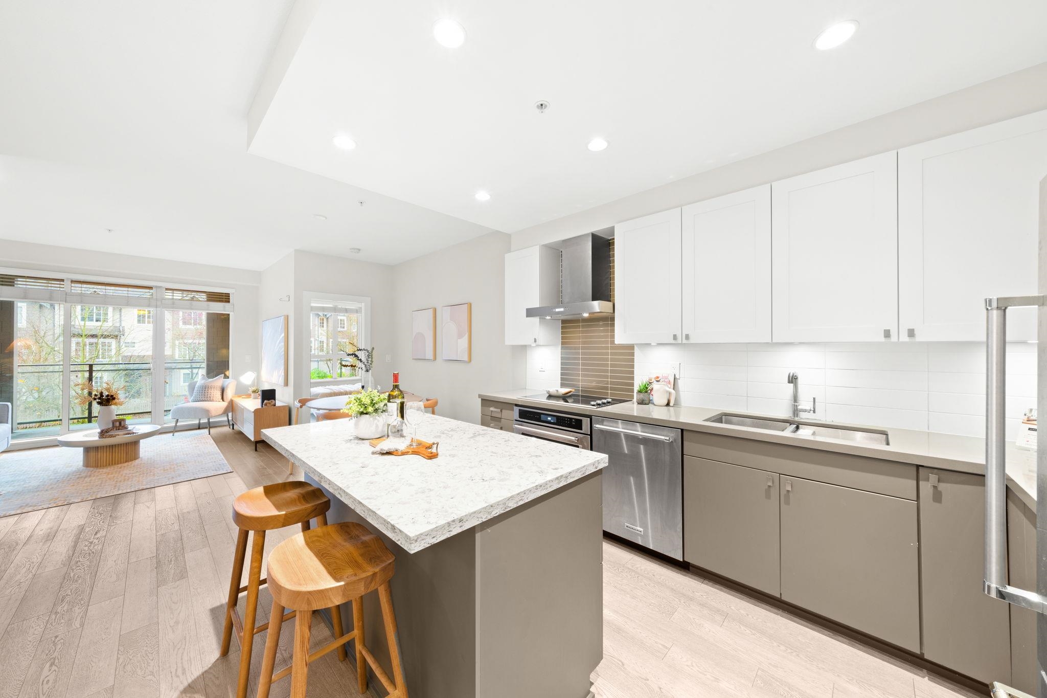 2 BEDS+ 2 BATHS + 2 PARKING STALLS! Welcome to your next home at 312-3399 Noel Drive- Cameron by Ledingham McAllister. This timeless floorplan boasts well over 800 sq ft of thoughtful living space combined with a private, east-facing patio for those sun drenched mornings. S/S appliances, open concept kitchen and a seamless transition from the living to dining areas, leave nothing to compromise. Walk to school, parks, trails and Lougheed Town Centre. Cameron Rec center under construction and just steps away!...