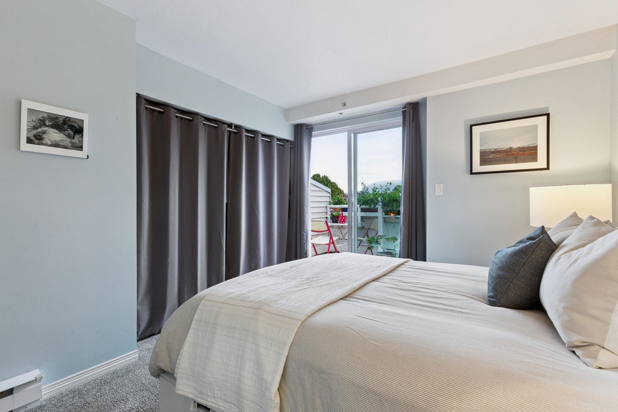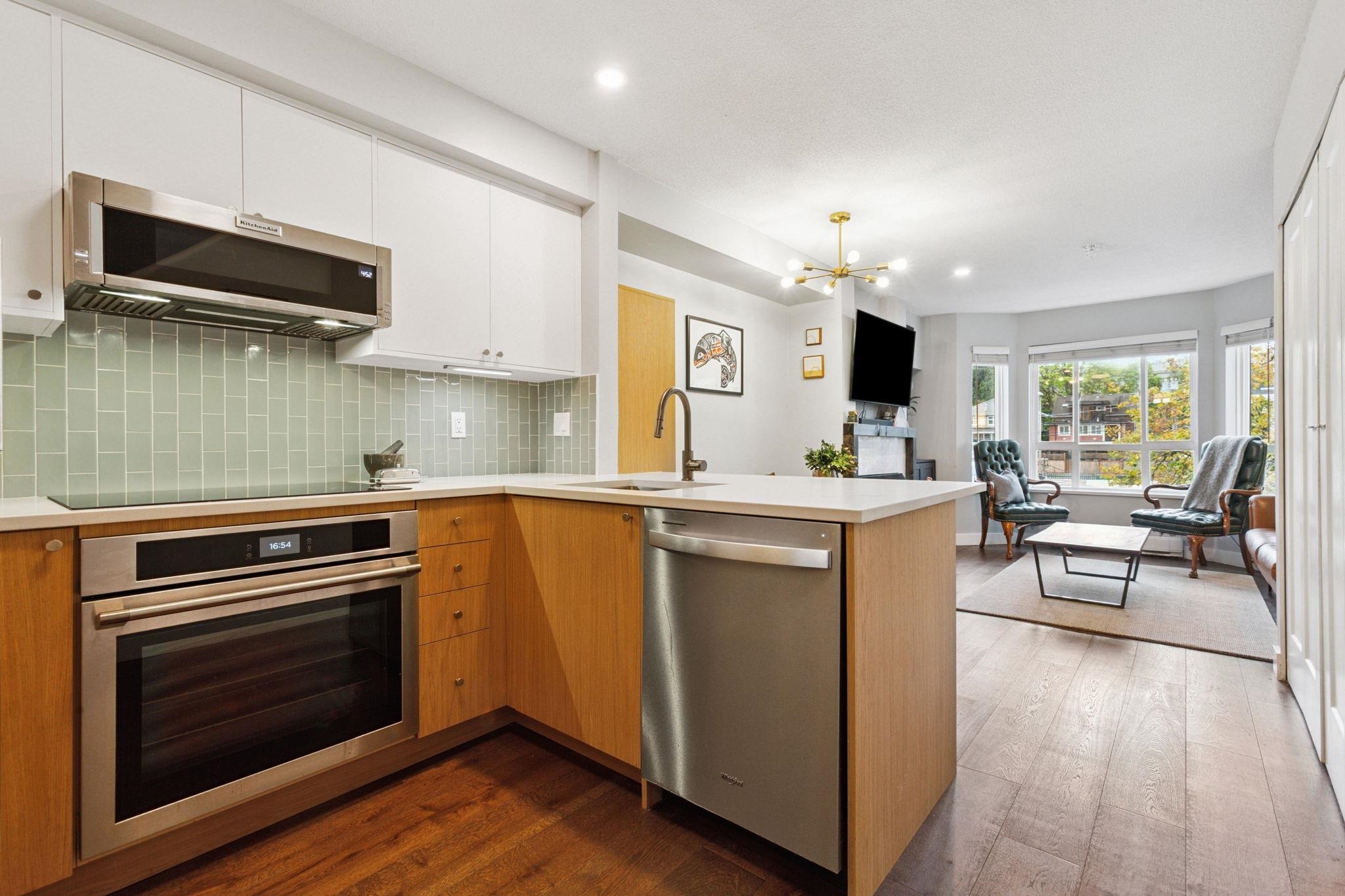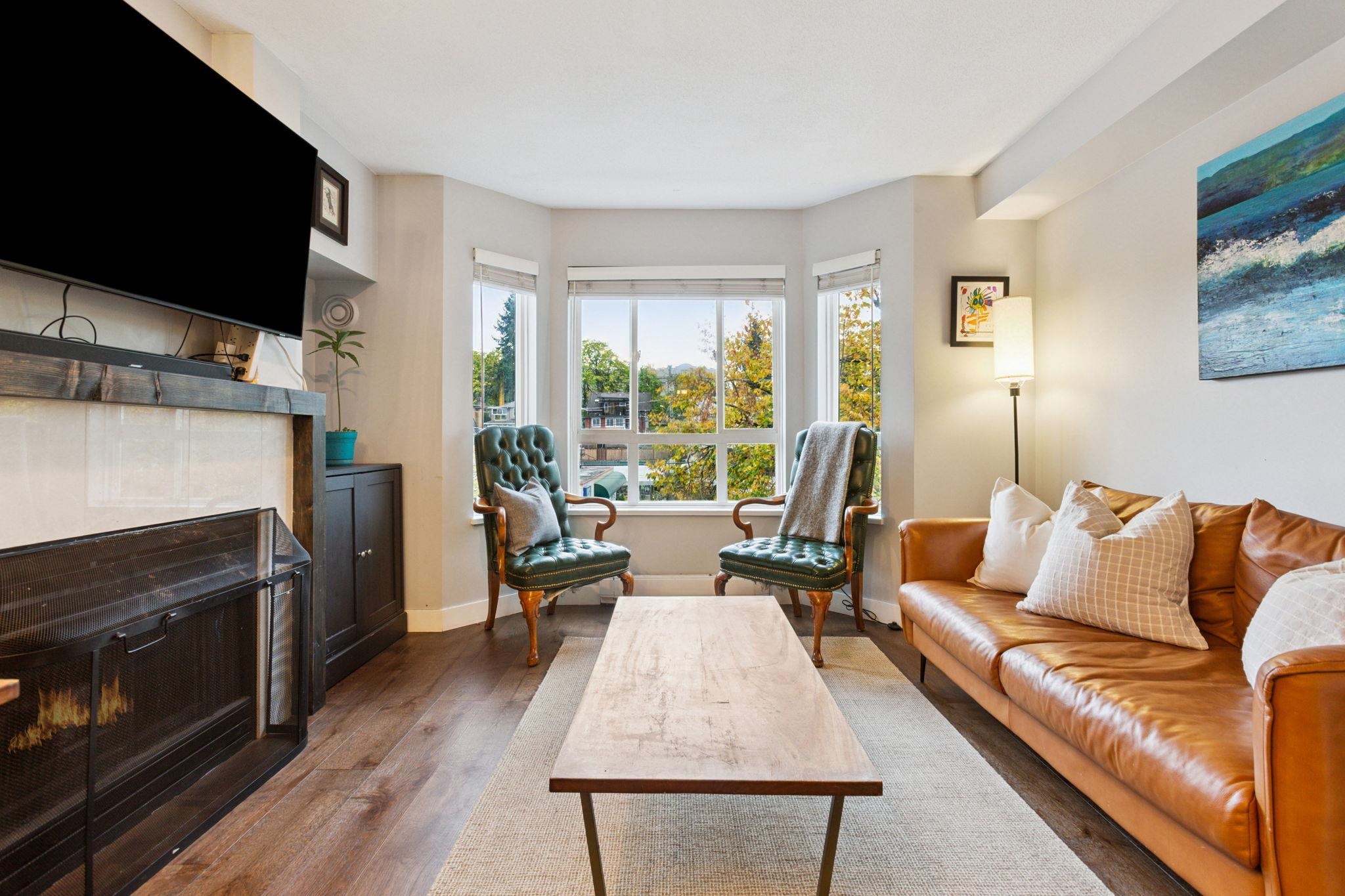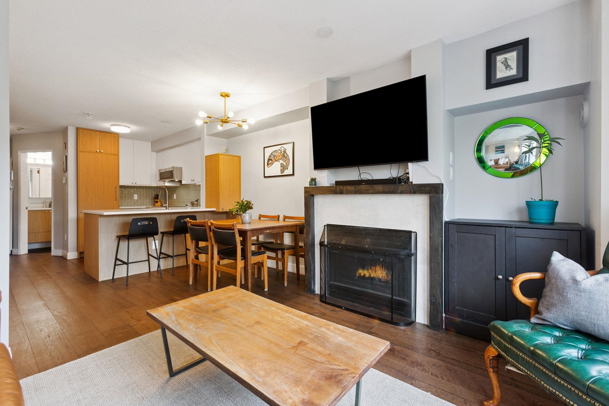 Welcome to Trafalgar Mews, an award-winning, Georgie-recognized development ideally located in the HEART of Kitsilano. This two-level residence mimics a TH w/ modern comfort & convenience. Beautifully updated, top floor 2-bed/2-bath home feat. new flooring & renovated kitchen & bathroom. A bright, open layout complete w/ a cozy gas fireplace. Quiet primary bedroom faes views of the Northshore Mountains from a wrap around patio. Step outside and experience the BEST of Kits! Boutique shopping, cafés, and rest...
