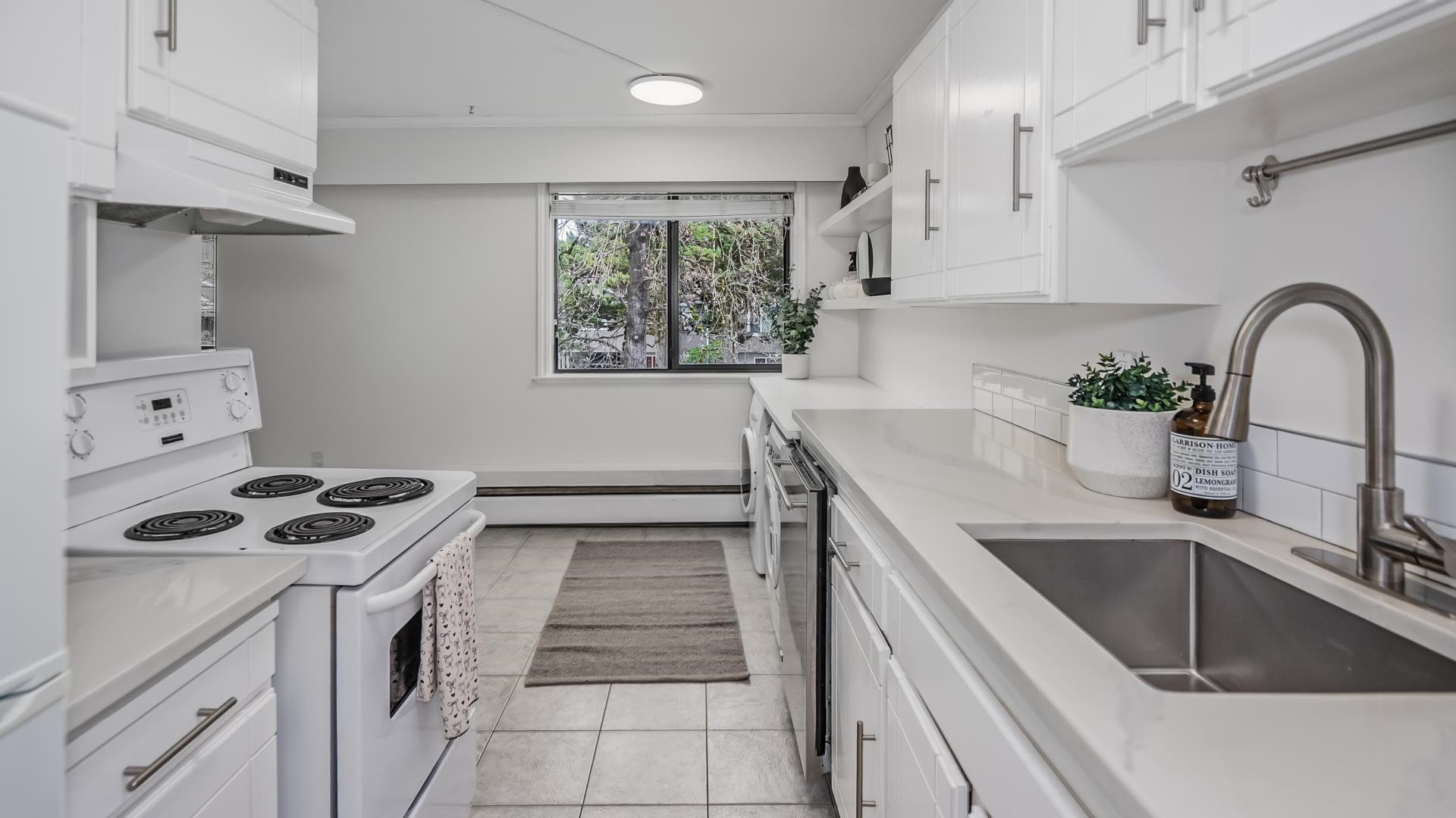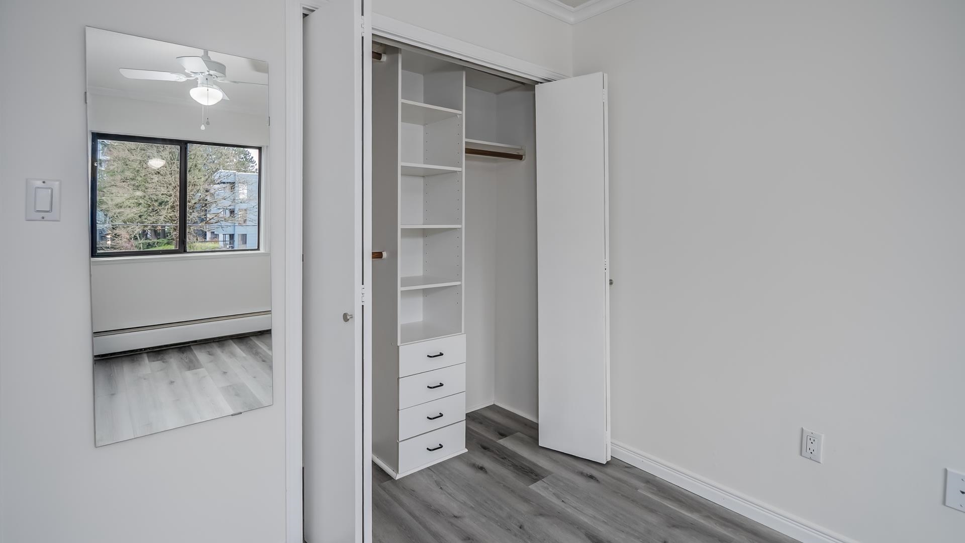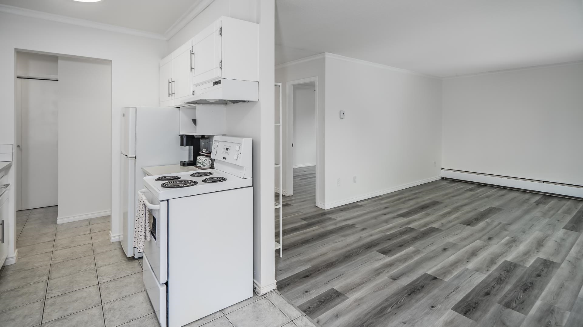 Beautifully updated, East facing TOP FLOOR CORNER UNIT on the QUIET SIDE of the building w/no one above you and move in ready. One of the LARGEST 1 bedroom homes currently available in West Coquitlam, offering EXCEPTIONAL VALUE in a highly walkable, TRANSIT FRIENDLY neighbourhood. Freshly painted with updated appliances, the interior feels modern, clean and inviting. The functional layout maximizes space with generous living areas. Incls. 1 pkg stall and 1 strg locker. Pet friendly, no dogs, 2 cats permitte...