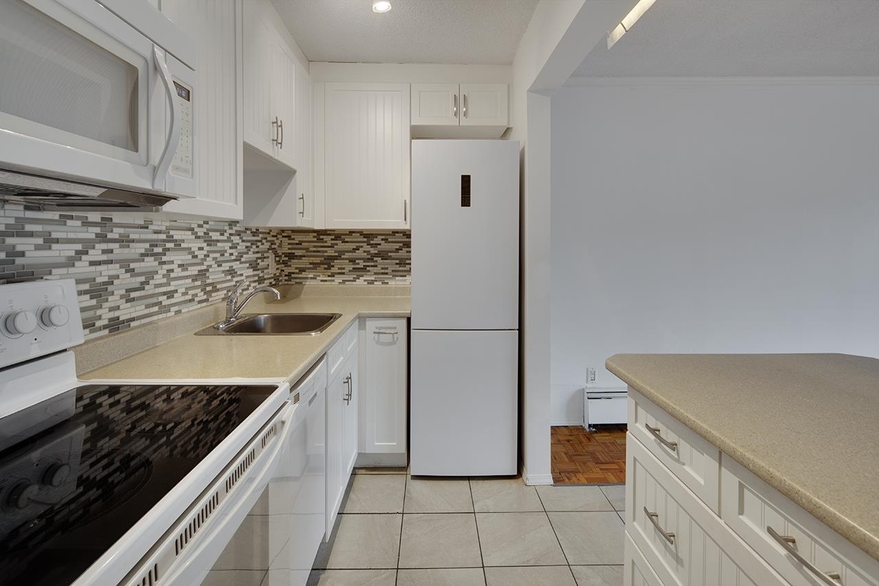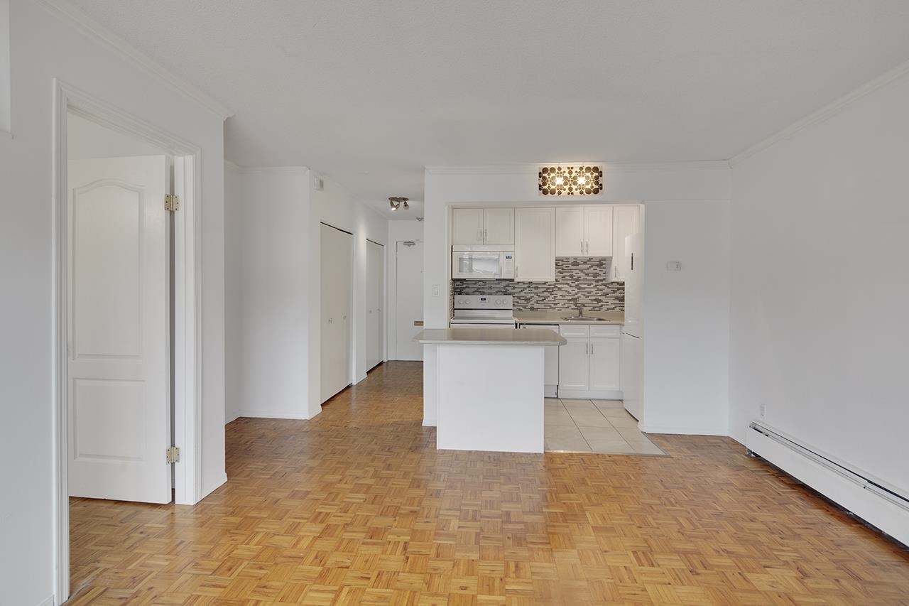 Welcome to this lovely 1 B/R, 1 Bath unit in ‘The Sea Breeze’. The previous owner updated cabinets, appliances, backsplash, floor tiles & island in the kitchen, with soaker tub, vanity & floor tiles in the bathroom. The parquet wood flooring throughout is in great condition. The nook is perfect for your home office desk. Your 93 sq. ft. balcony has lots of room for furniture & BBQ. 1 parking spot & a locker are included. Shared laundry has newer machines & card or App payment. Enjoy sweeping views & all-day...