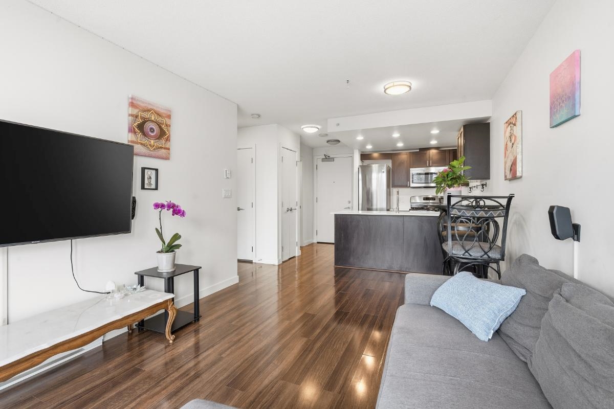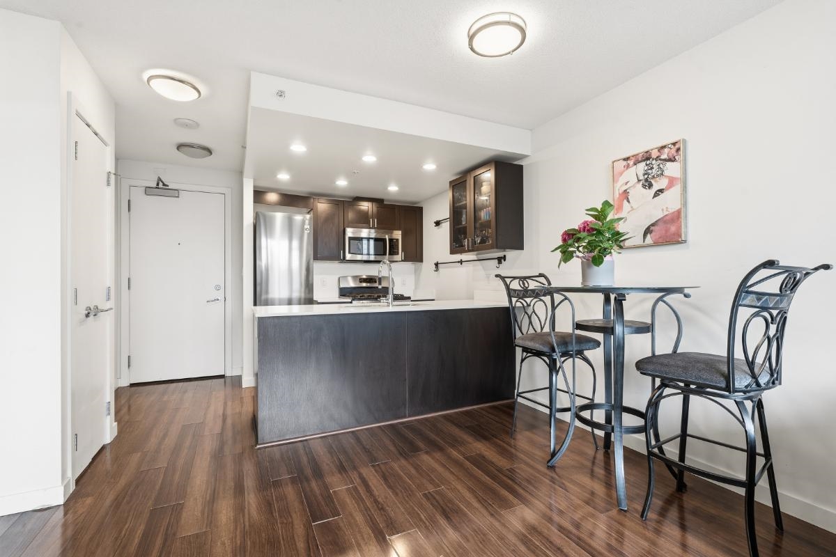 Welcome to Eldorado! This fantastic one bed plus den unit offers the perfect blend of vibrant city living and a peaceful retreat. Situated in a solid 2013 concrete building, the unit is perfectly positioned on the quiet side of the complex. Boasting bright, south facing views overlooking the roof garden. You will love the smart layout and the bonus den, ideal for home office. Open concept kitchen features full size gas stove, perfect for the home chef. Enjoy access to incredible amenities, including a massi...