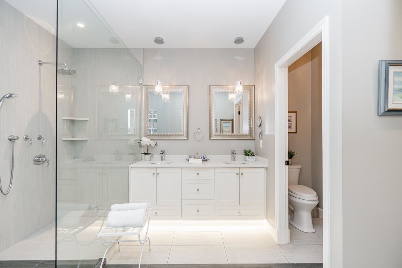 Experience unparalleled LUXURY living in Tsawwassen’s highly sought-after, gated Monterra community. Steps from Centennial Beach, this half-duplex RANCHER-STYLE home features the very best waterfront location, with sunny, west exposure. Substantially renovated to the studs, the fully redesigned open-concept layout features wideplank hardwood floors, a stunning new kitchen, quartz counters w/oversized island & white shaker cabinets, Electrolux Icon, Bosch, & Fisher Paykel appliances, a spa-like ensuite w/Gro...