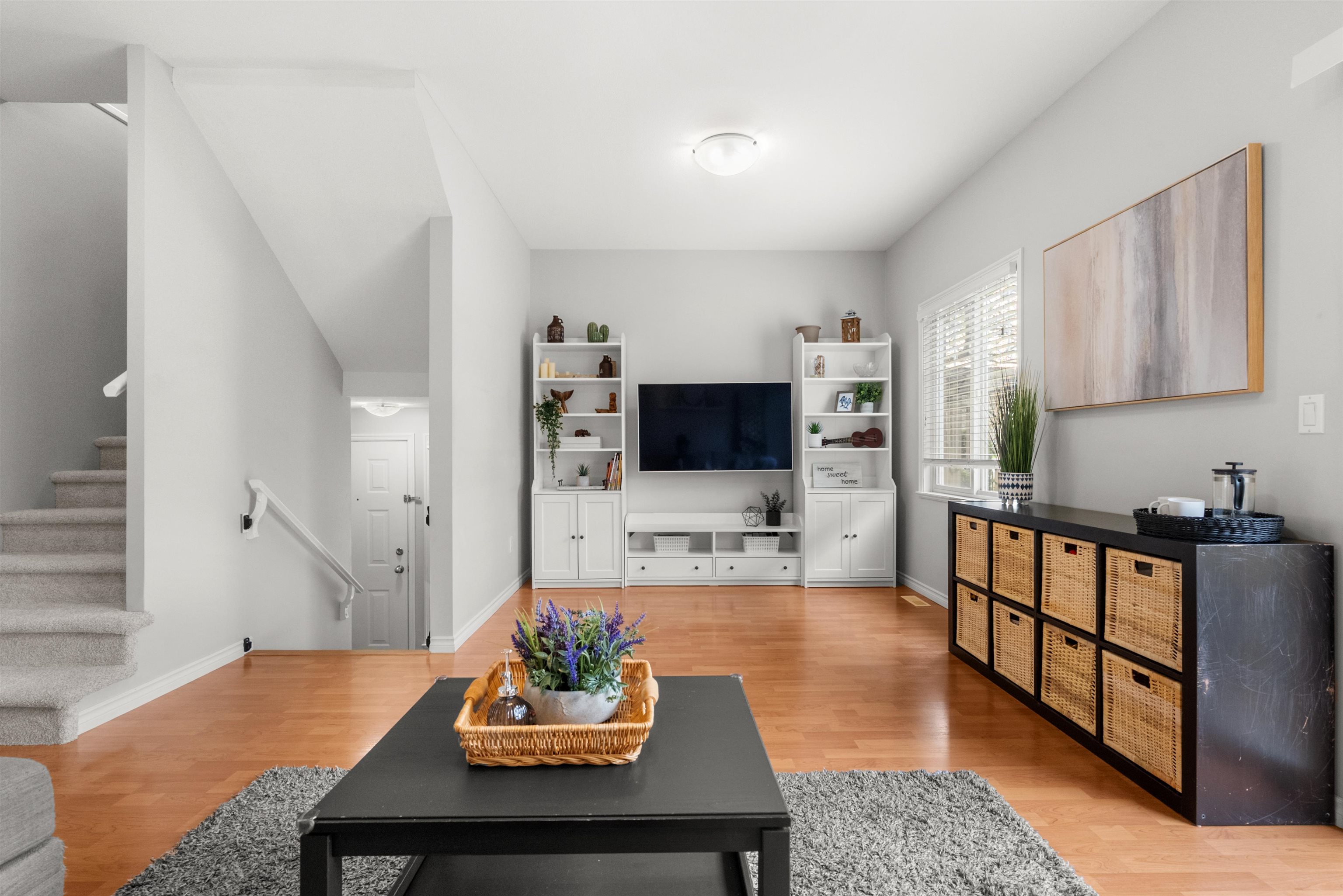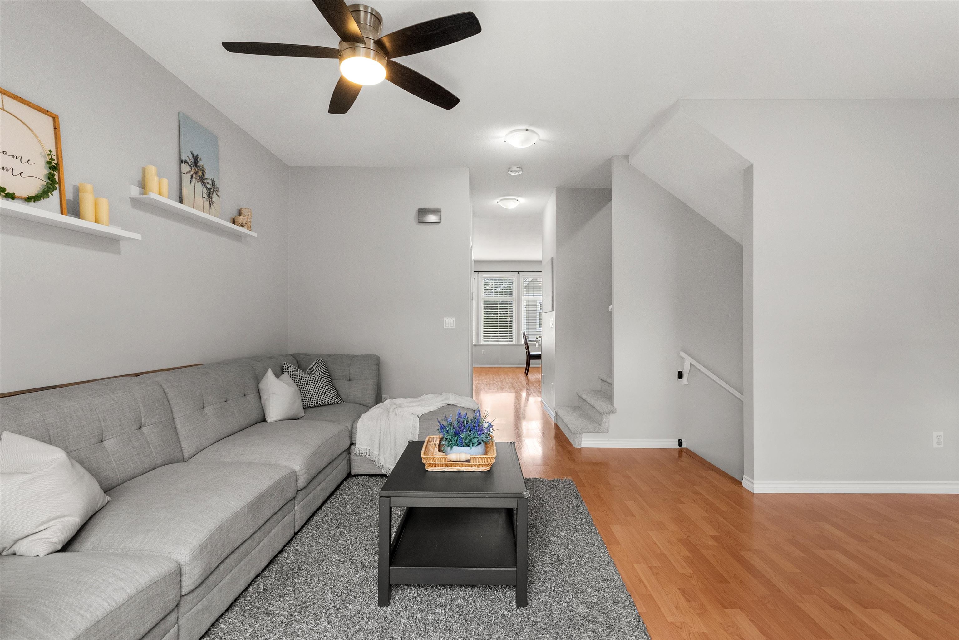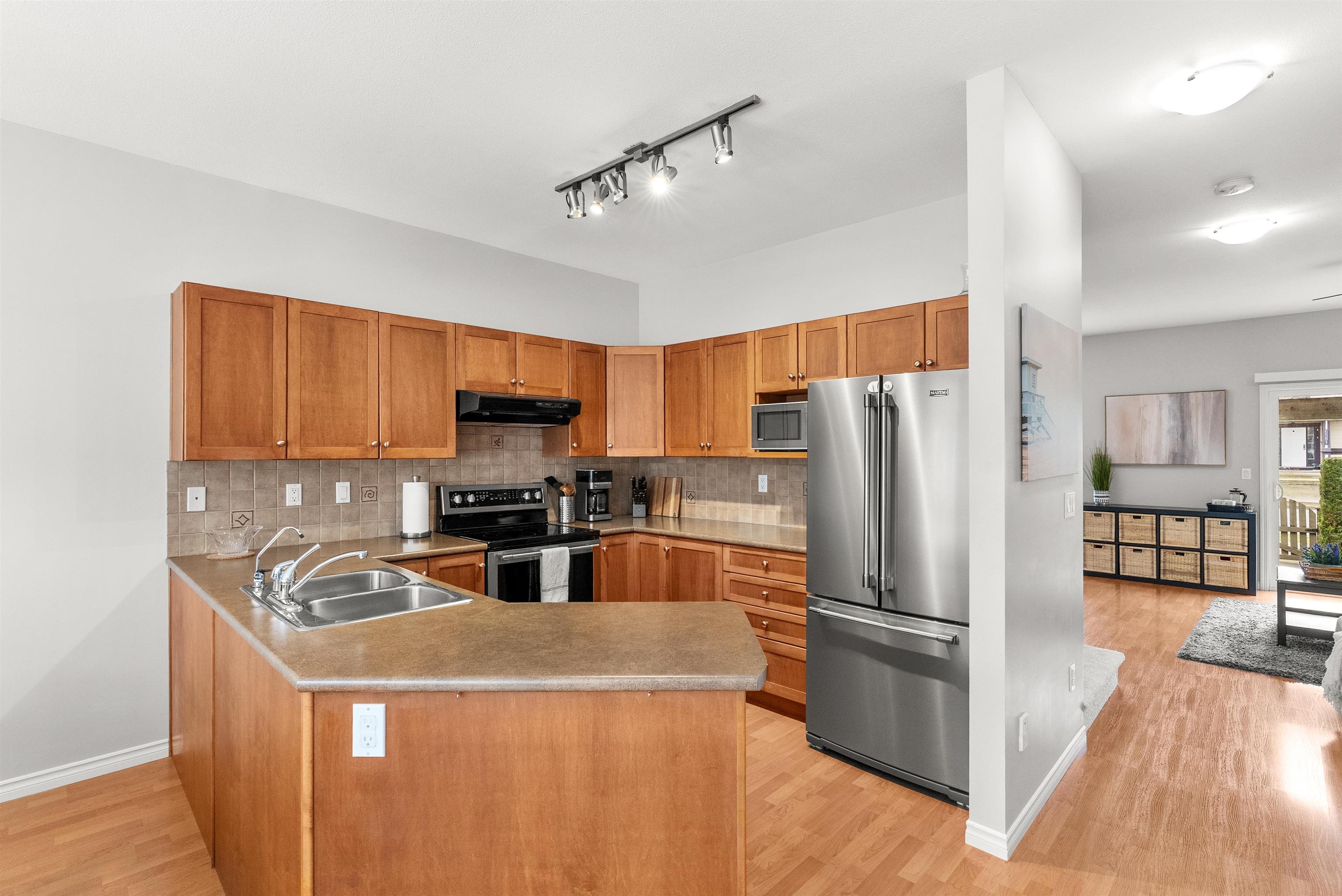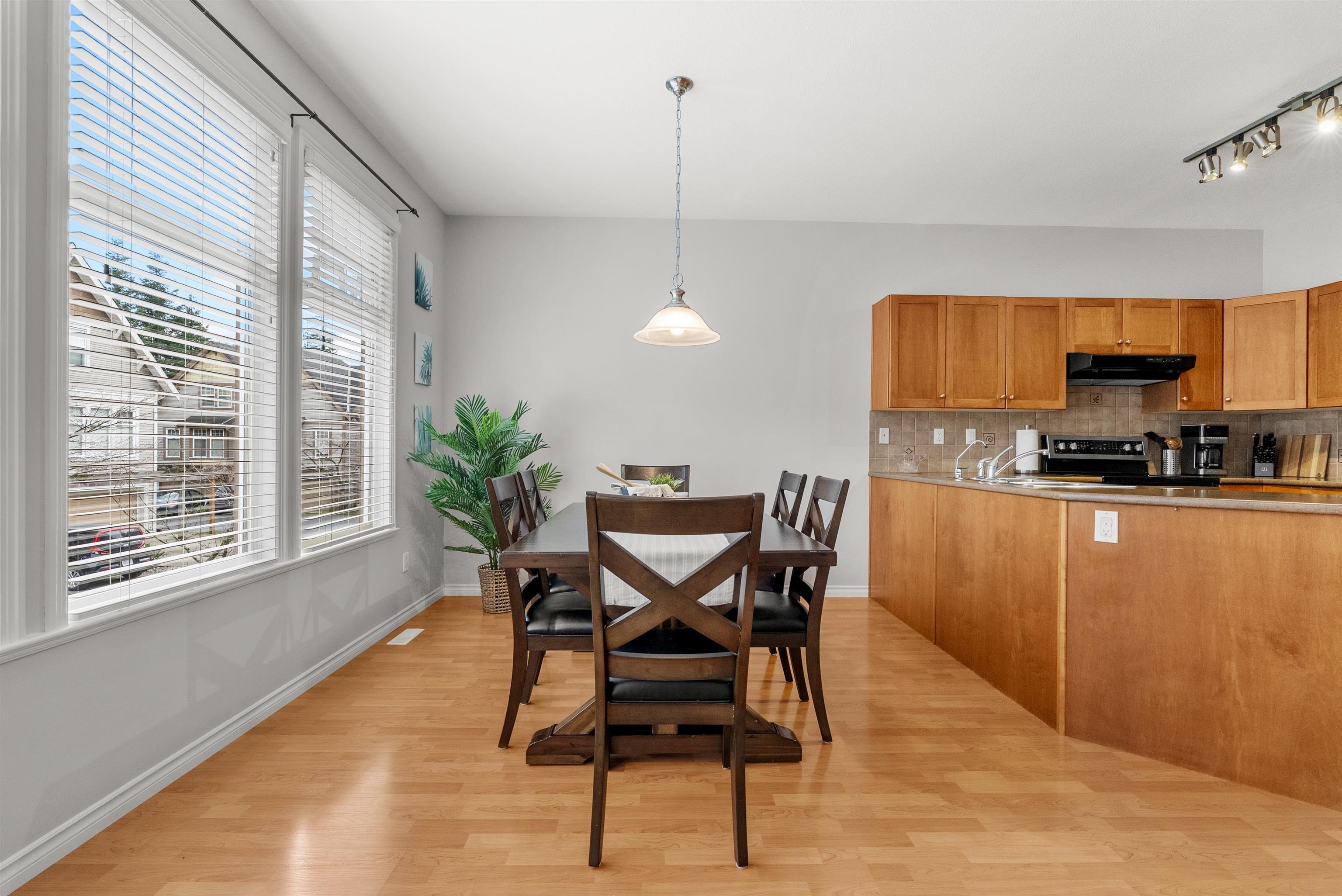 Townhouse living without compromise! This 4 bed, 3 bath home in Hillcrest Place, located in Cloverdale, offers space, comfort, and convenience in a walkable neighbourhood close to schools, parks, shopping, and future SkyTrain access. Rare parking for 4 cars provides flexibility for multiple drivers or option to create the garage home gym you’ve always wanted. This home feels move-in ready with newer laminate flooring throughout, fresh paint, brand new carpet on the stairwells, maple shaker cabinets, s/s app...