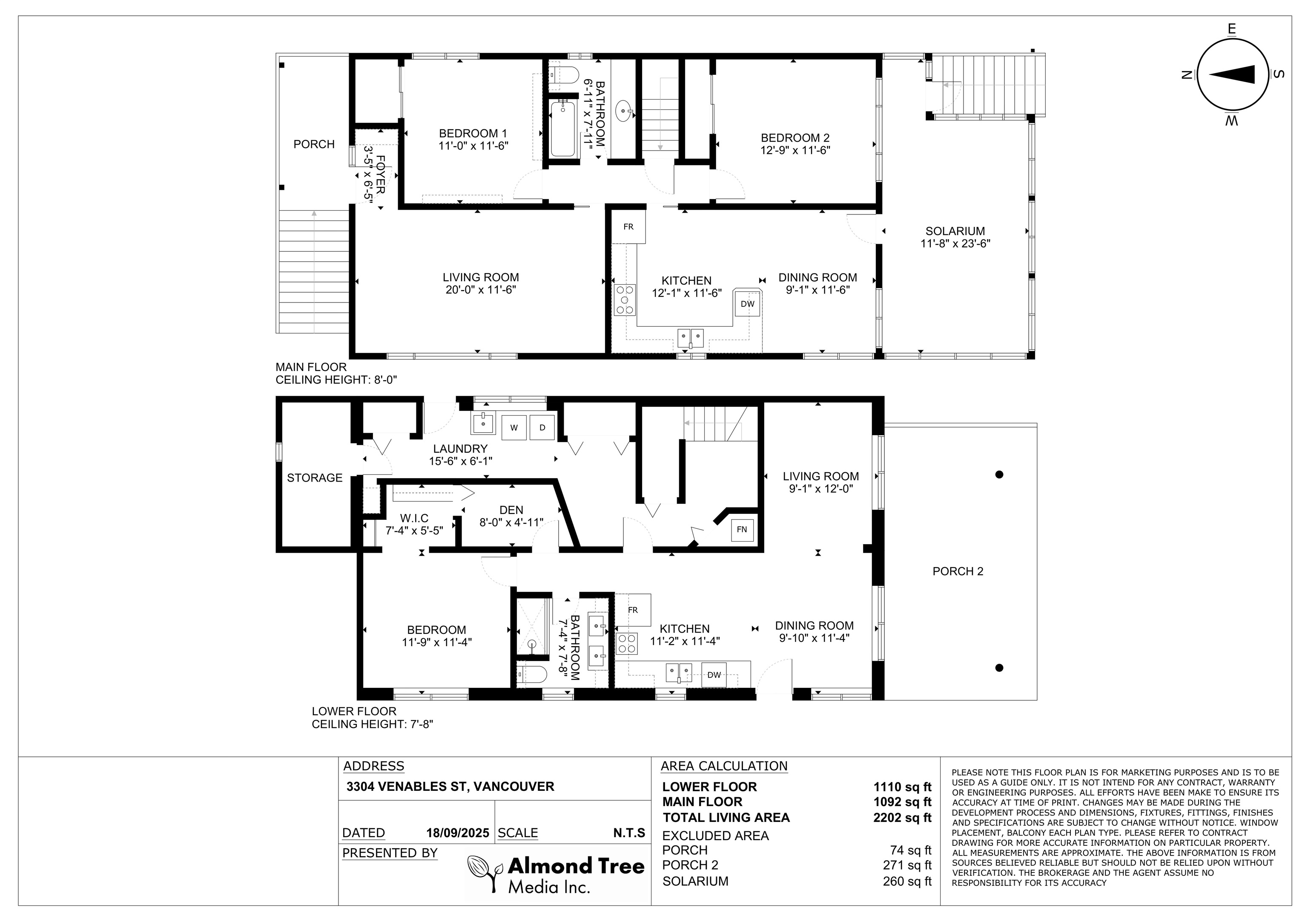 Beautiful CORNER LOT 2 level home in prime RENFREW area of East Van!! Lots of natural light!! The main floor features original oak floors with 2 bedrooms and an updated bathroom. There is a 260sf enclosed SOLARIUM on the main floor (not included in floor area) for your entertaining!! The lower level has an above ground completely redone self-contained 1 bedroom and den suite mortgage helper (was a 2 bedroom suite and can be easily converted back). BRAND NEW ROOF, updated furnace and hot water tank, double g...
