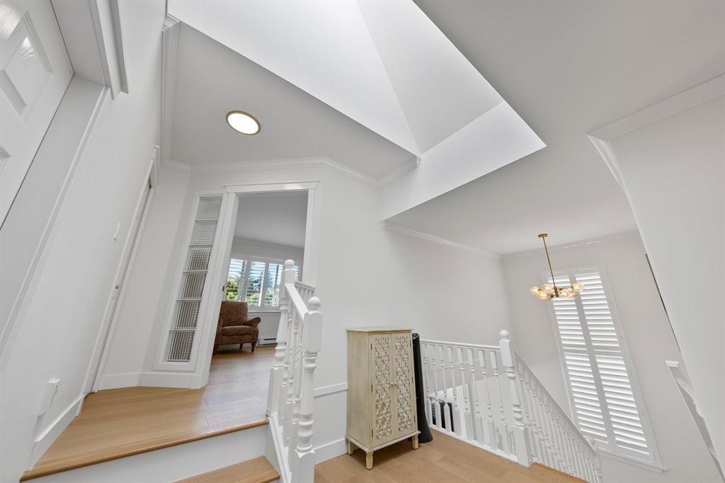 Elegant Foxridge Home in The Oaks at Morgan Creek. This custom-built Foxridge home combines quality craftsmanship with timeless design. The upper floor offers four spacious bedrooms and two full bathrooms, while the newly renovated basement features two additional bedrooms and a full bath—perfect for guests or extended family. Designed for comfortable living and effortless entertaining, the home boasts an open-concept layout with maple kitchen cabinetry, Lauzon maple hardwood floors, skylights, Low-E window...