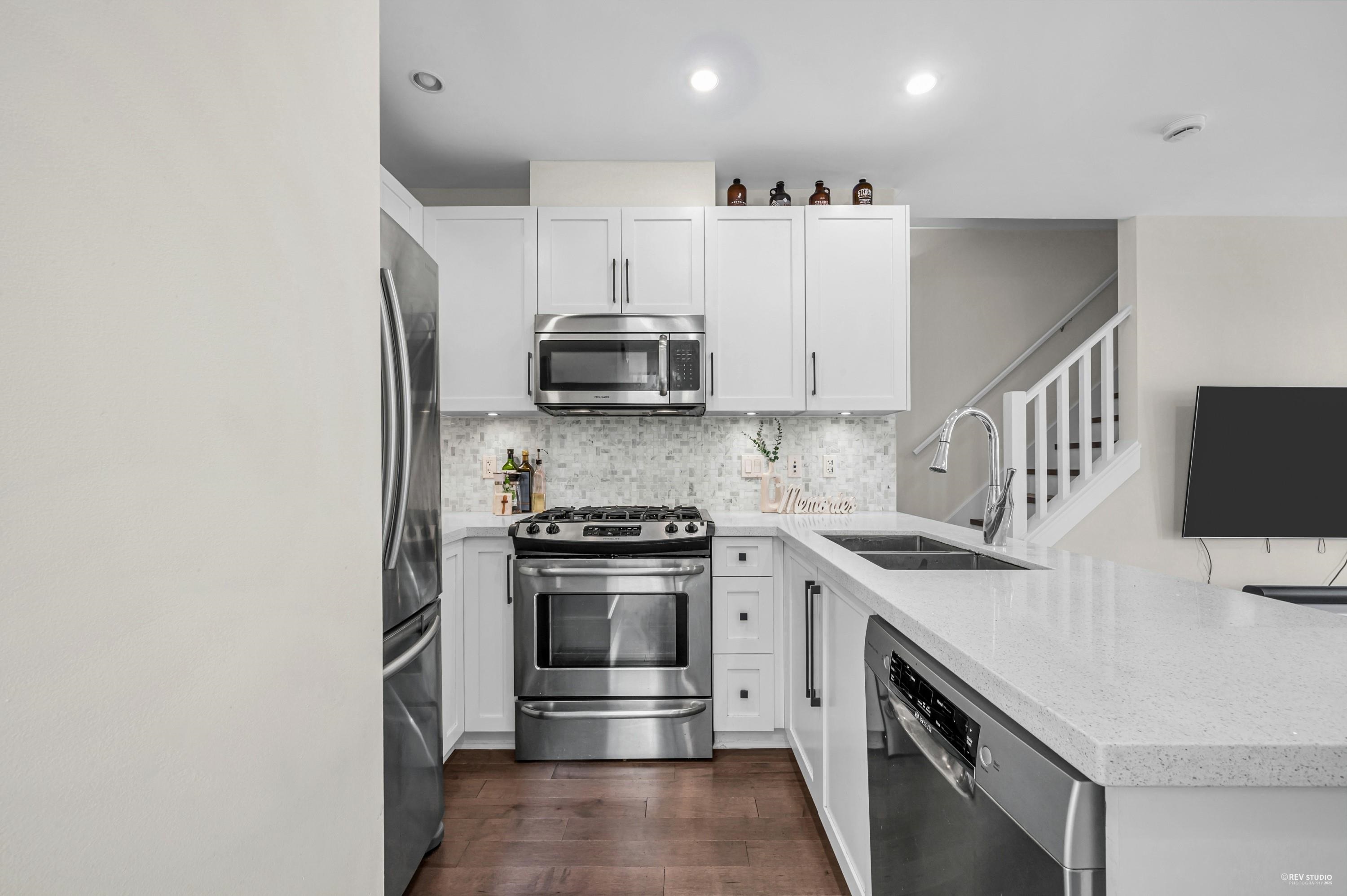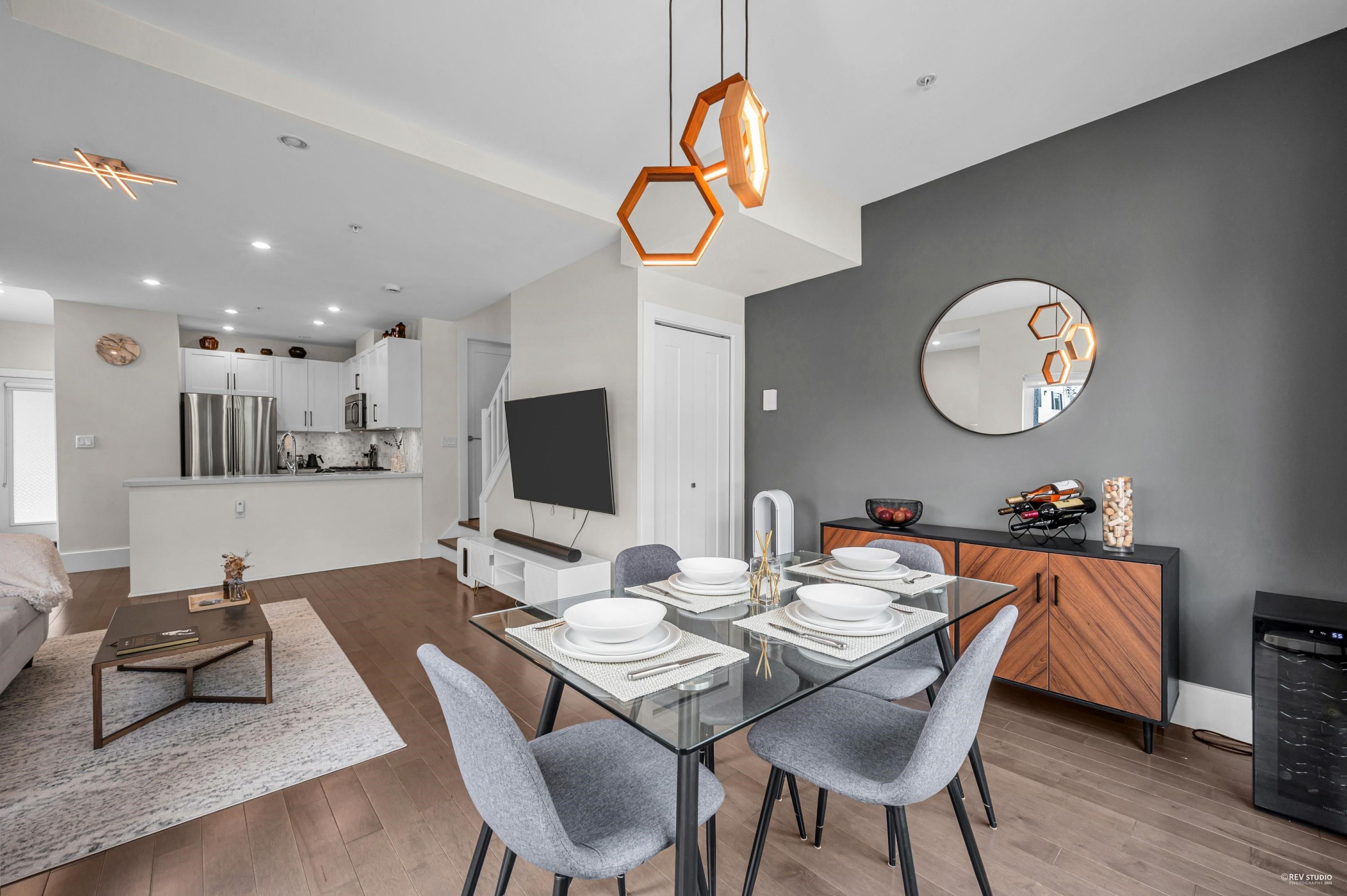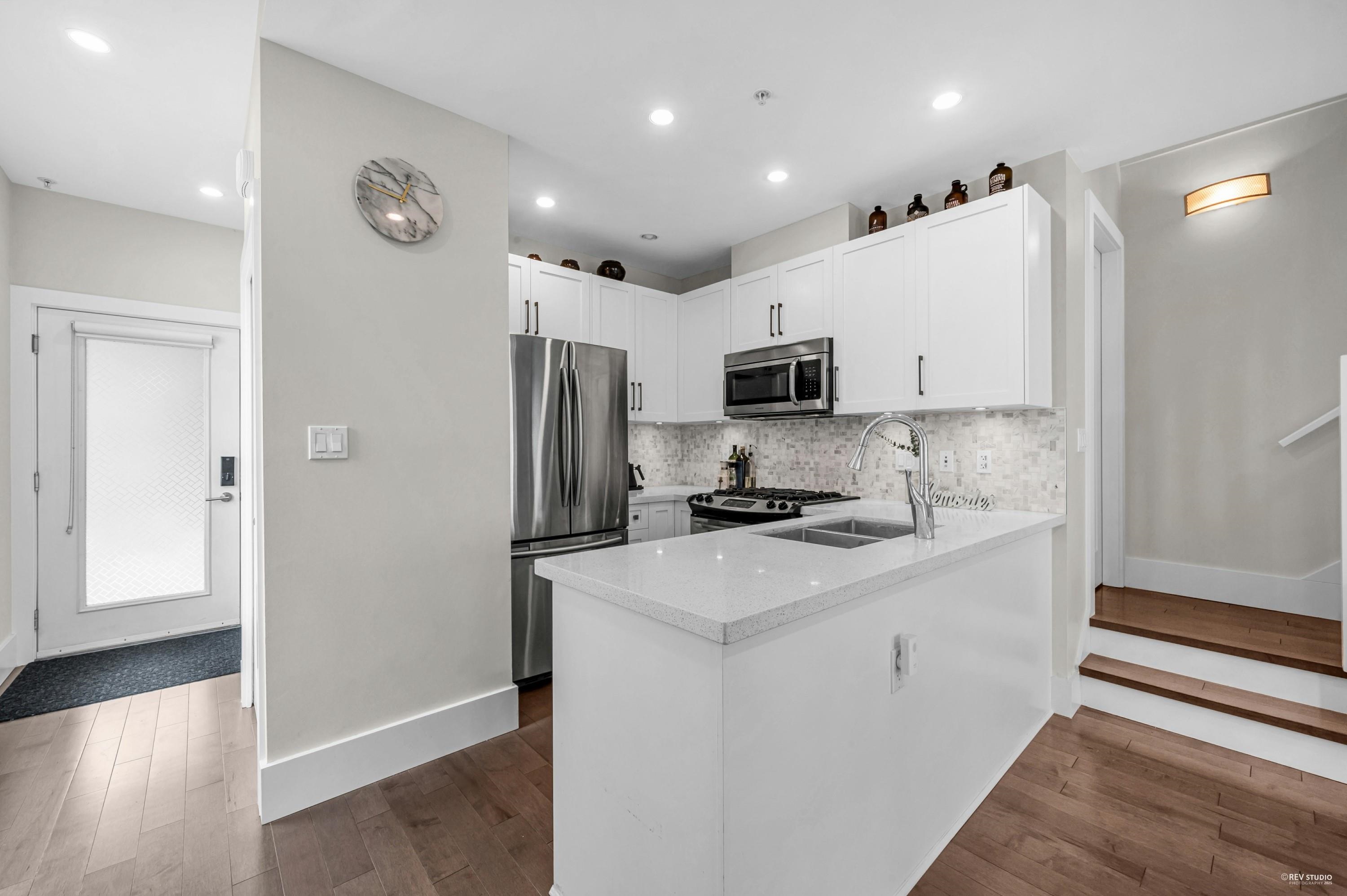 Stunning 3-Bed, 2.5-Bath Corner Townhome in Mount Pleasant! Beautifully designed 3-level corner unit offering 1,408 sf of modern living in one of Vancouver’s most desirable neighborhoods. The home features an open-concept main floor with 9’ ceilings, engineered hardwood flooring throughout, and large windows providing excellent natural light. The contemporary kitchen is equipped with custom cabinetry, quartz countertops, SS appliances, a gas stove, and plenty of storage. Enjoy the private patio on the main ...