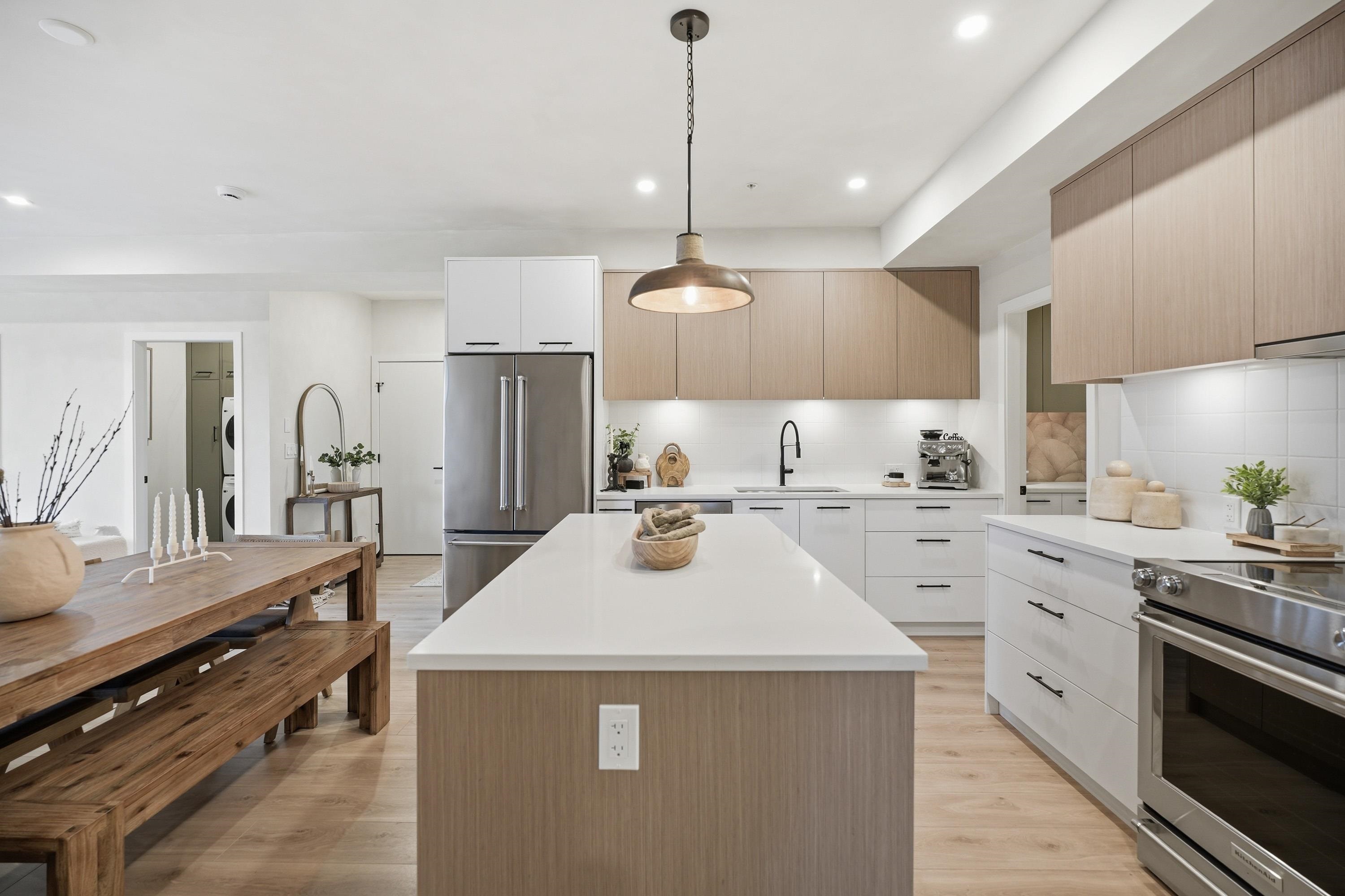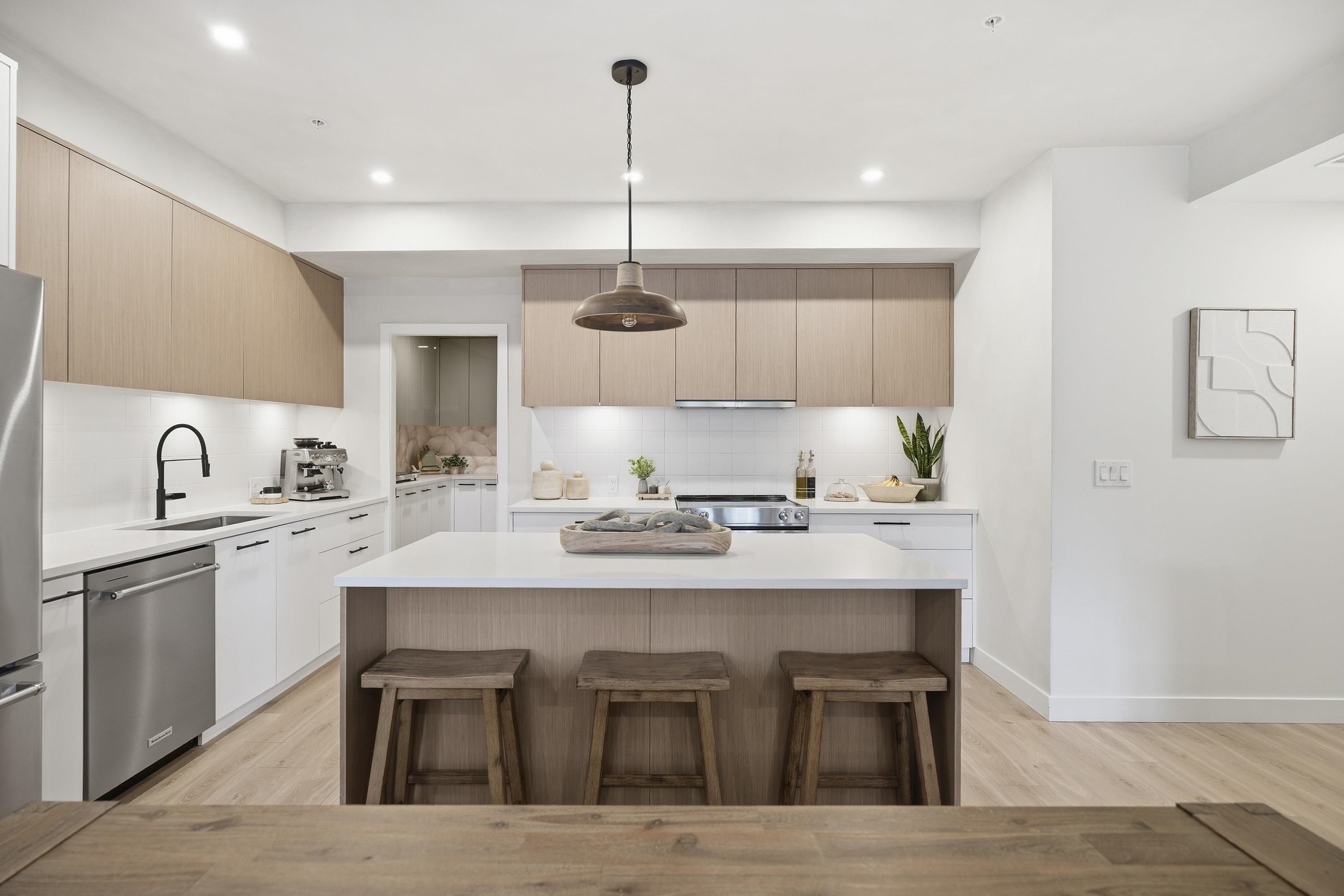 Welcome to the newly built 2025 Odyssey by award-winning developer, Forge. Directly located in the heart of South Surrey just minutes from both White Rock & Crescent Beach. This rarely available oversized 3-bedroom+den show-home corner unit is a true showcase of luxury. Similar to a family sized rancher, all 1,918 sq ft of usable space is located entirely on one floor. Zero wasted space & no stairs. Southeast-facing with abundant natural light, it features a custom walk-in laundry & spice kitchen pantry & 2...