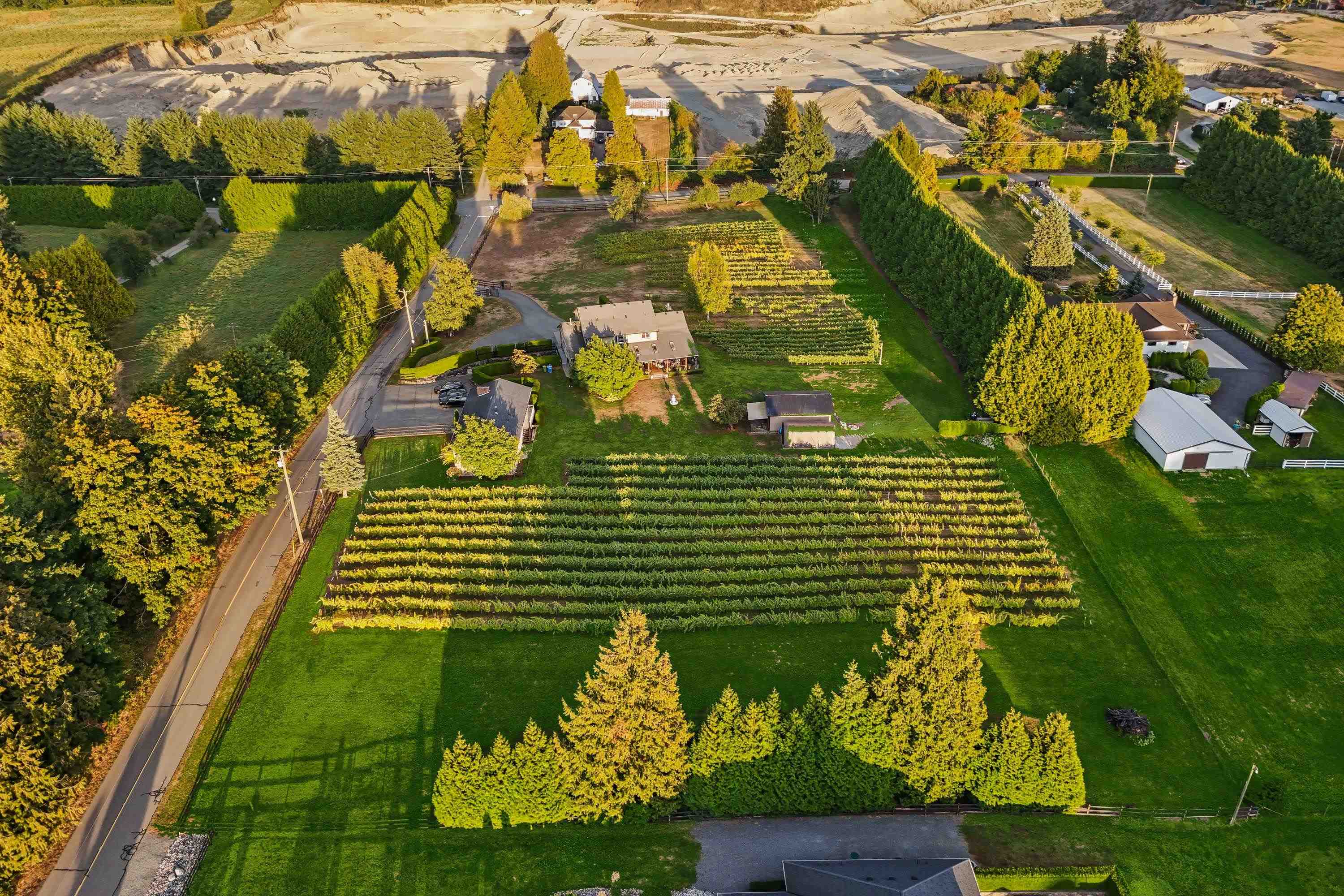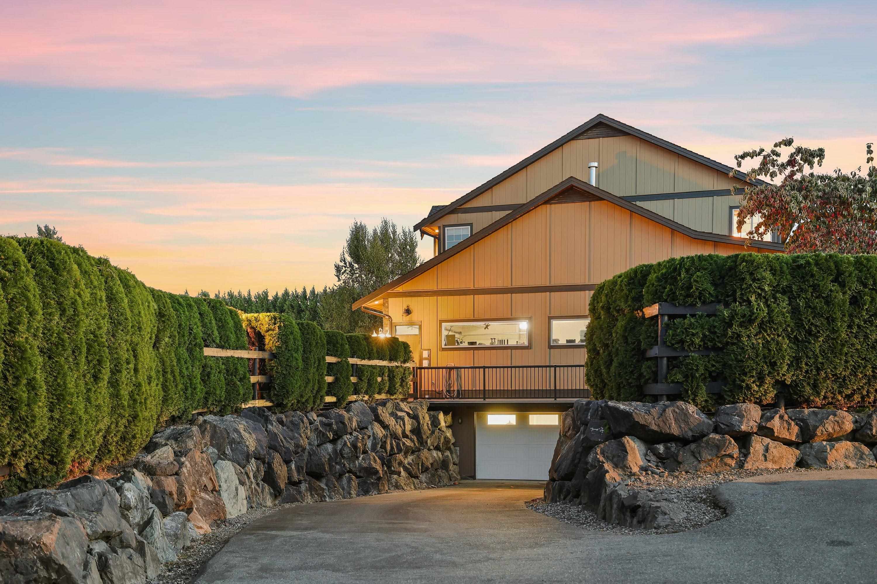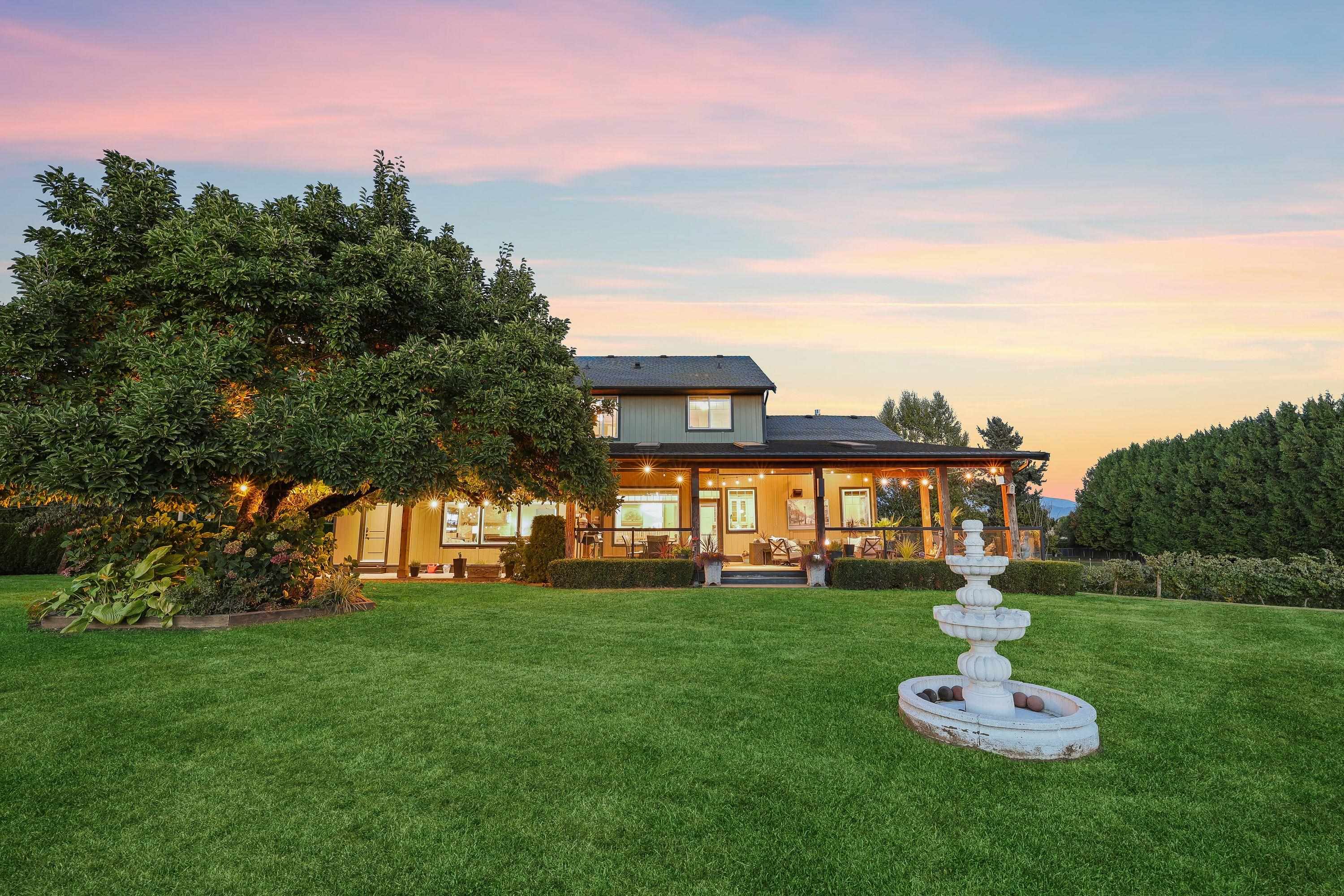 Spectacular 5 acre property in the heart of the University District! Gorgeous vineyard with stunning 5325 sq ft custom home plus a 2nd 2316 sq ft home, plus a beautiful 2 bdrm suite. On quaint country road behind UFV! Just some of its amazing features include 10' ceilings on main, 9' ceilings up, massive kitchen with 9' x 5' granite centre island, solid H/W floors, very open plan. 4 bdrms up. Huge primary bdrm w/ deluxe ensuite. Amazing 40'x16' covered deck w/ skylights, ceiling fans & Brazilian hardwood (I...