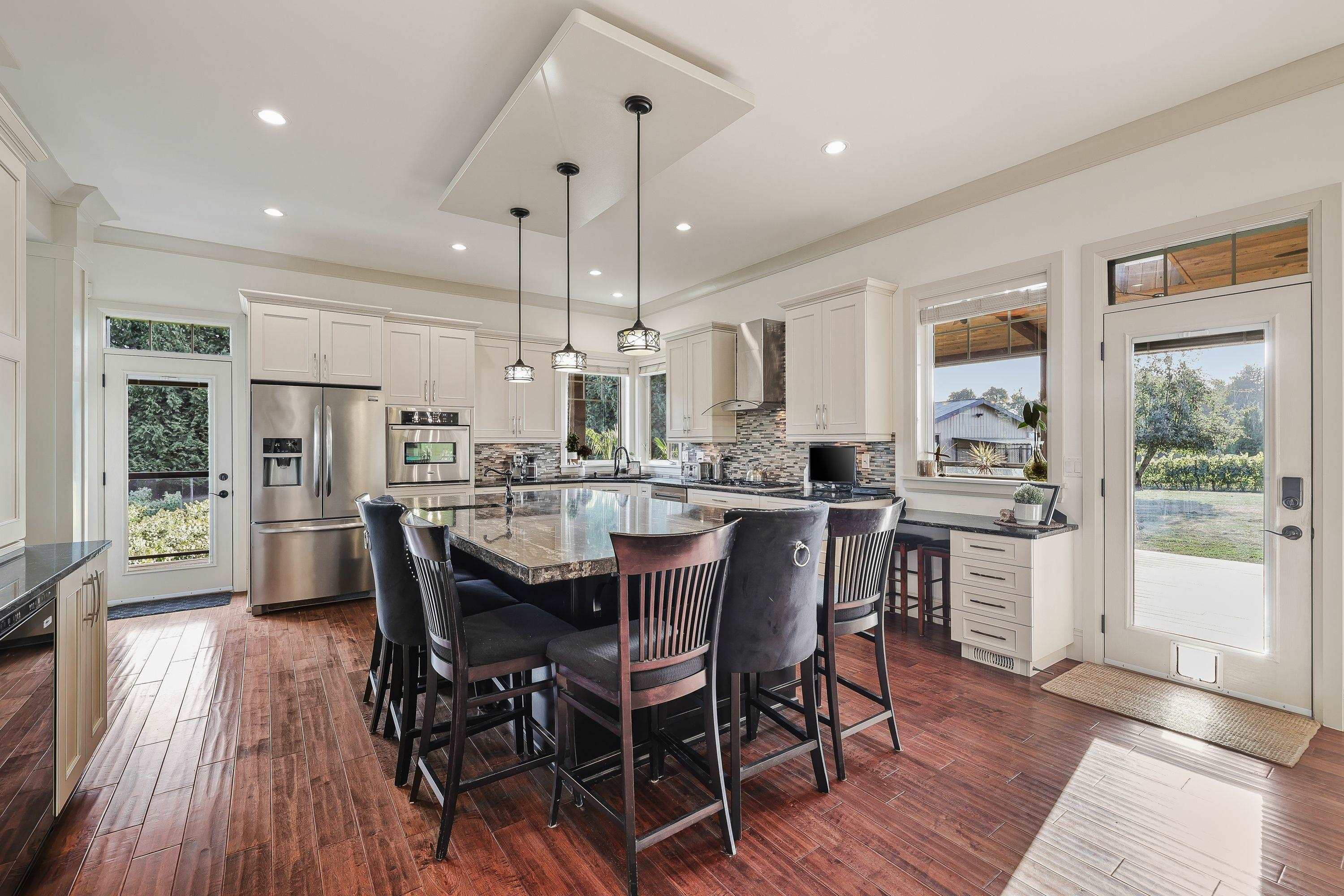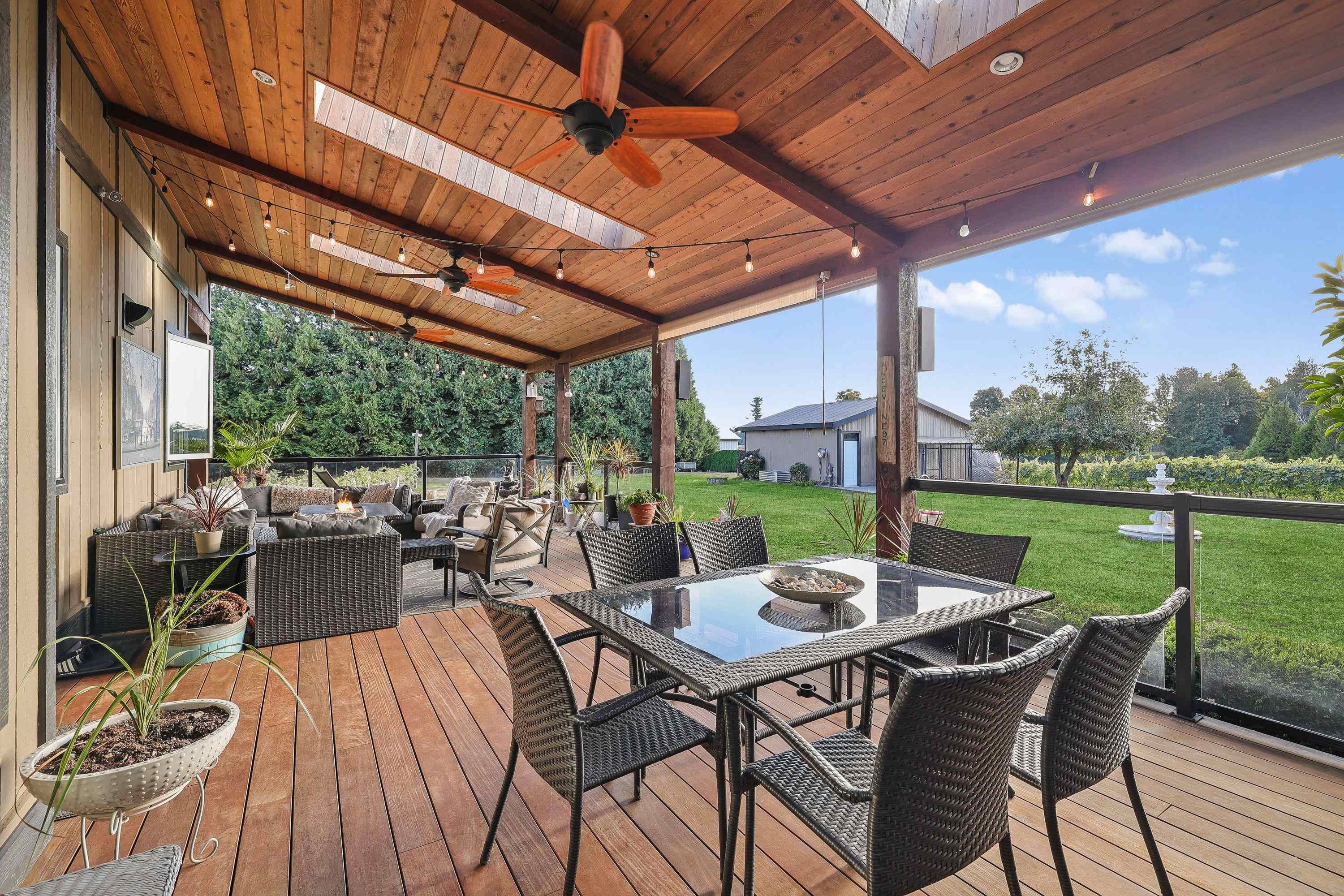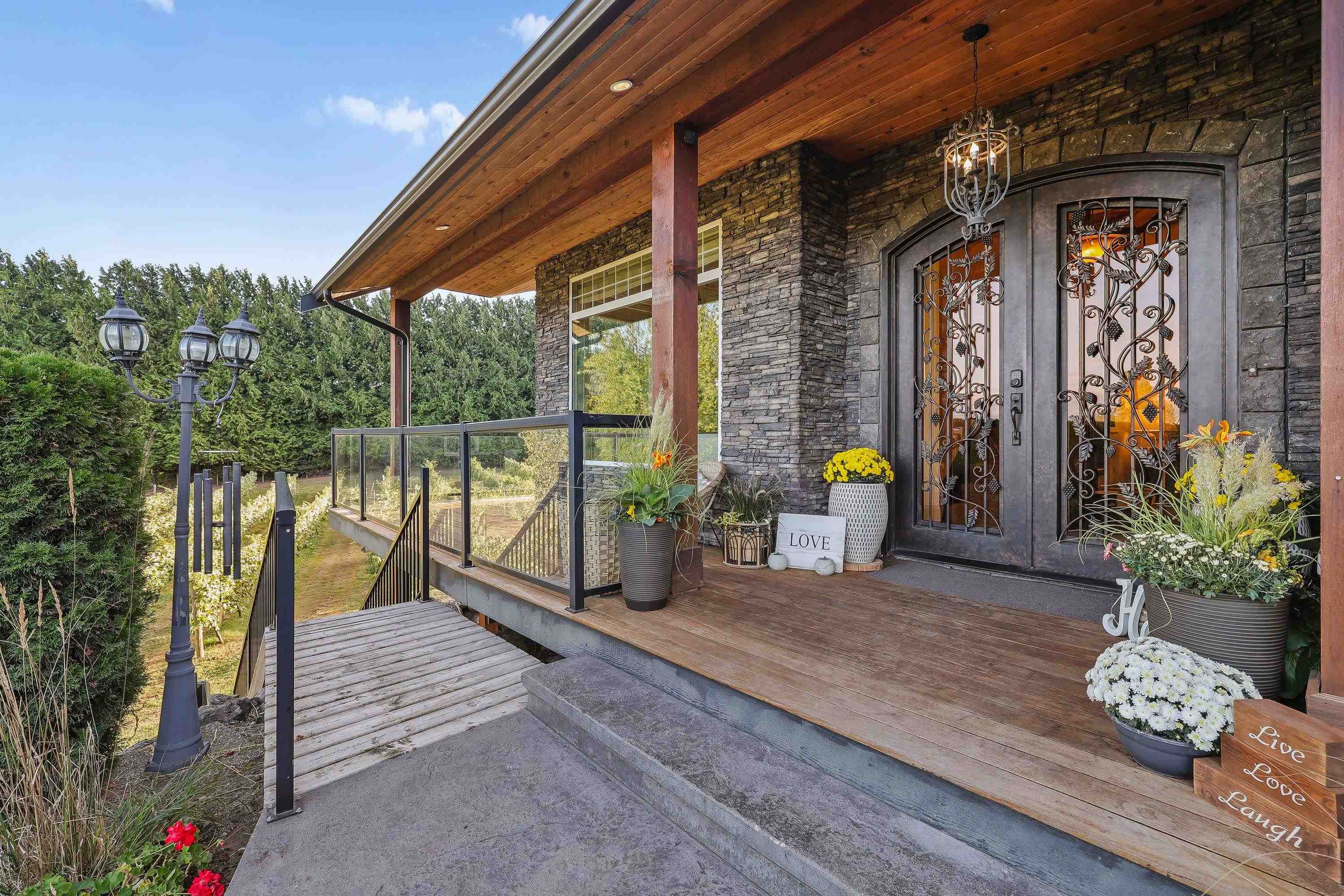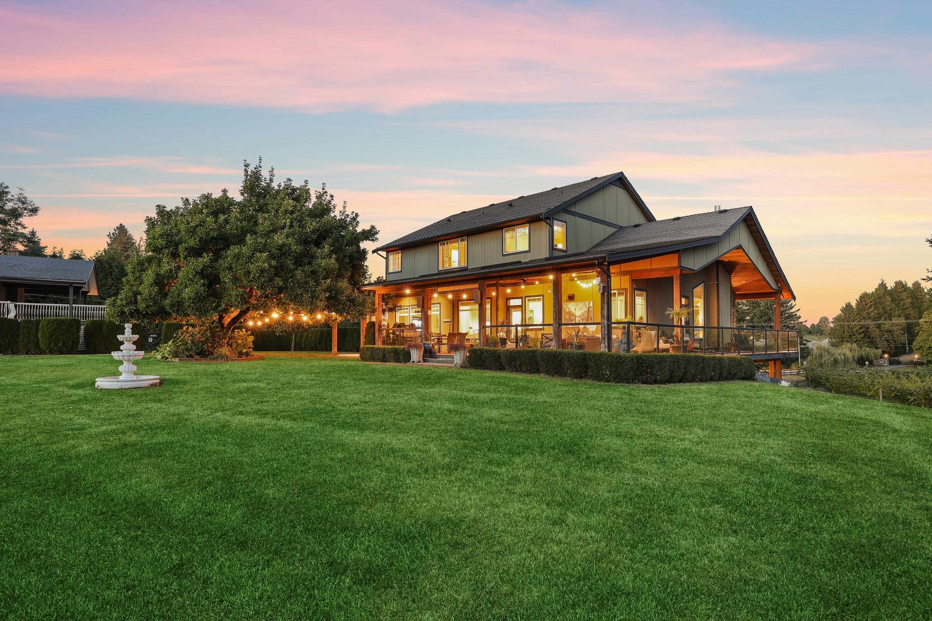 Spectacular 5 acre property in the heart of the University District! Gorgeous vineyard with stunning 5325 sq ft custom home plus a 2nd 2316 sq ft home, plus a beautiful 2 bdrm suite. On quaint country road behind UFV! Just some of its amazing features include 10' ceilings on main, 9' ceilings up, massive kitchen with 9' x 5' granite centre island, solid H/W floors, very open plan. 4 bdrms up. Huge primary bdrm w/ deluxe ensuite. Amazing 40'x16' covered deck w/ skylights, ceiling fans & Brazilian hardwood (I...