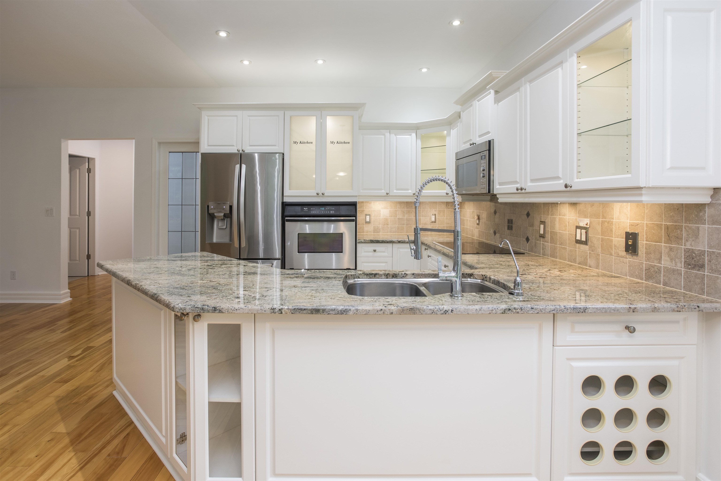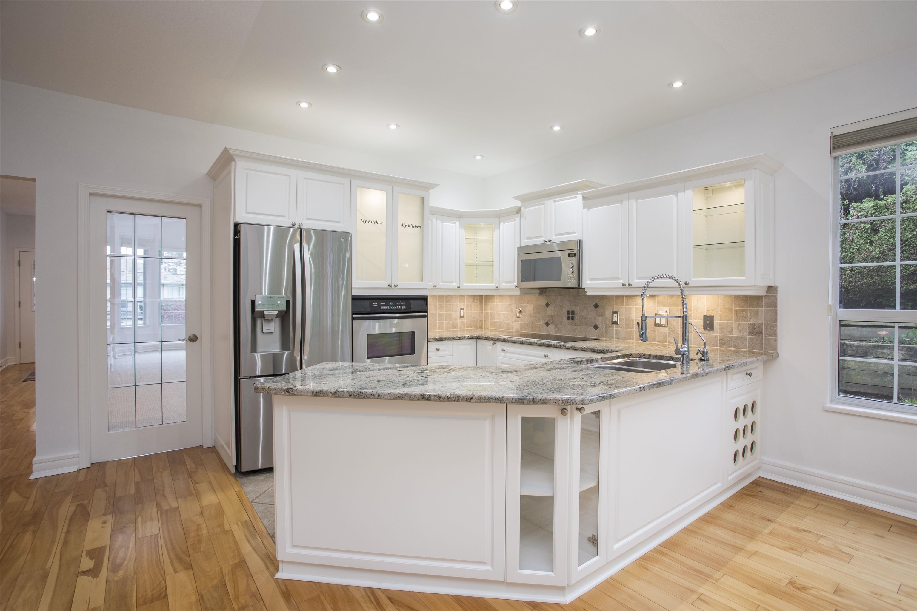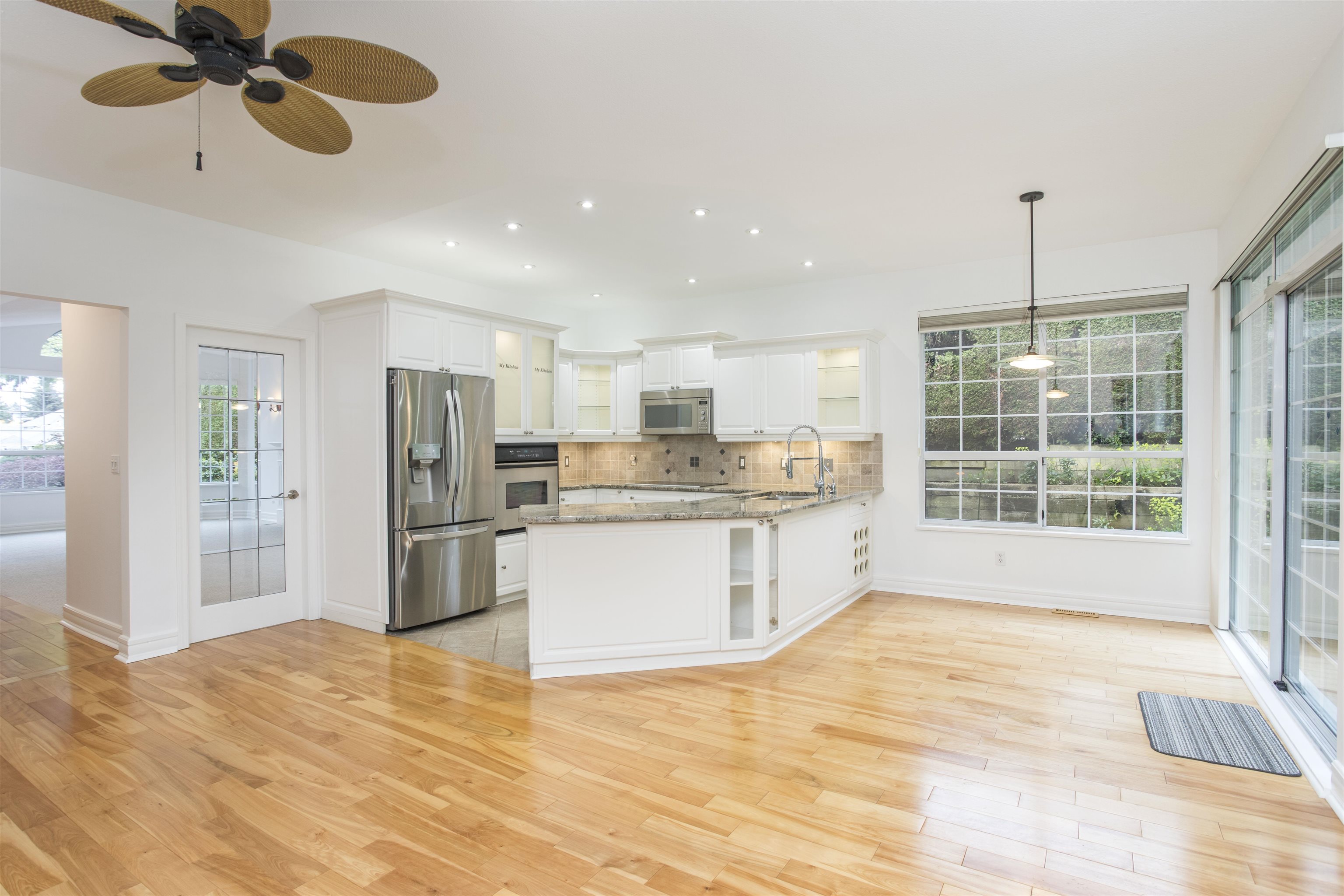 RANCHER , end unit , in WESTMOOR !! An EXCELLENT choice for retirement living . Bright south west facing unit , that also backs onto treed greenspace , about as RARE as they come . Single floor living suitable for WHEELCHAIR , with wide hallways and doorways .Wonderfull finishing with NEW carpets and completely painted . Updated kitchen , granite counter tops , hardwood floors in main traffic areas , beautifully renovated bathrooms ,and vaulted ceilings . Westmoor is one of the TOP THREE sought after commun...