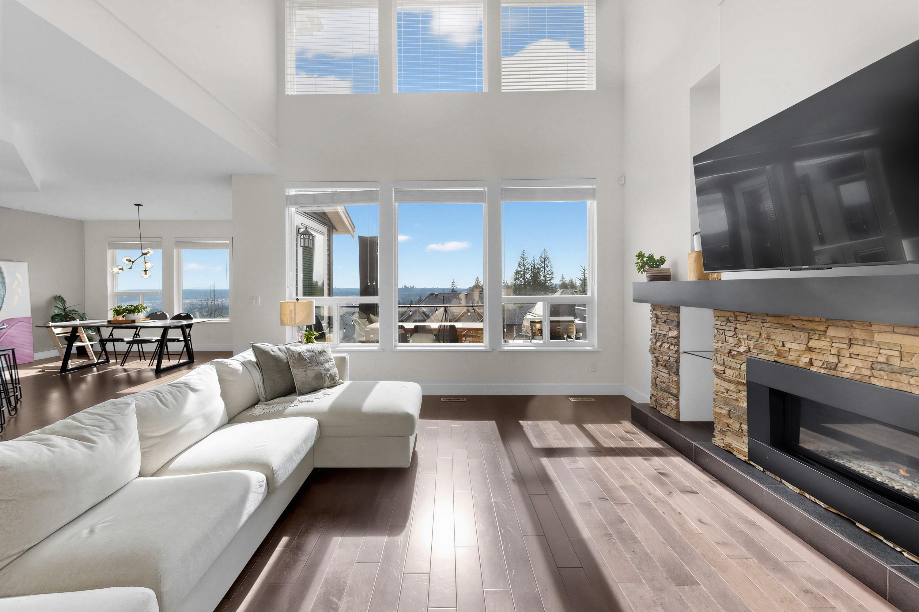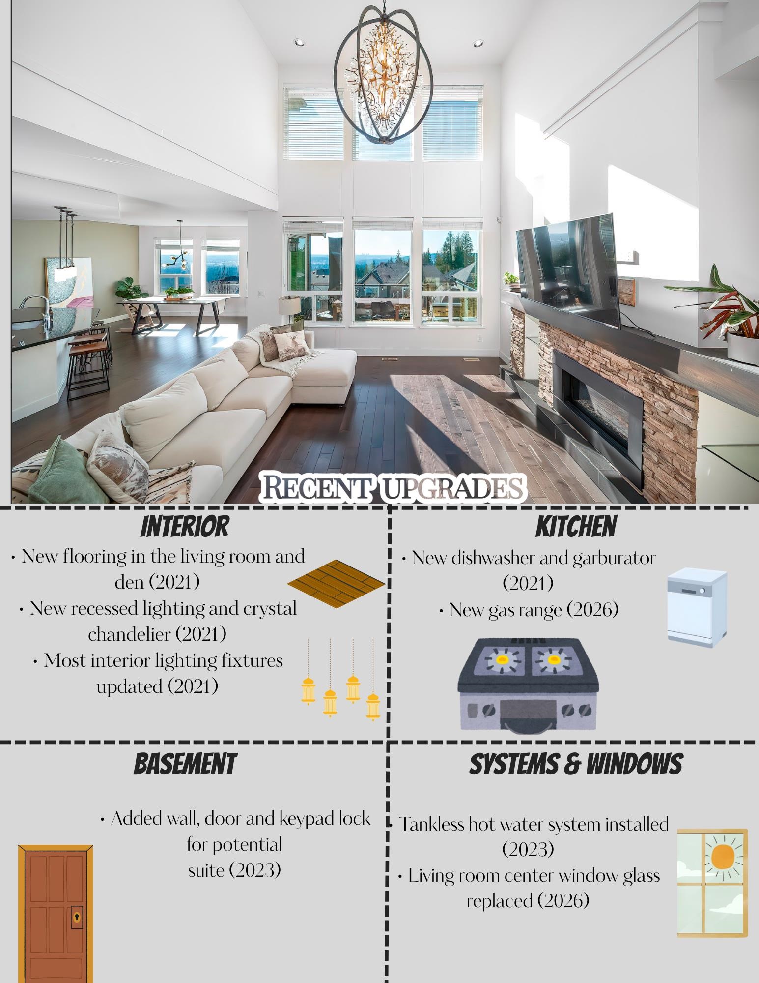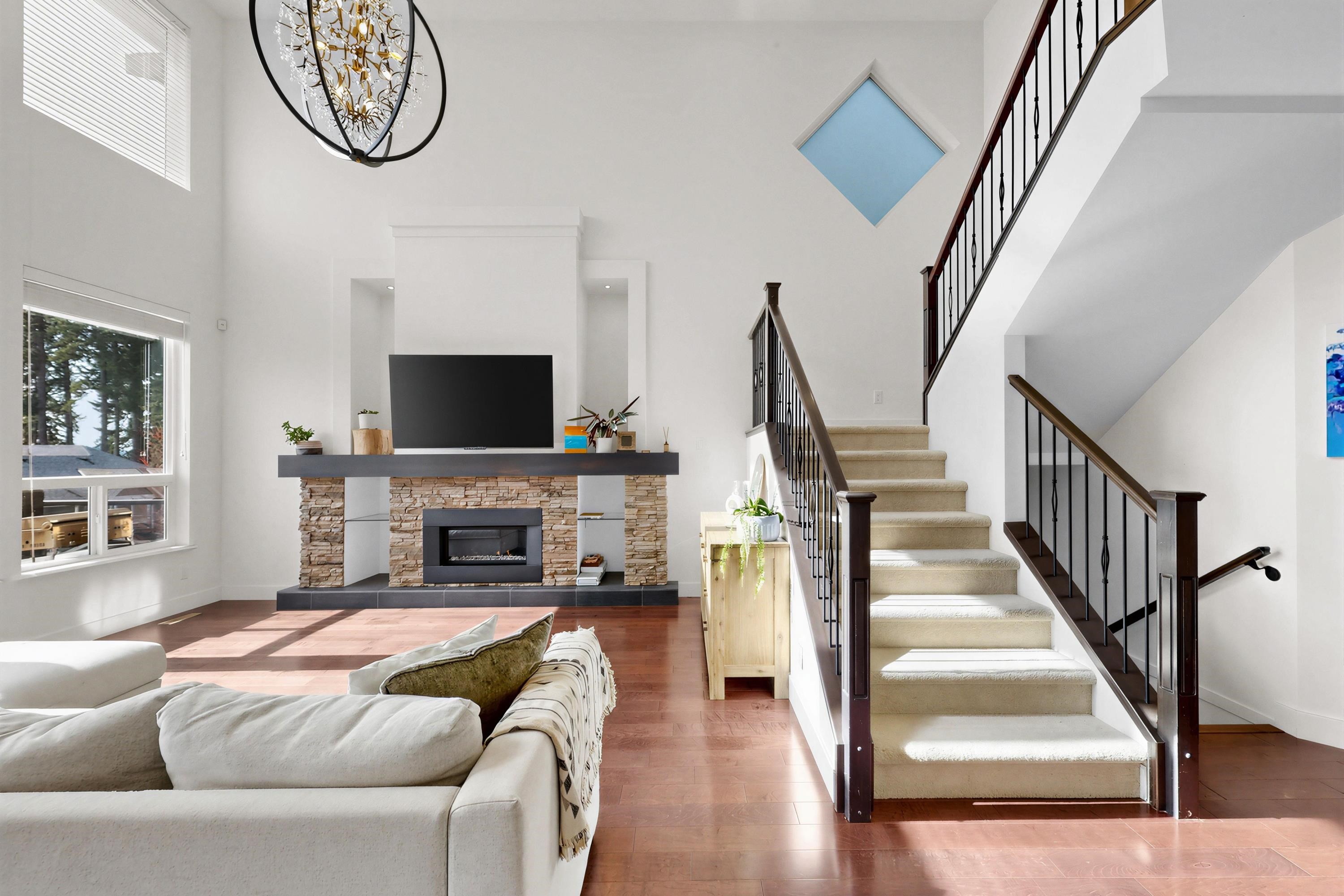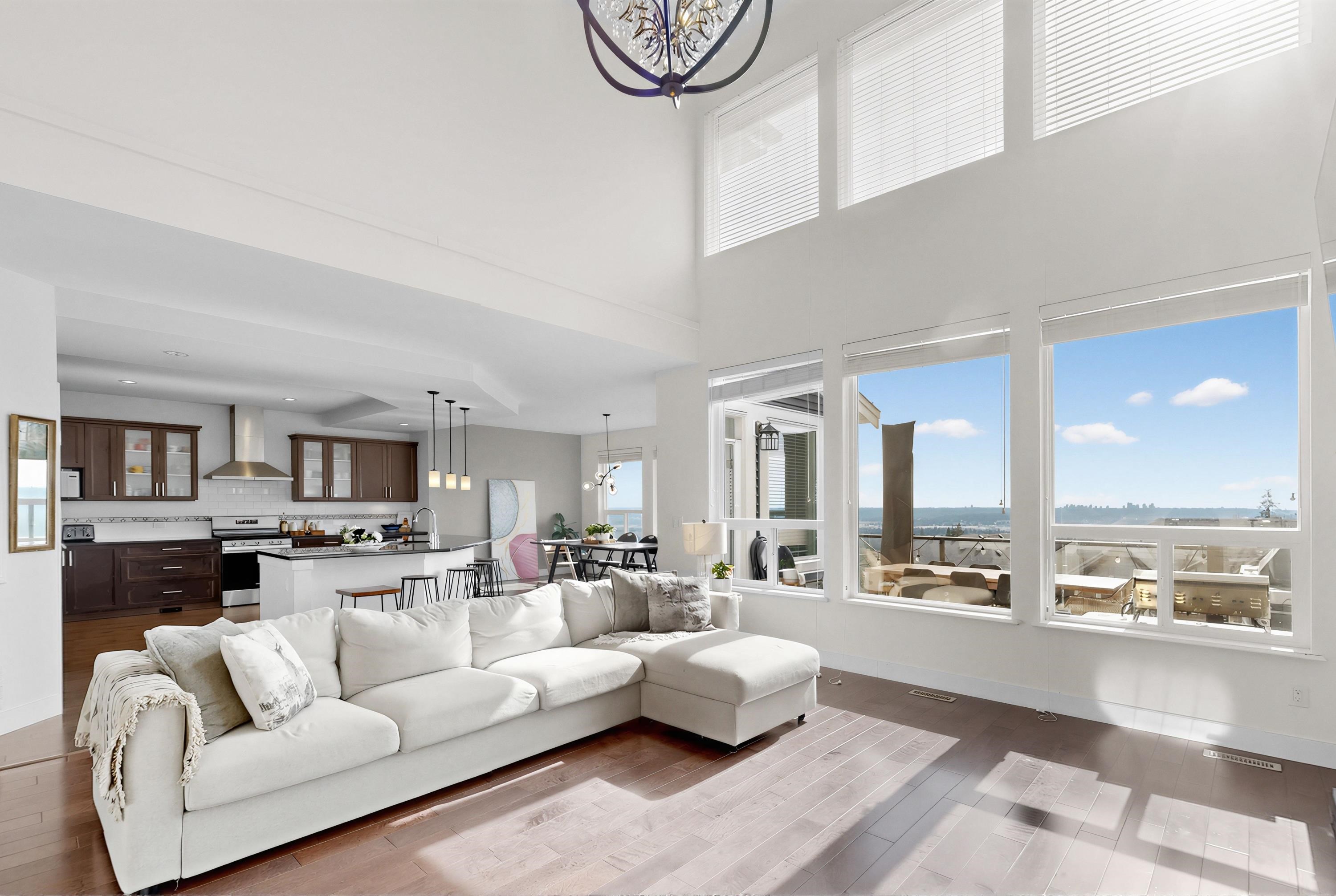 STUNNING mountain-view home. The main floor features HIGH ceiling, a crystal chandelier, and expansive south-facing windows framing breathtaking mountain and city views. Open-concep living, dining and kitchen areas share the same panoramic outlook. Upstairs offers a spacious primary suite with mountain views and ensuite, plus three additional bedrooms. The bright walkout basement is ideal for a potential self-contained suite with an additional bedroom. Recent upgrades include new flooring, recessed lighting...