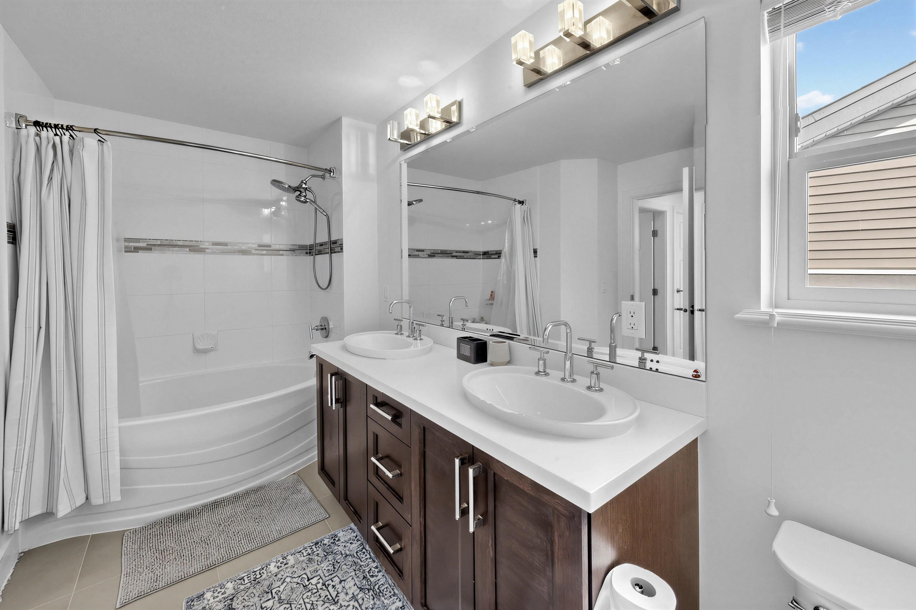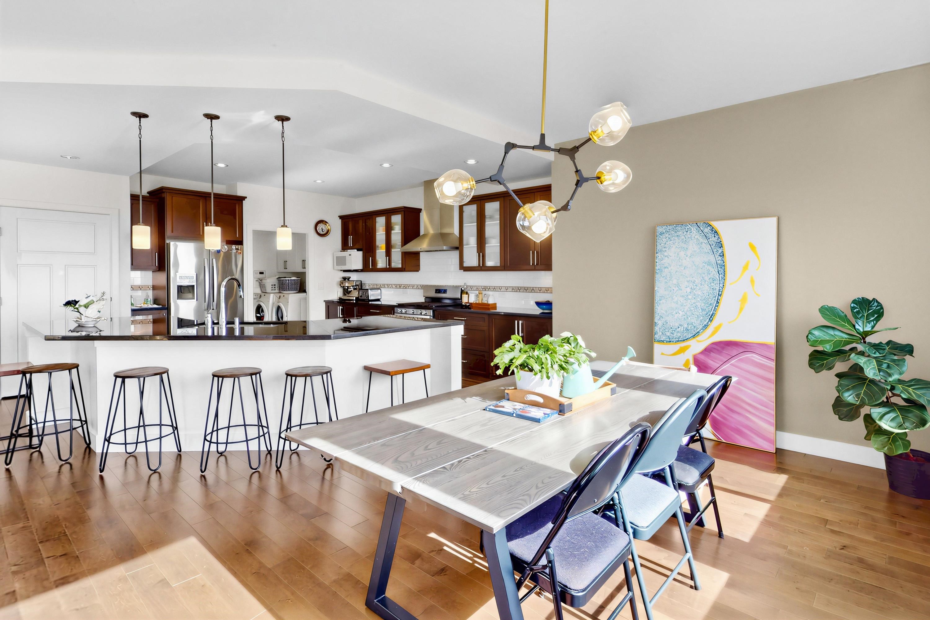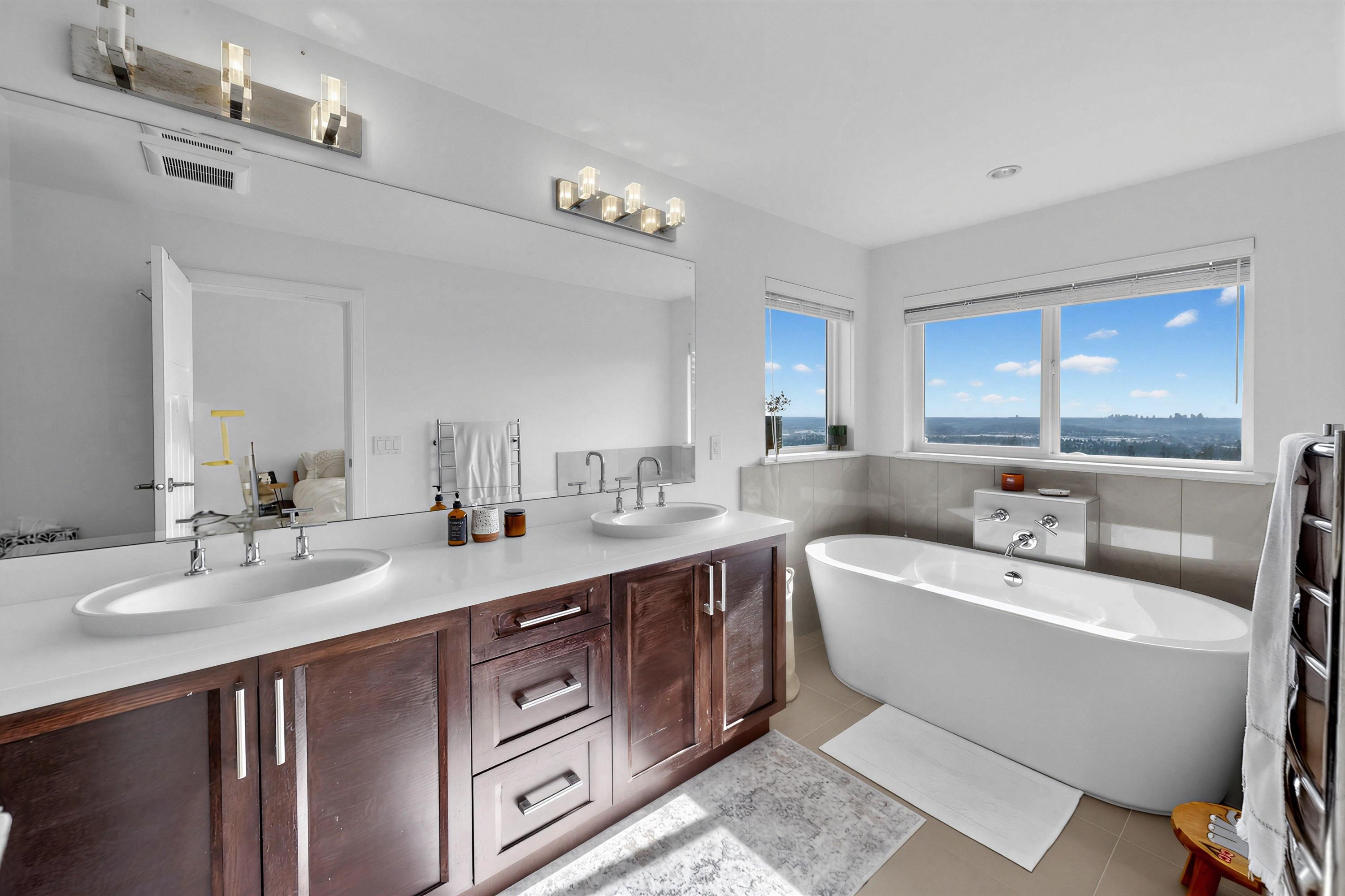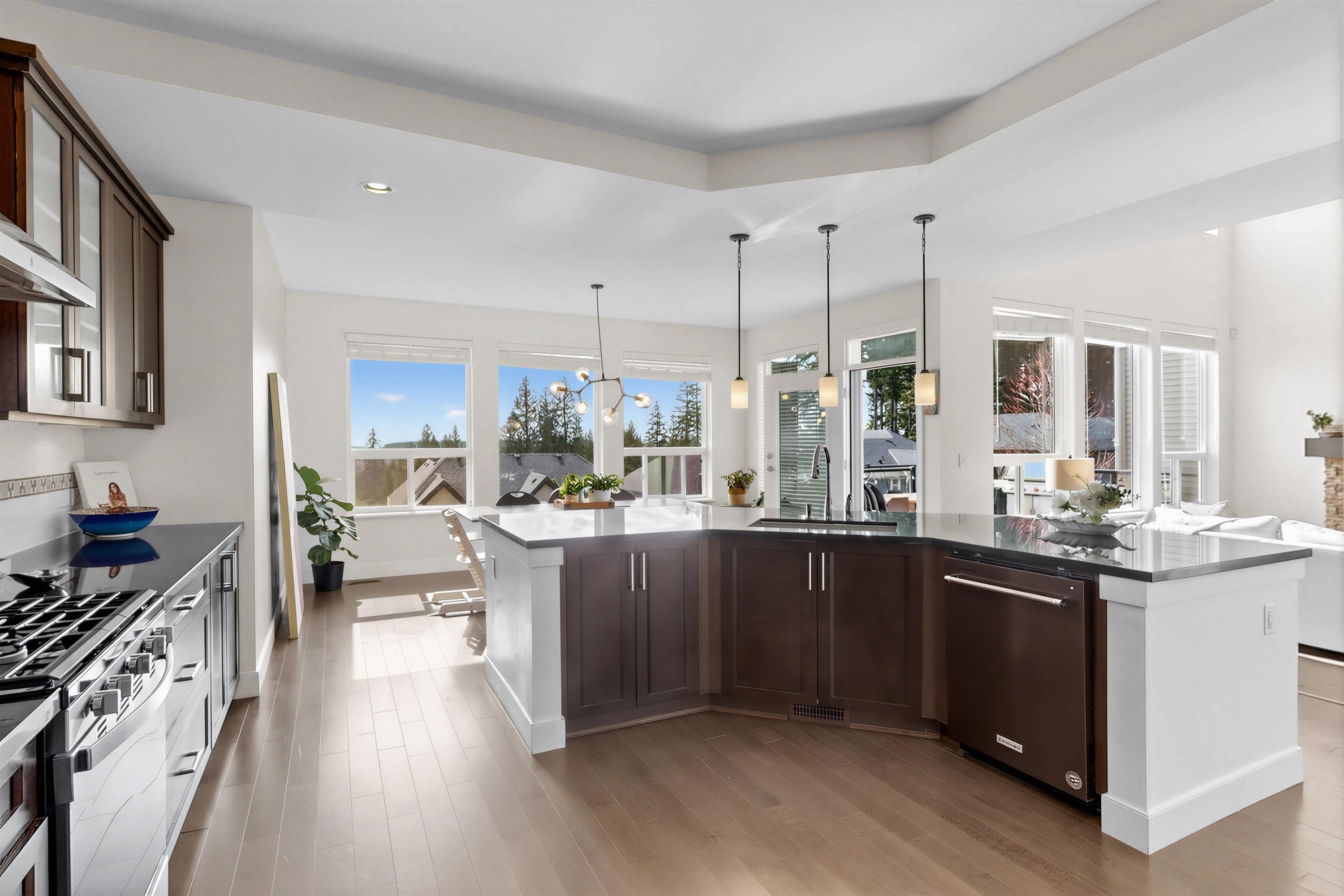 STUNNING mountain-view home. The main floor features HIGH ceiling, a crystal chandelier, and expansive south-facing windows framing breathtaking mountain and city views. Open-concep living, dining and kitchen areas share the same panoramic outlook. Upstairs offers a spacious primary suite with mountain views and ensuite, plus three additional bedrooms. The bright walkout basement is ideal for a potential self-contained suite with an additional bedroom. Recent upgrades include new flooring, recessed lighting...