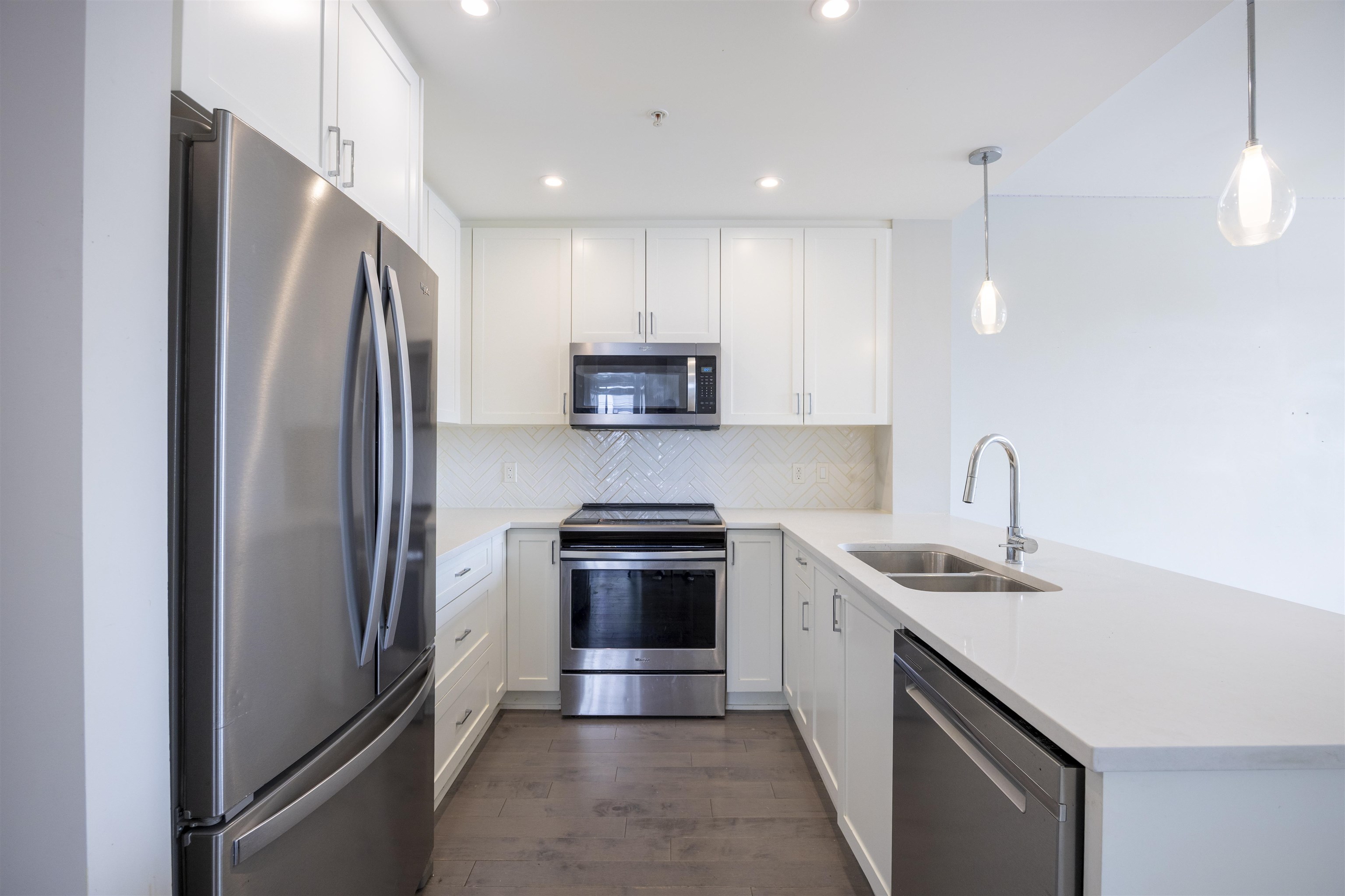Location, Location. Welcome to Montrose Square nestled in the heart of historic Downtown Poco. This CLEAN & BRIGHT 2 bedroom & 2 bathroom unobstructed corner UNIT features S/S appls including an able door fridge with lower drawer freezer, two- tone cabinets, quartz countertops and convenient breakfast bar, In-suit laundry, large windows, laminate flooring, carpeted bedroom. Unit comes with one parking spot plus a same floor enclosed storage locker and one bike locker.pushing open the glass sliding door to d...