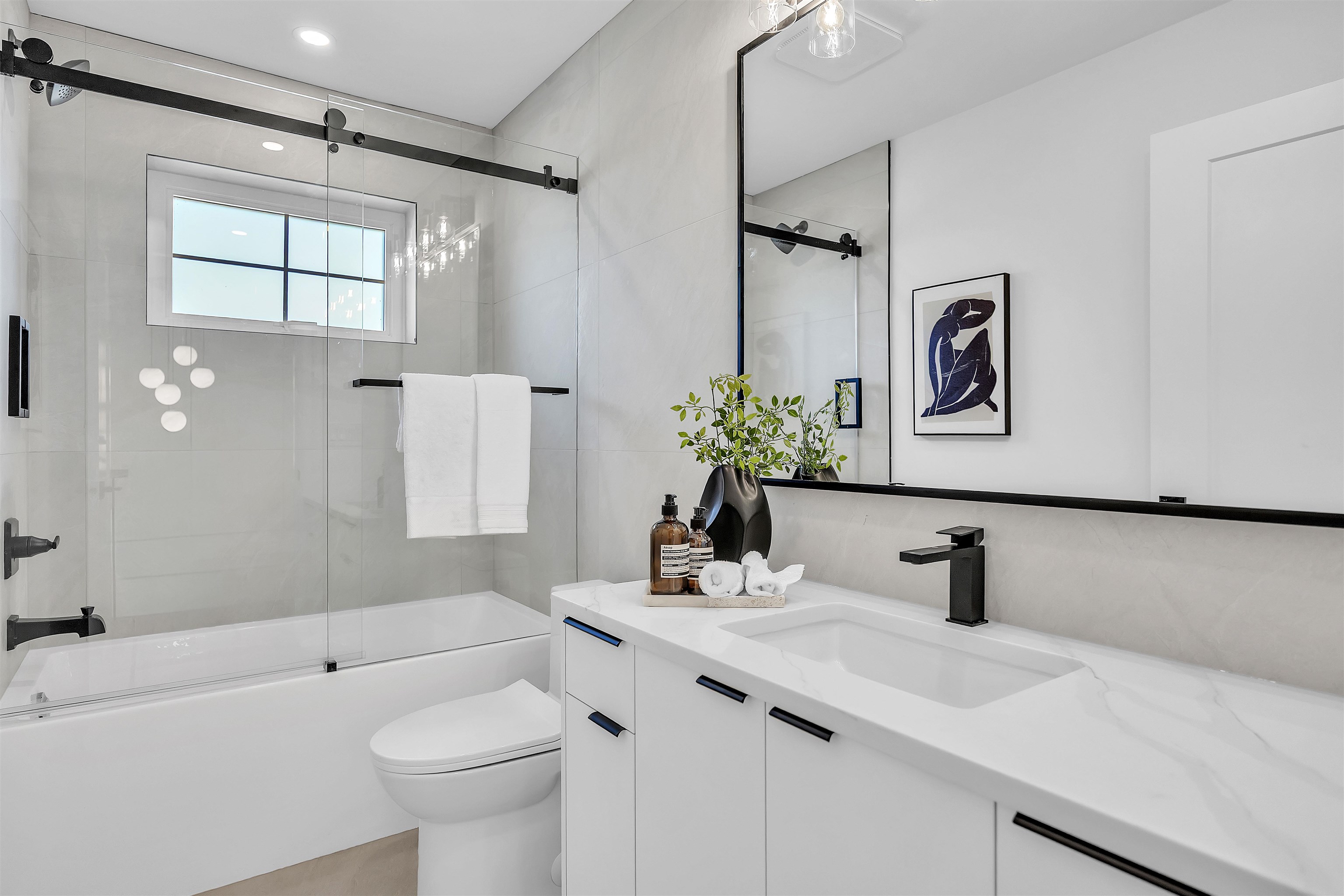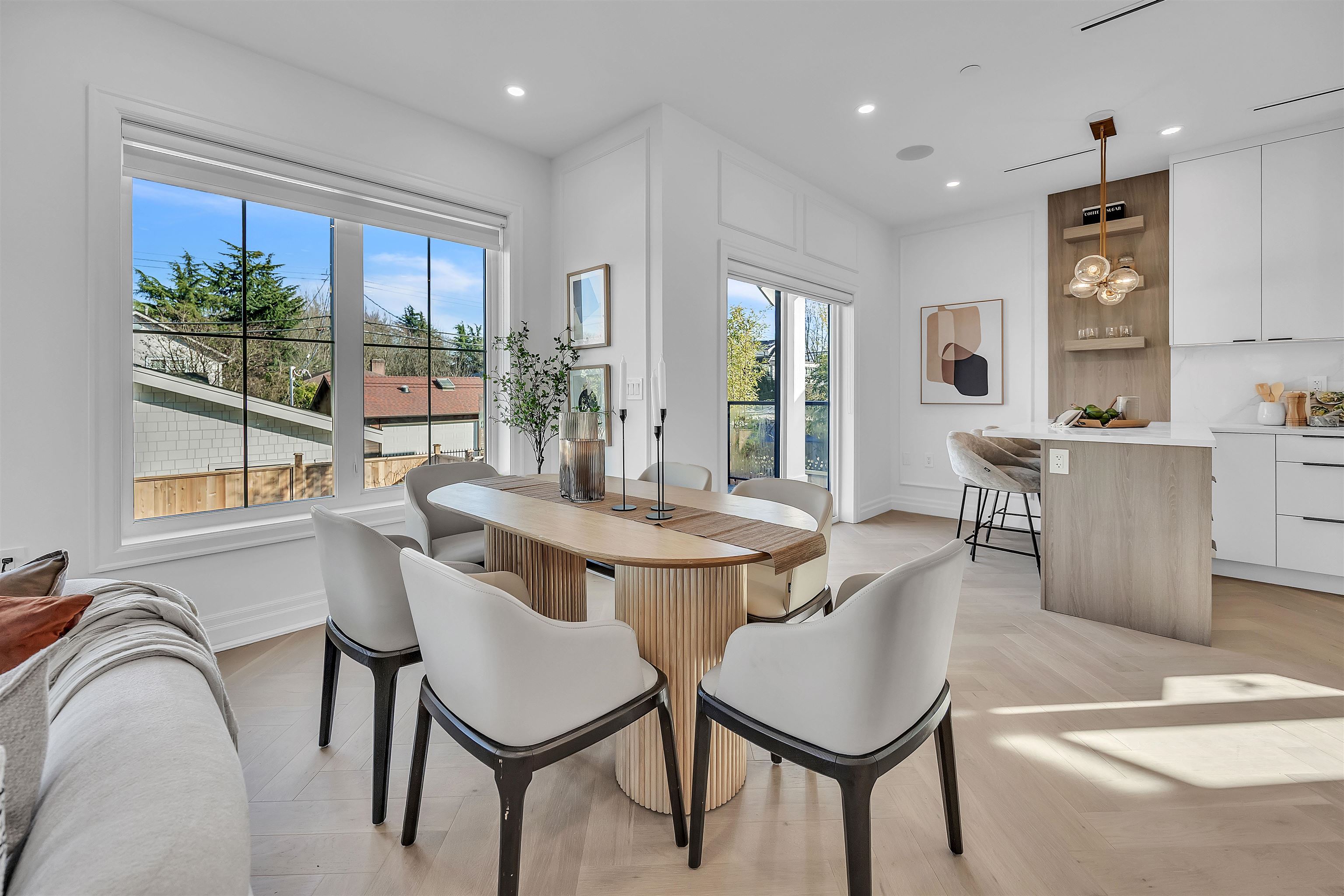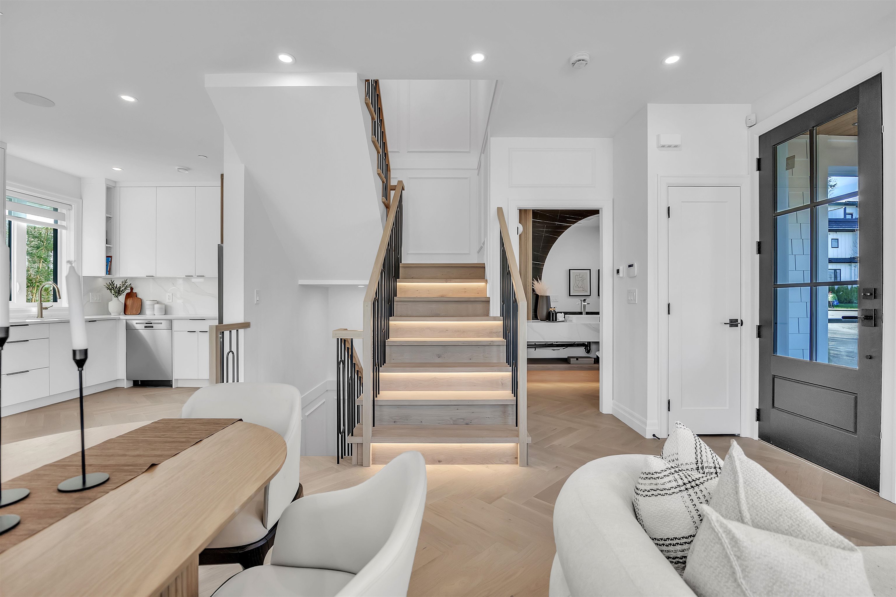 Beautiful back half duplex offering over 1,900 sqft of thoughtfully designed space. This brand new 4 bed, 4 bath home showcases gorgeous modern finishings, hardwood flooring, quartz countertops, premium Bosch appliances, A/C, and soaring ceilings that flood the home with natural light. Functional open layout perfect for families and entertaining. Basement features plumbing and electrical already roughed-in for an easy 1- bed suite conversion. Detached garage, reap parking pad, plus additional front parking....