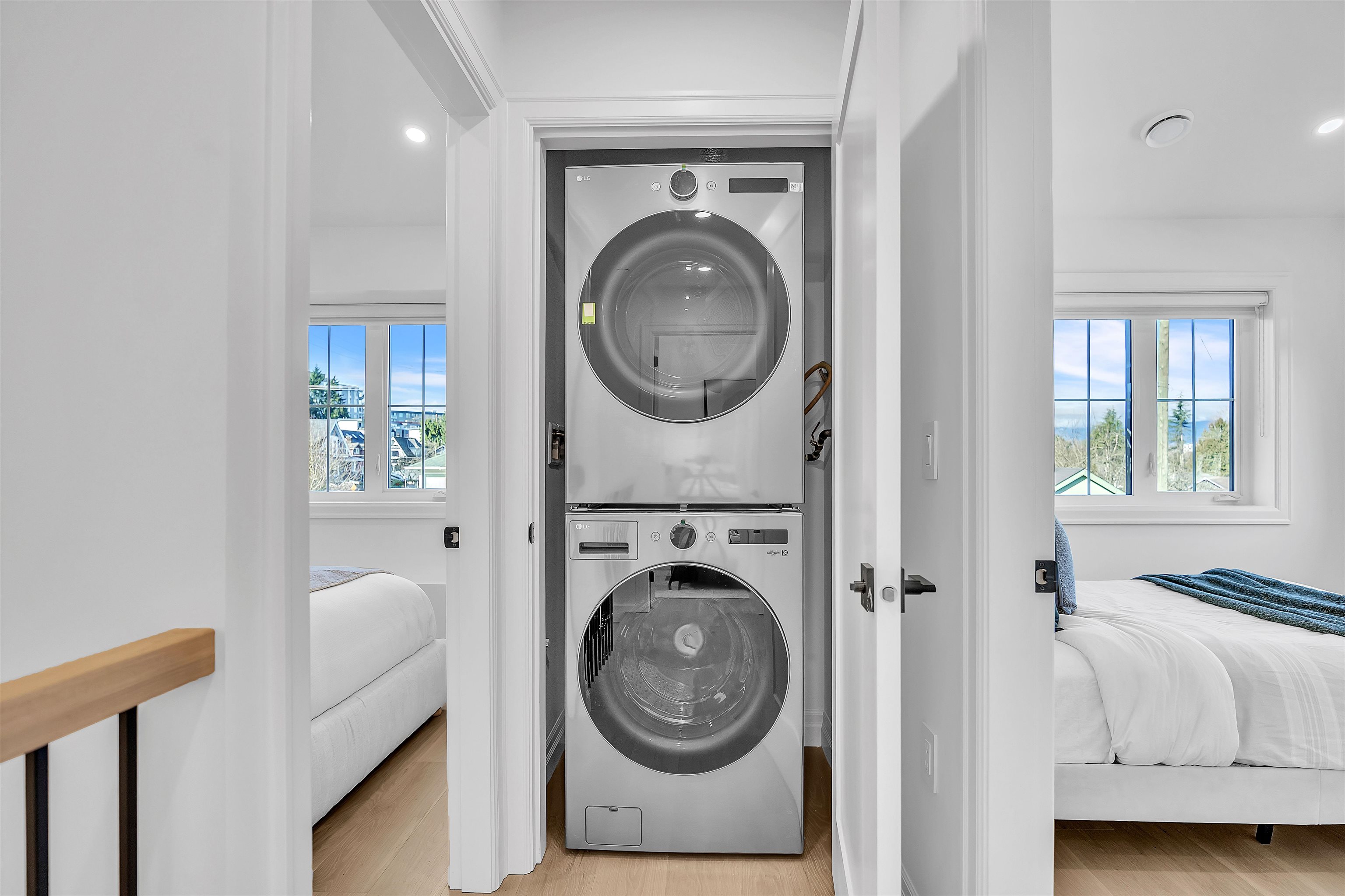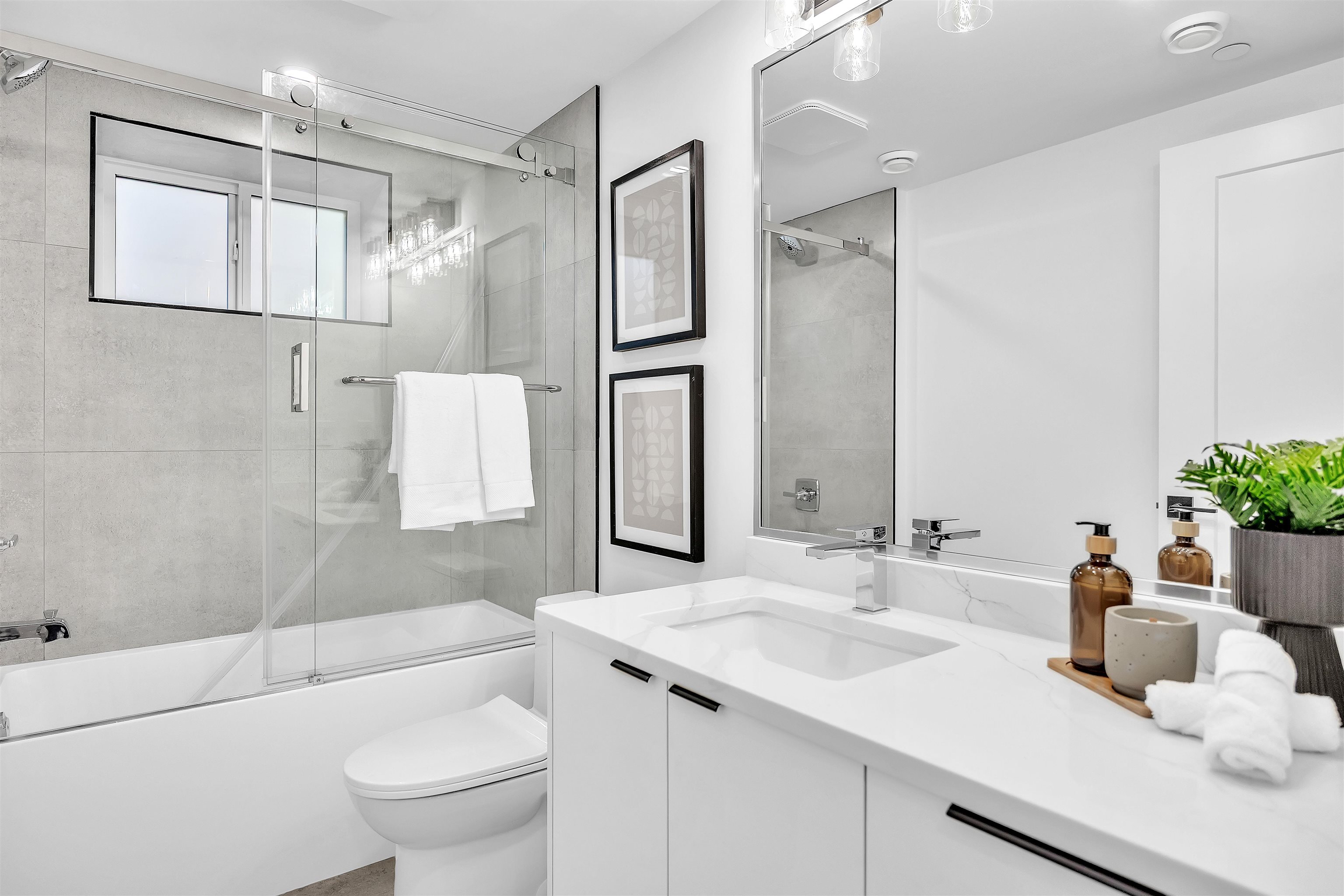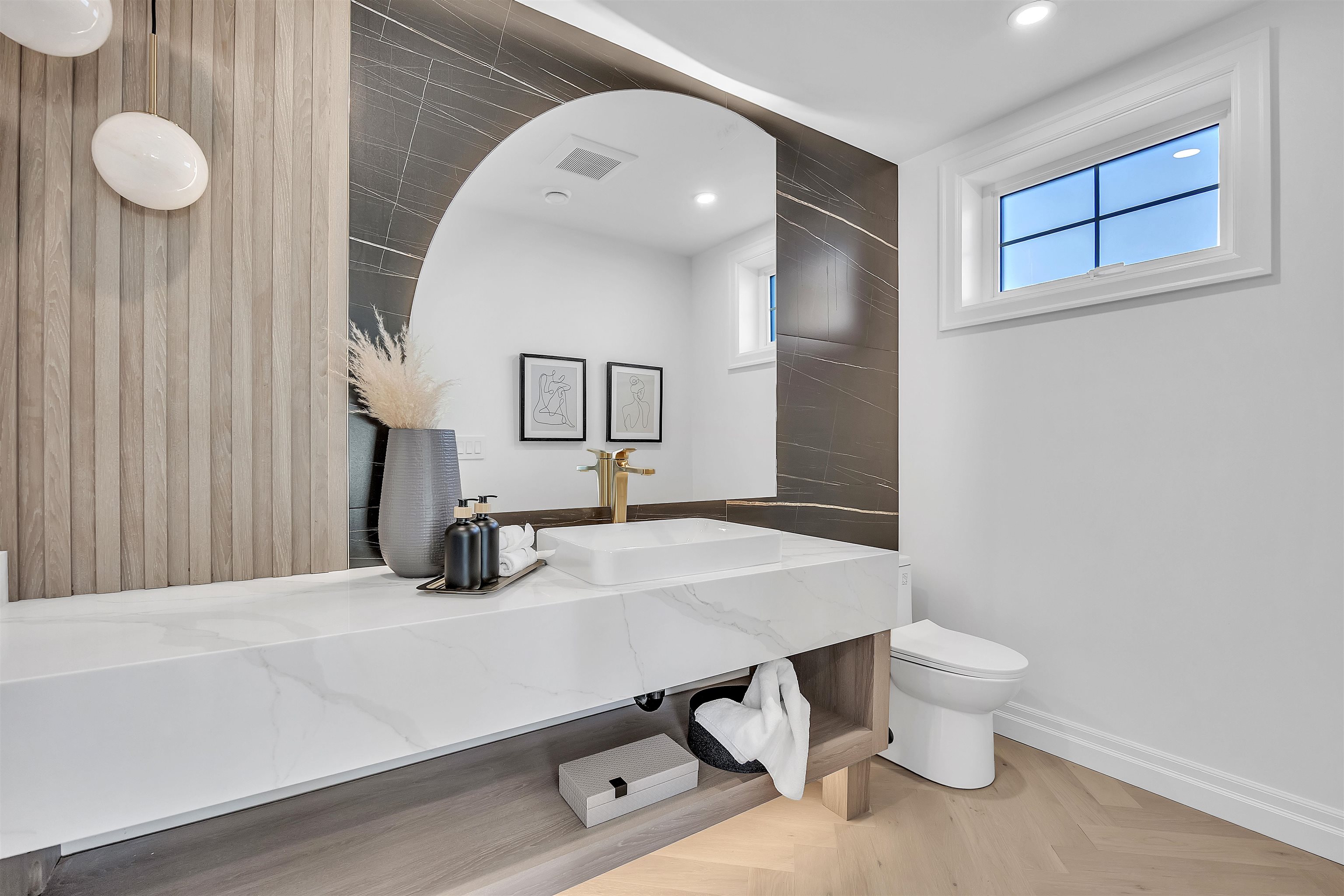 Beautiful back half duplex offering over 1,900 sqft of thoughtfully designed space. This brand new 4 bed, 4 bath home showcases gorgeous modern finishings, hardwood flooring, quartz countertops, premium Bosch appliances, A/C, and soaring ceilings that flood the home with natural light. Functional open layout perfect for families and entertaining. Basement features plumbing and electrical already roughed-in for an easy 1- bed suite conversion. Detached garage, reap parking pad, plus additional front parking....