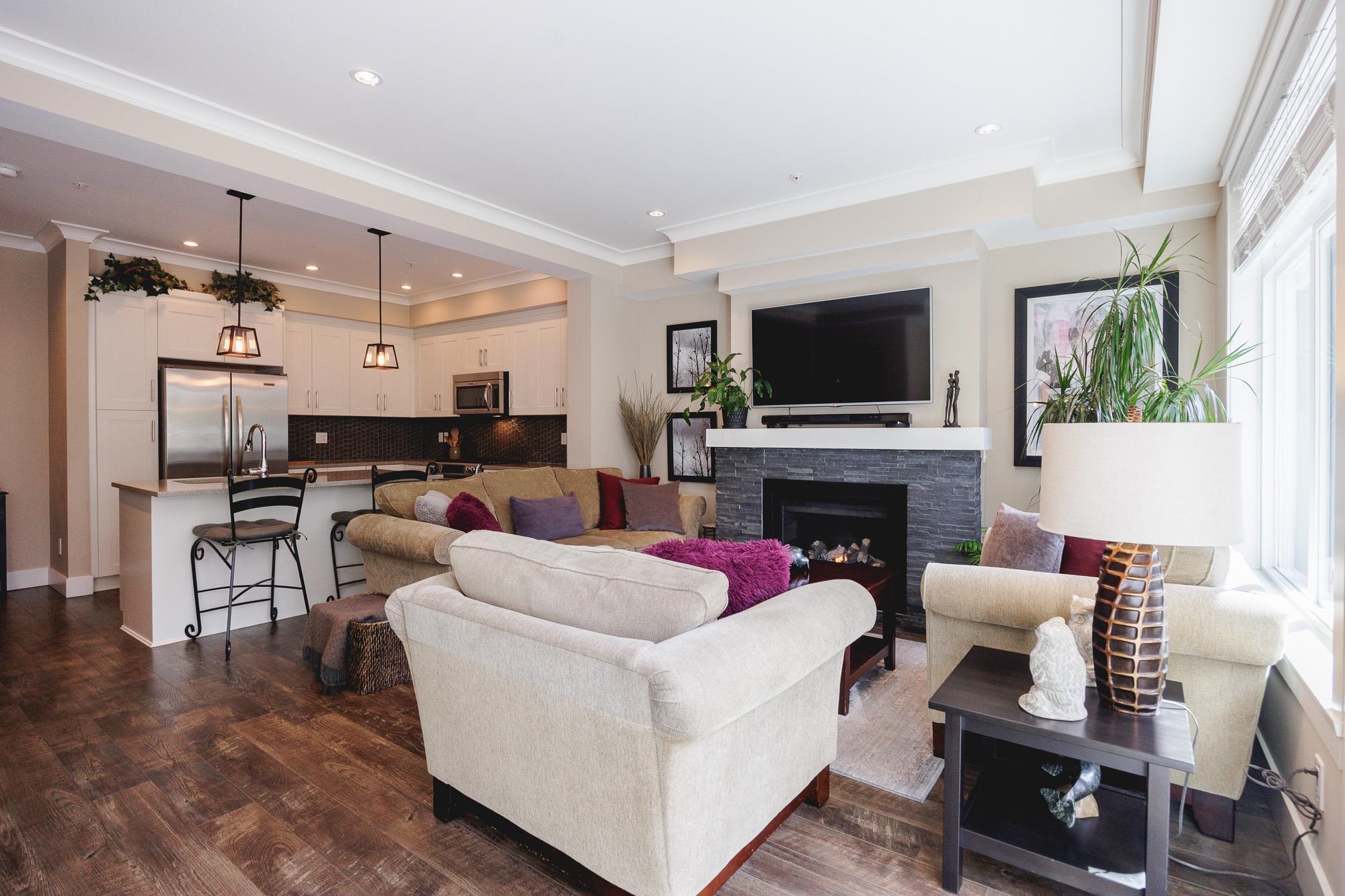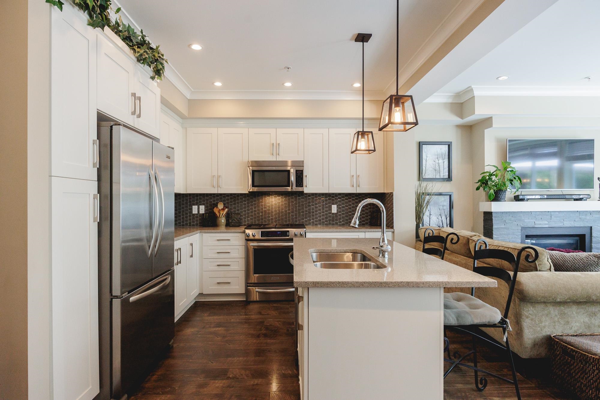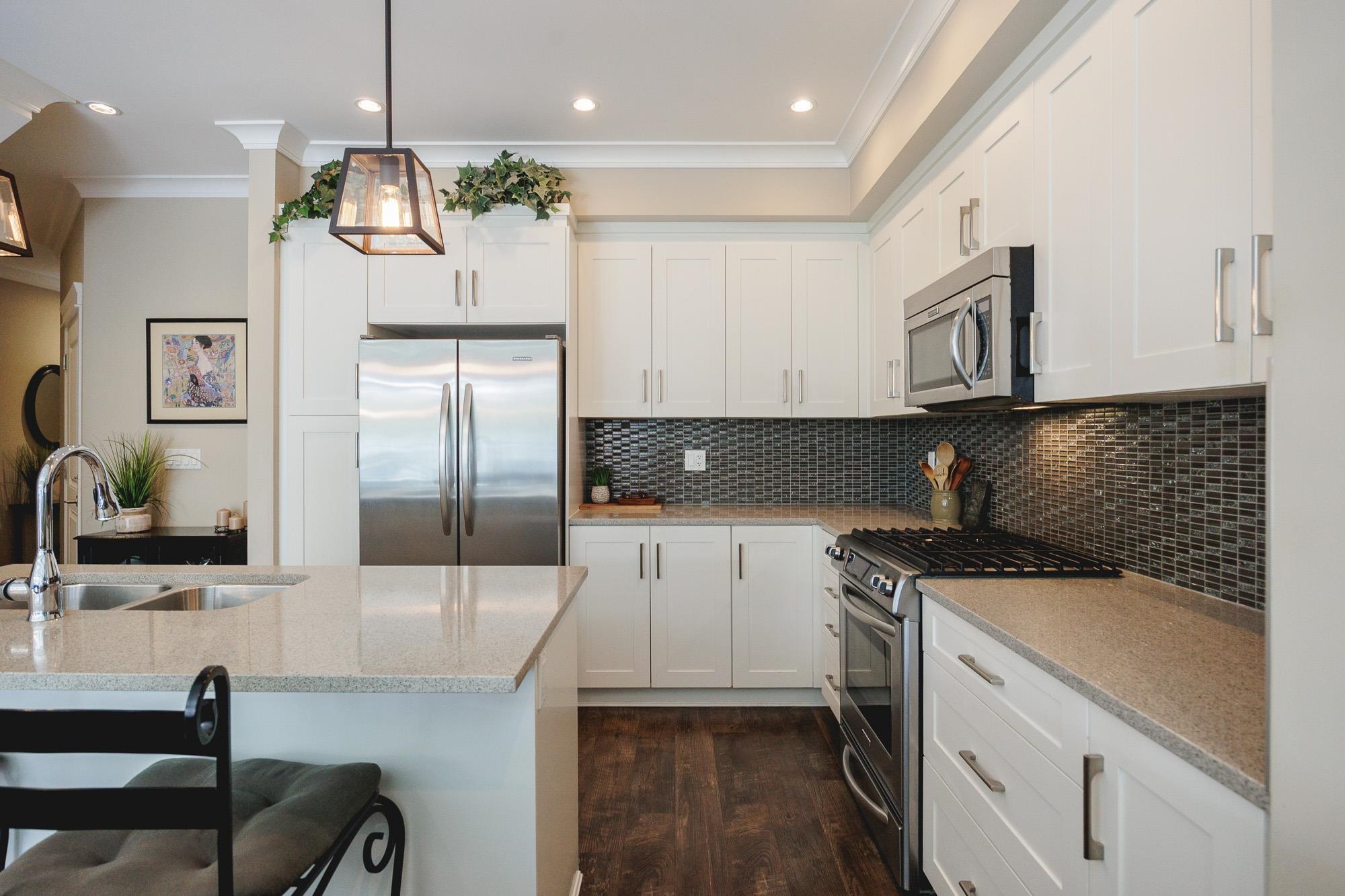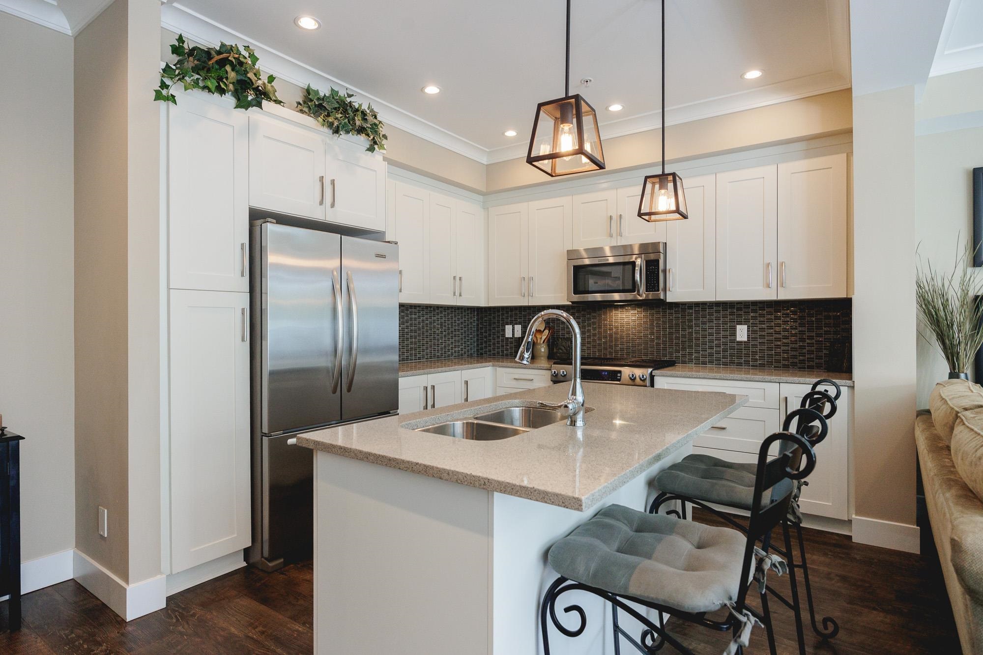 GREENBELT DREAMHOME! Step into the ultimate in privacy at "Two Birds" by award winning Walmark Homes. This over 2200 s.f. unit is loaded with thoughtful upgrades and quality finishes. Side by Side double garage, entertainers dream stone island kitchen with gleaming white cabinets and stainless appliances including gas stove. Open concept main floor with floor to ceiling and wall to wall windows taking full advantage of the permanent greenbelt. Large deck with gas hookup. Three large bedrooms upstairs incl...
