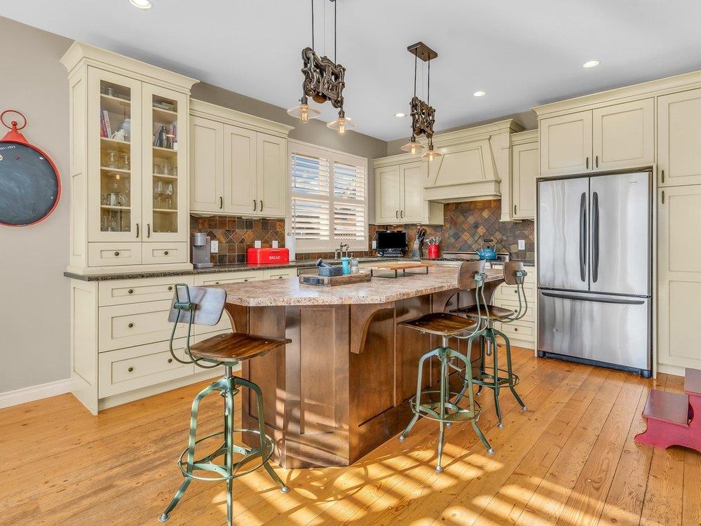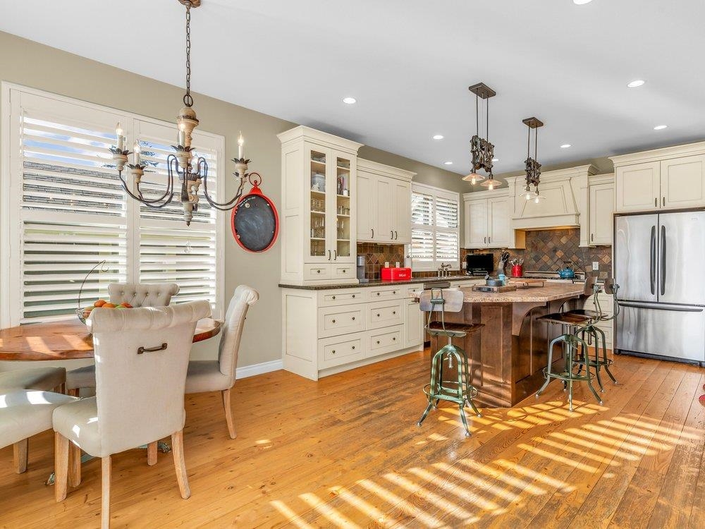 Custom built home, across from the beach, w ocean views from the 2 upper beds & balcony, in Boundary Bay. Filled w natural light & boasting lrg principal entertaining areas both inside & out, this gorgeous 4 bed home-den/1 bed on main & primary w huge wlk-in closet +ensuite upstairs, offers a gorgeous kitchen w huge island, 6 burner Bertazzoni gas range, 2 sets of french doors to back, stunning Restoration Hardware lighting, California shutters, rustic fir hdwood floors, 3 full baths, 3 cozy fireplaces-1 ou...