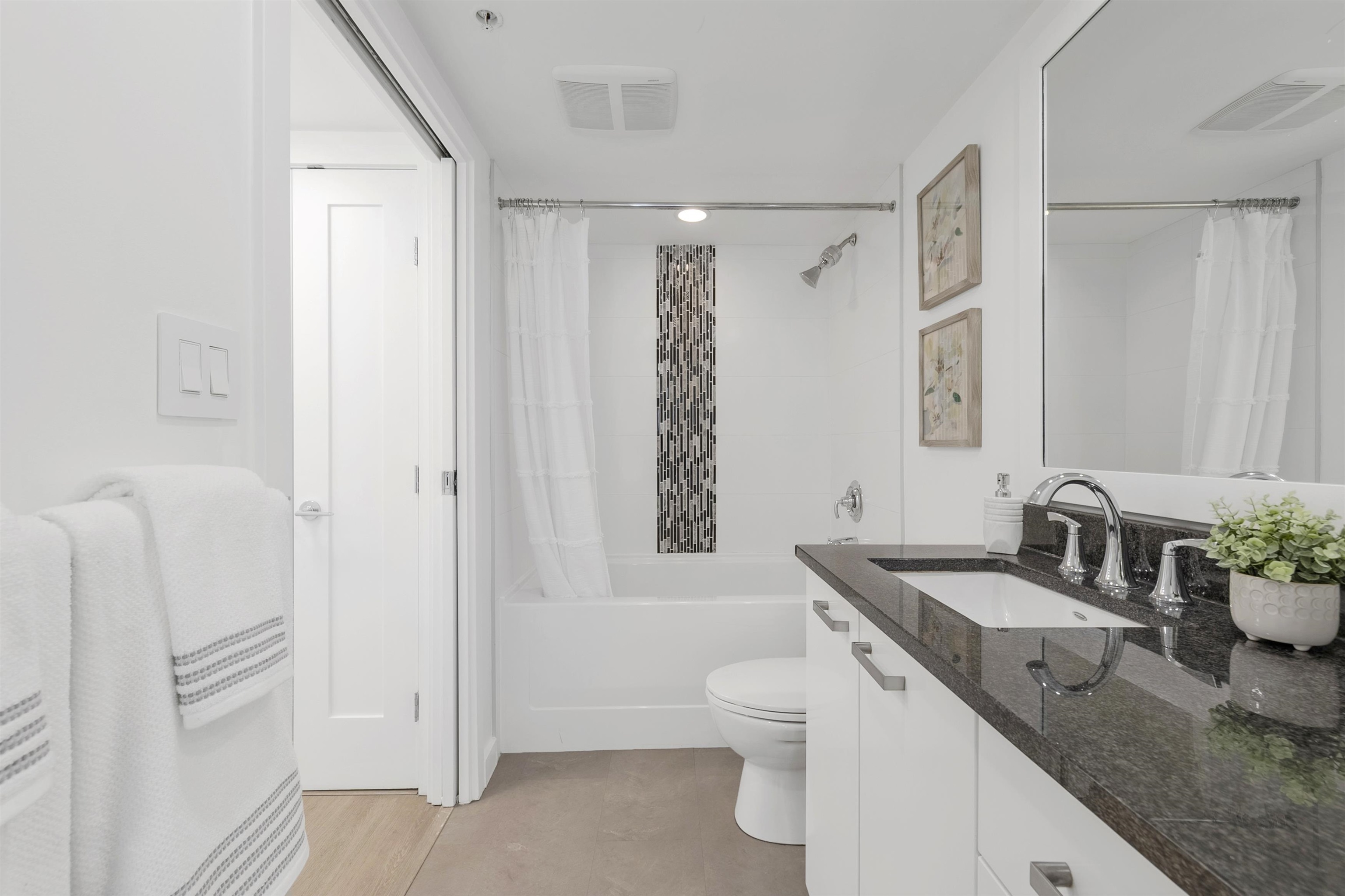 This beautifully designed 1 bed+ flex home offers a bright open concept layout and a contemporary kitchen with soft close cabinetry and a gas range. The versatile flex space features a custom built in desk ideal for a home office. Enjoy seamless indoor-outdoor living with a 250+ sq ft private south facing patio on the quiet side of the building, plus air conditioning for year round comfort. Building amenities include rooftop terraces with BBQs and garden plots, a gym, and bike room. Pet and rental friendly....