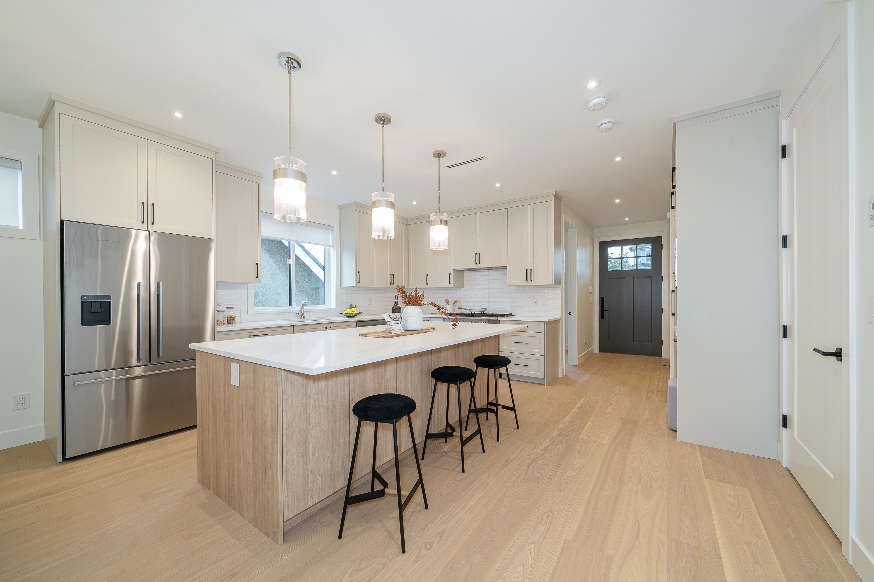 Welcome to this beautifully-designed & quality-built 3-level executive 1/2 duplex home on a very nice flat lot lo exquisite Oxford St in booming Vancouver Heights area of Burnaby North! Amazing timeless color scheme throughout w/ the exhilarating promises of unparalleled craftsmanship, detailed design & luxe finishes! From big family room, stunning kitchen featuring open concept layouts w/ample counter space, Fisher & Paykel appliances, to gorgeous full bath on main, from elegant lightings to bathroom chrom...