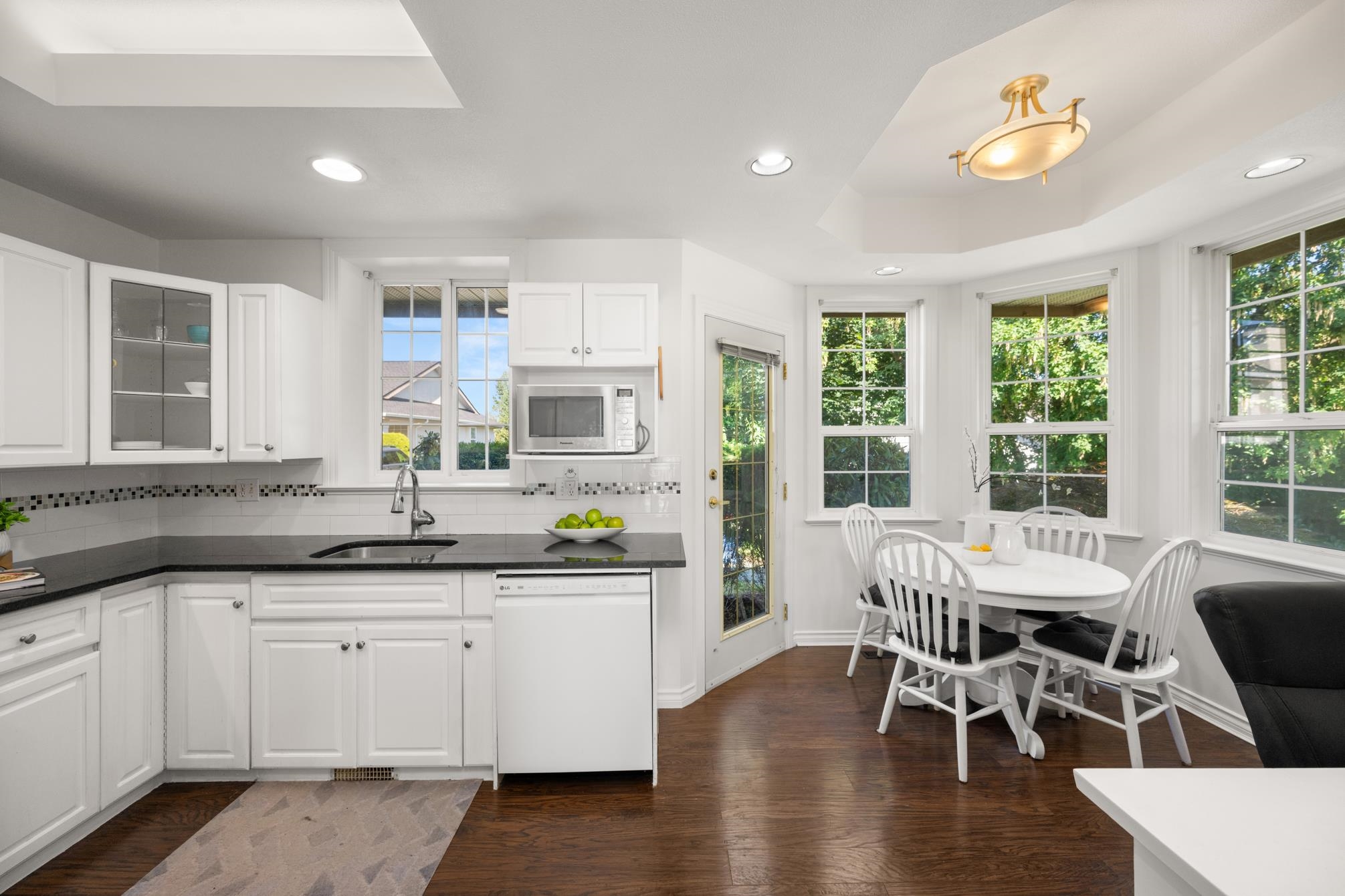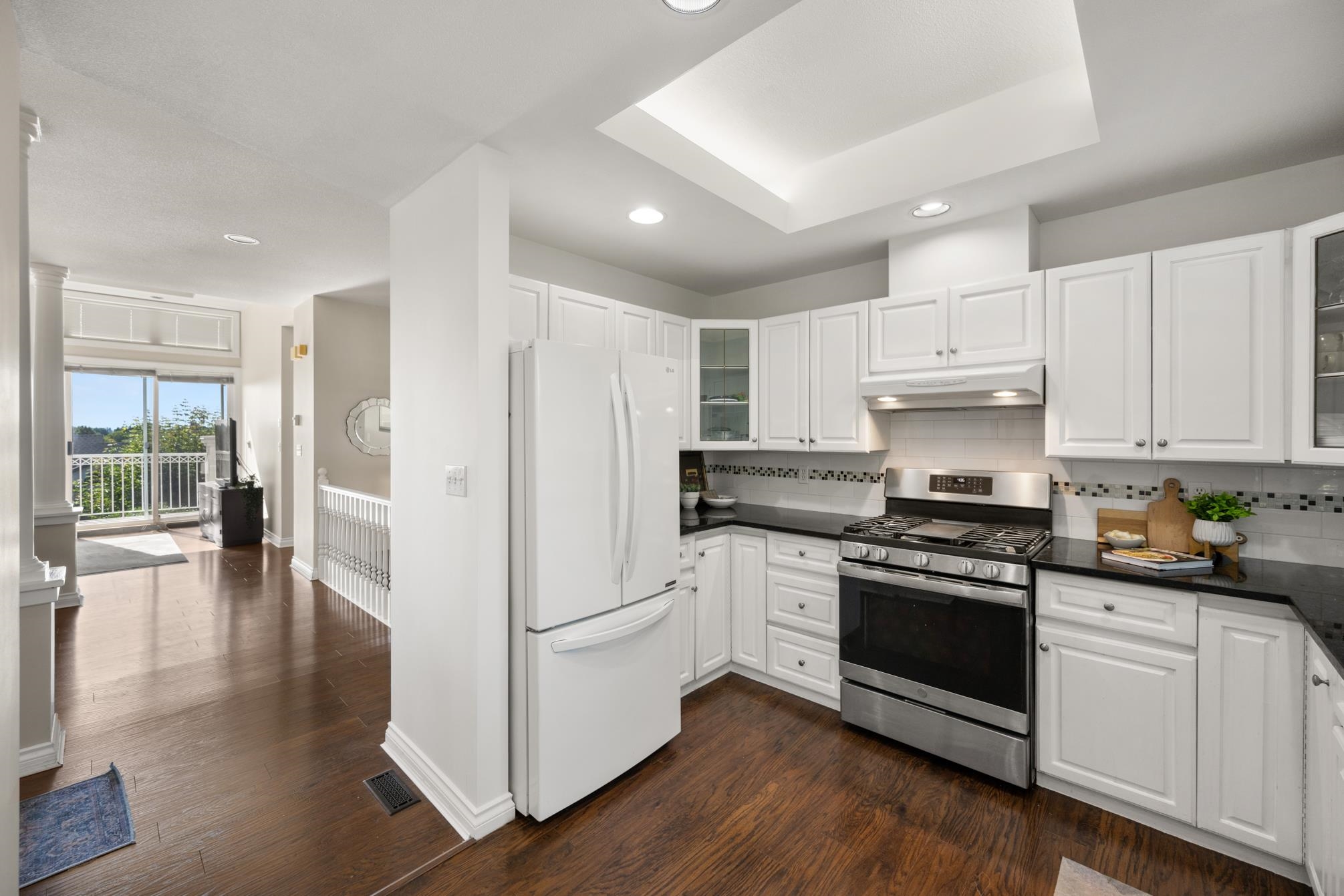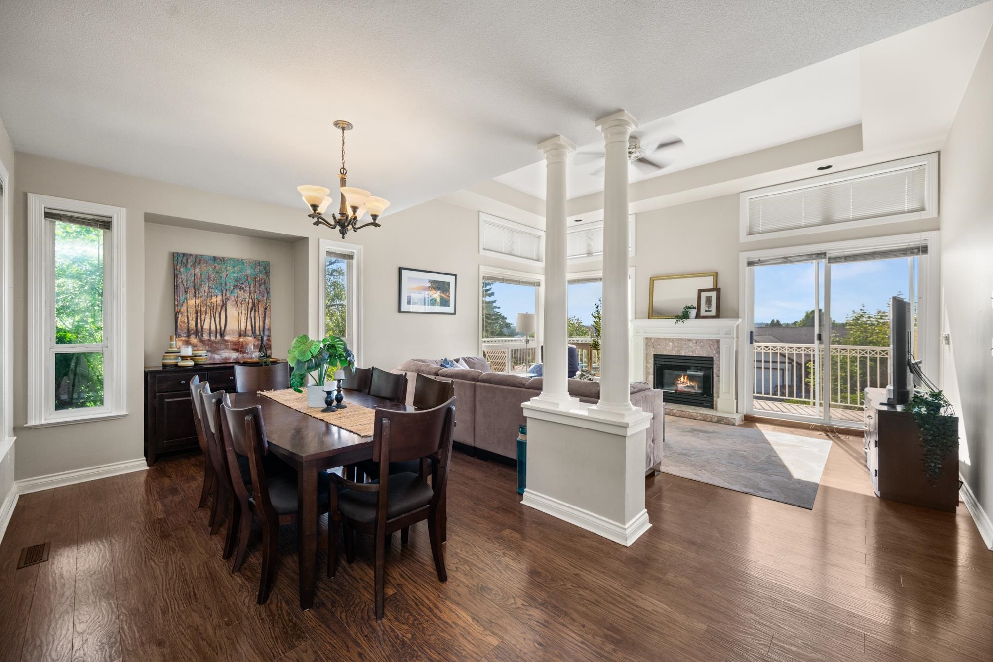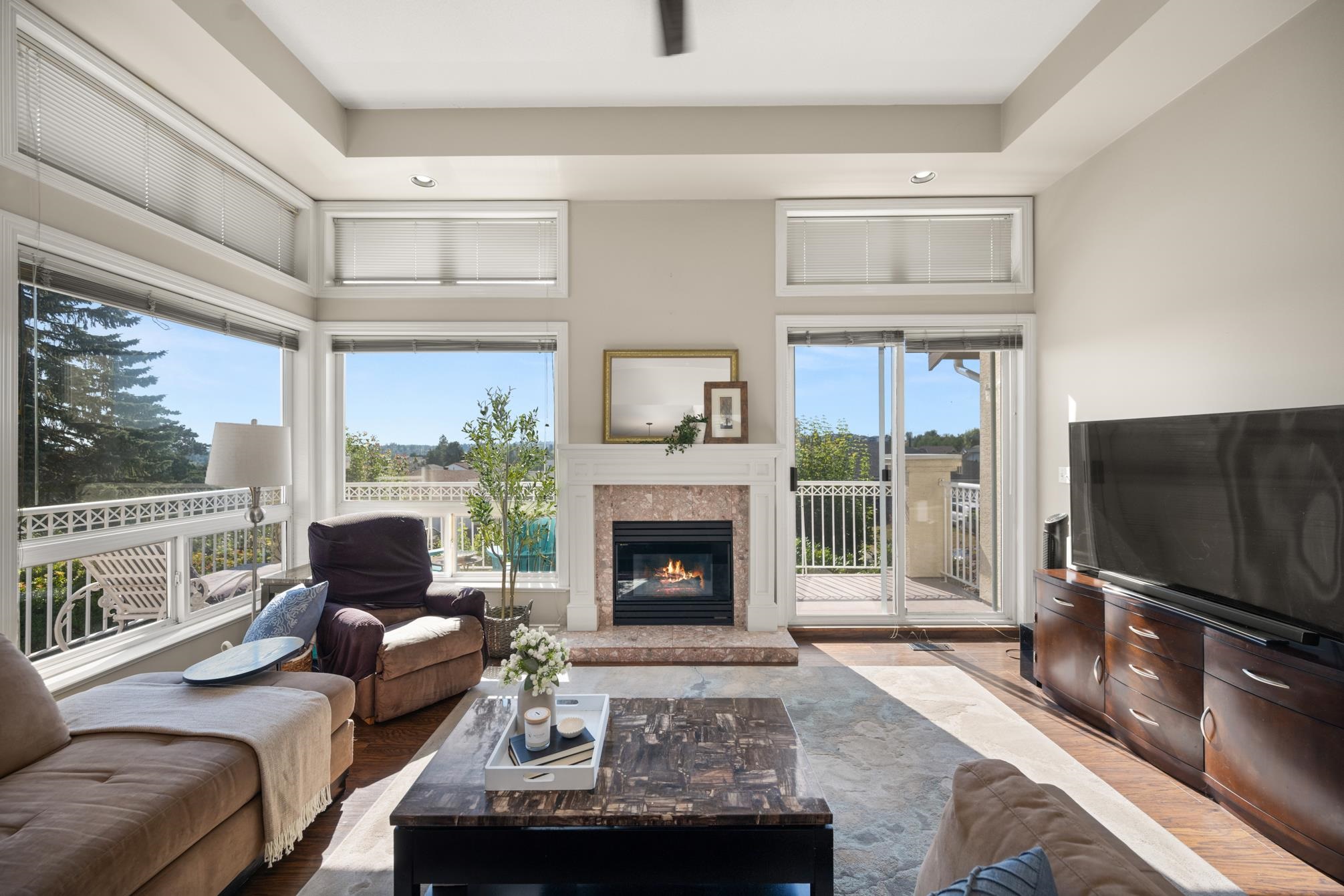 Welcome to LakePointe Villas, nestled around Ponderosa Park Lake and linked to the Discovery Trail system! This rare rancher-style end-unit townhouse with a walkout basement offers luxurious, low-maintenance living in one of Abbotsford’s most desirable communities. Enjoy a brand-new 2025 roof, views of the Airshow from your main floor sundeck, and added privacy beside mature greenery. The spacious layout includes 3 bedrooms, 3 full bathrooms, soaring 12-ft ceilings in the living room, granite counters, crow...