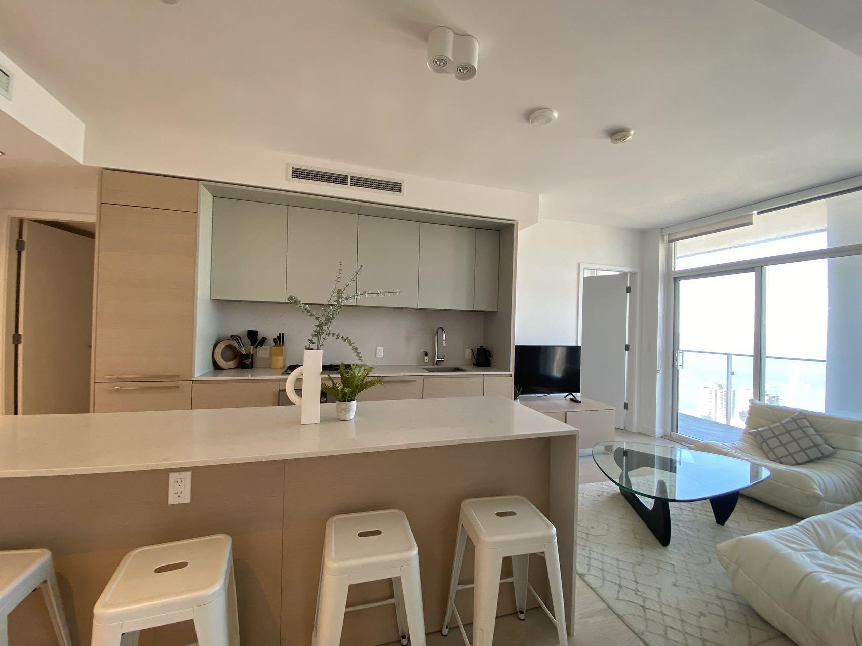 This luxurious condo features with 2 bedrooms, 2 bathrooms + den in a 759 sqft living space. Furnished with small appliances, kitchen utensils, cleaning supplies and bed linens. Top line appliances including Gaggenau & Bosch appliances. Perfect layout and spectacular mountain and sea views. Central AC provides you year-round comfort. 24/7 concierge service. One parking spot. 30,000 sqft clubhouse includes full length indoor swimming pool with steam and sauna, hot tub, gym room, yoga room, private stud...