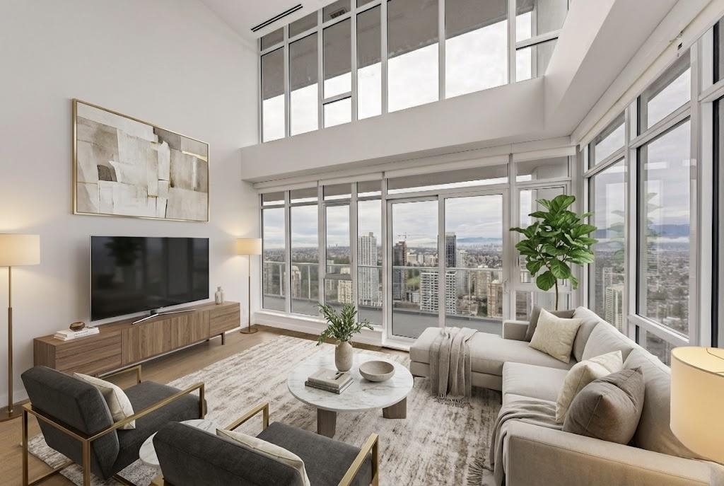 Welcome to Station Square 5 by Anthem Properties & Beedie Living. This STUNNING 2 level PENTHOUSE features 3 beds (all en-suites) + 4 baths, 6 HUGE balconies totaling 1,900+sqft of OUTDOOR SPACE w/PANORAMIC VIEWS of Downtown, Ocean, North Shore mountains & Deer Lake. Highlights incl. open kitchen w/ 36” Bosch integrated fridge, GAS cooktop, microwave w/trim kit, SOARING 20’ ceilings, AIR CONDITIONING, ELECTRIC BLINDS & LAUNDRY RM. Elevator access from 2nd level with only 2 penthouse residences. Enjoy 32,000...