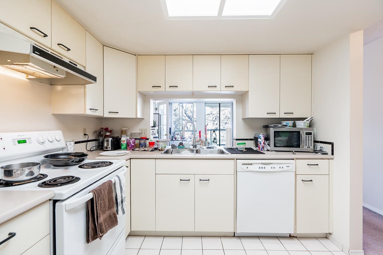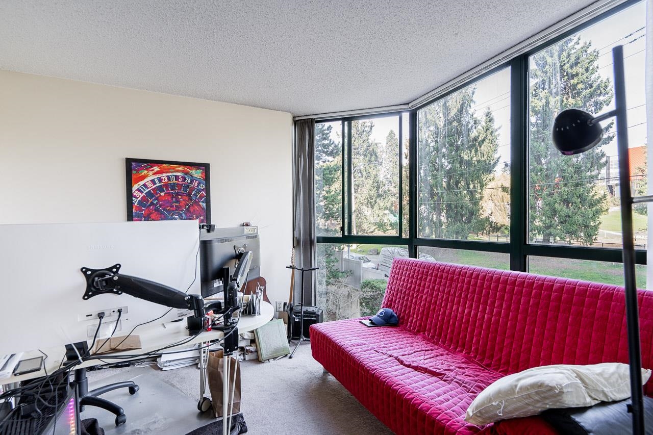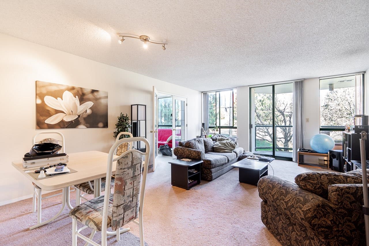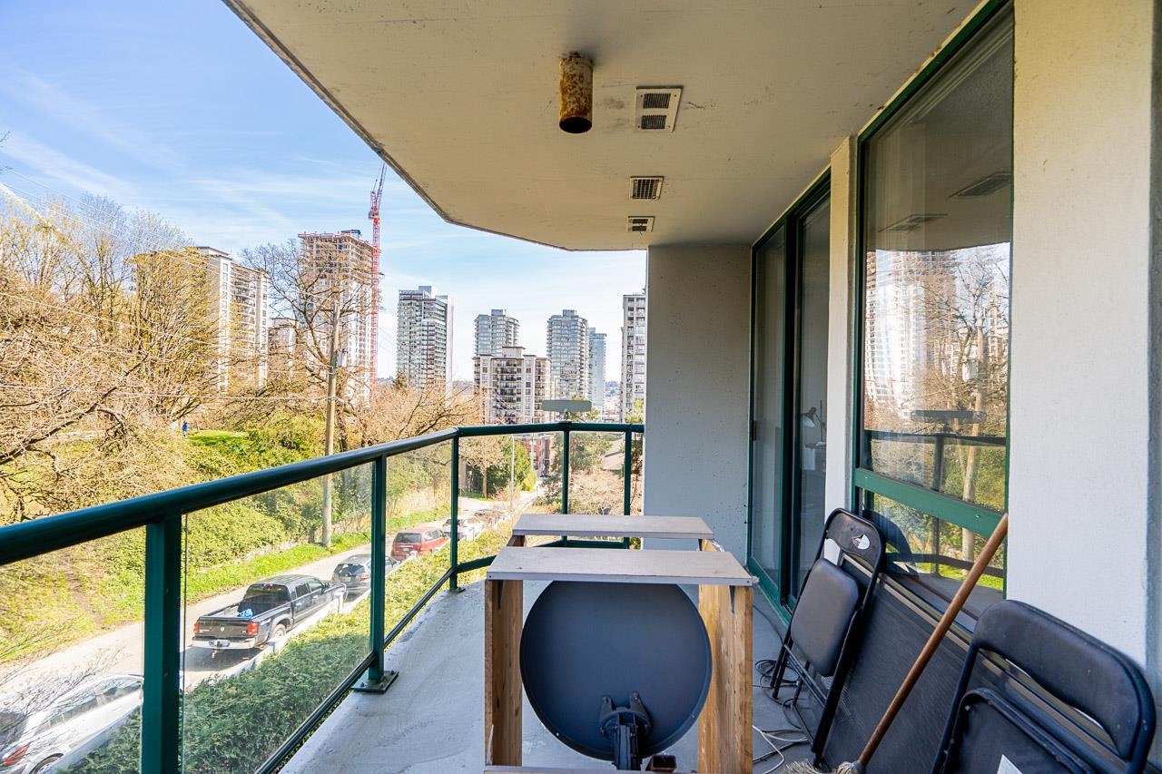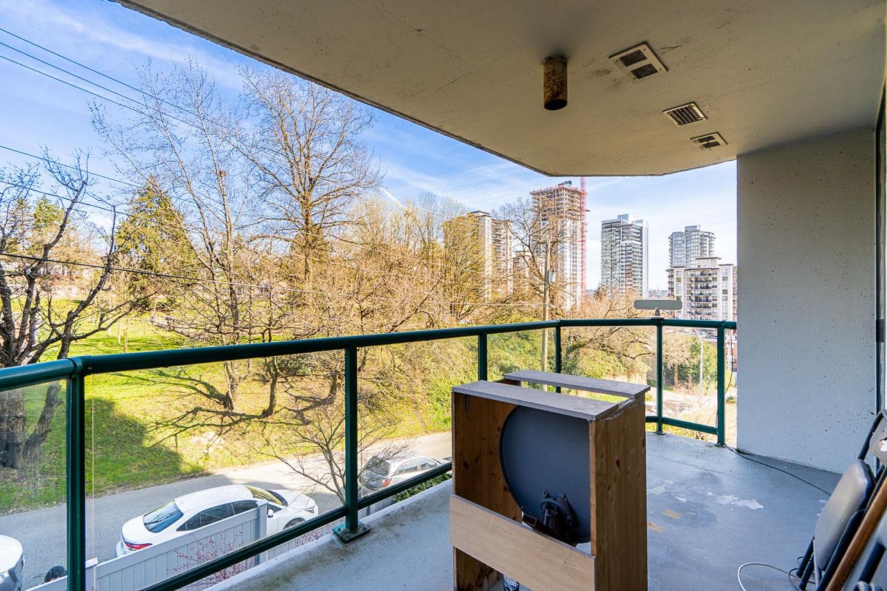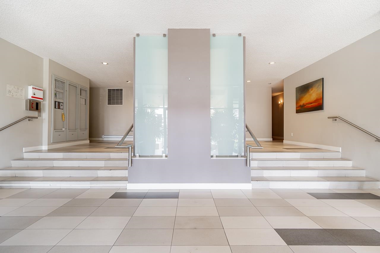Welcome to this well-maintained, Bosa-built concrete tower in Uptown New Westminster, just steps to shopping and Sky Train! This spacious, nearly 1,000 square foot 2 bedroom, 1 bathroom home overlooks tranquil greenery and a nearby park, offering a quiet and private outlook. The thoughtfully designed layout features a large living and dining area, while the kitchen offers enough space for an eating nook. The primary bedroom is well-sized, complete with a walk-through closet and cheater ensuite. Floor-to-cei...