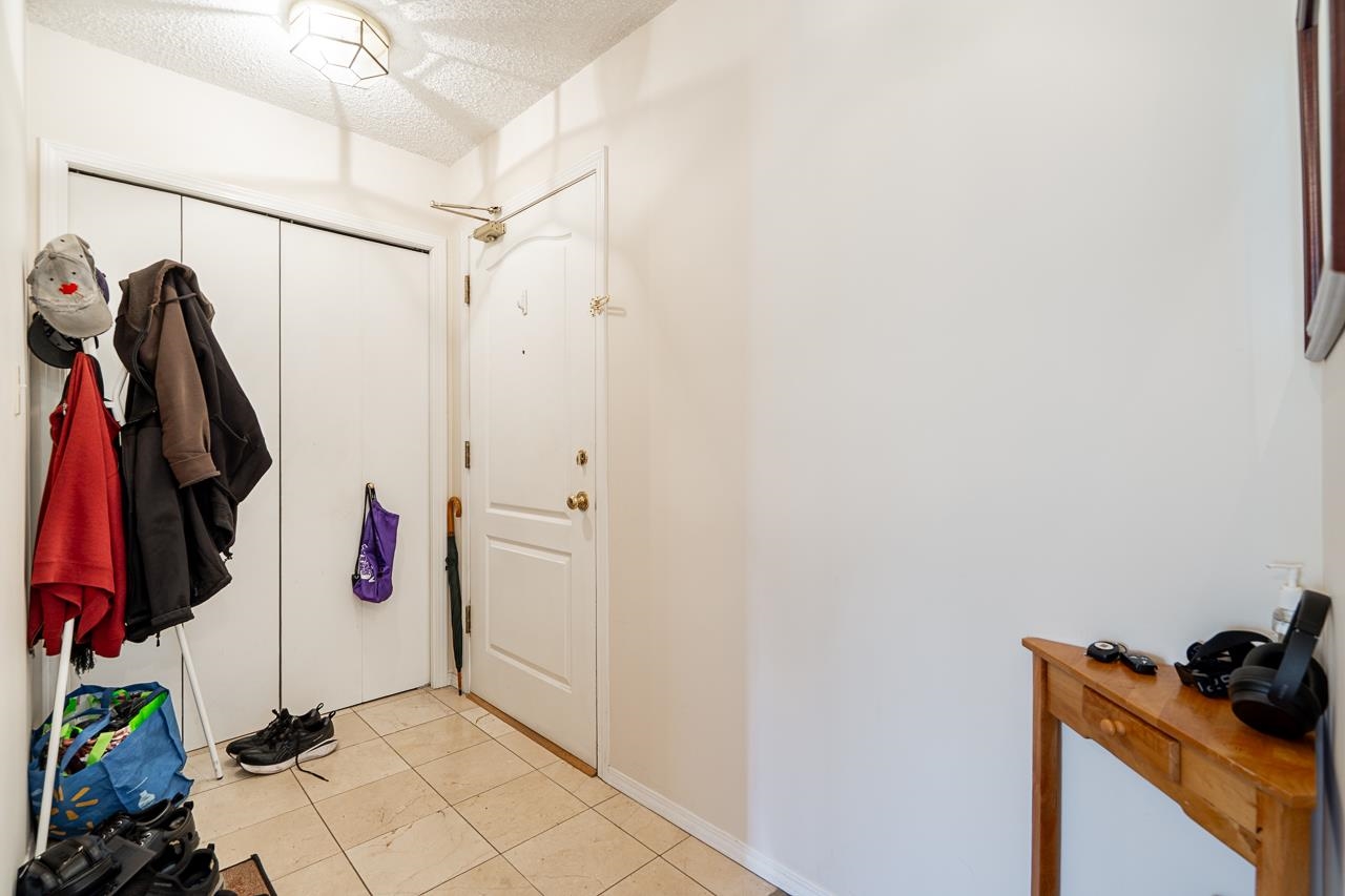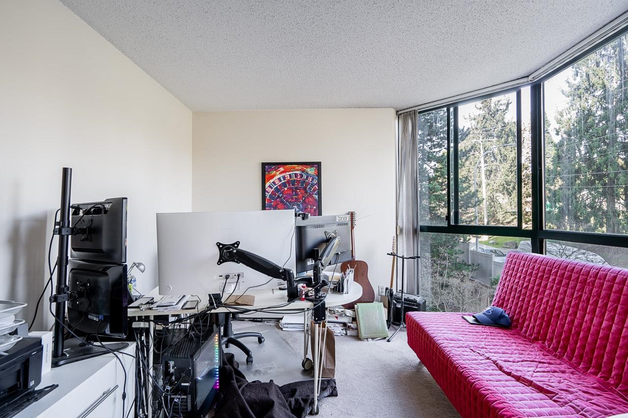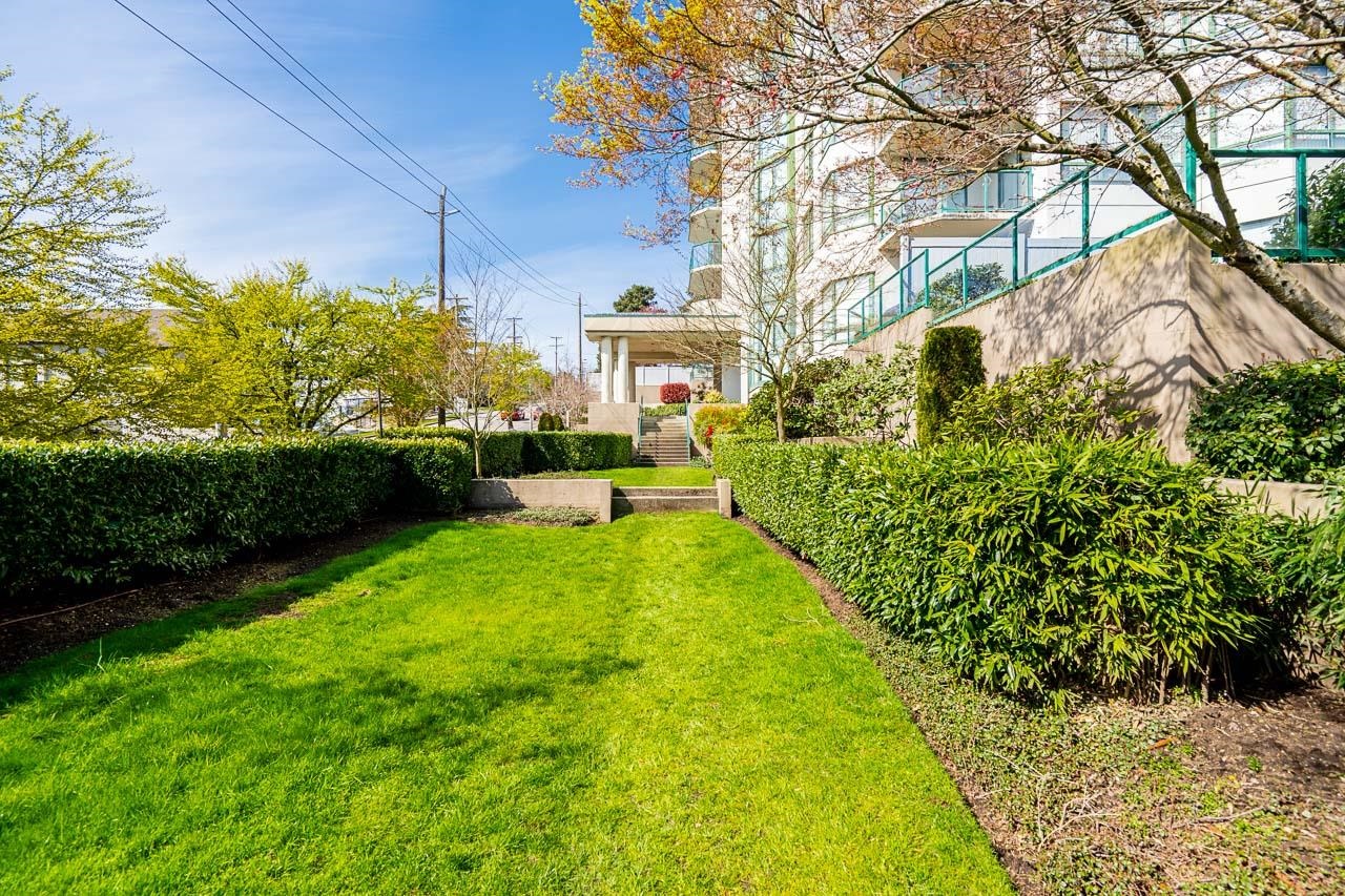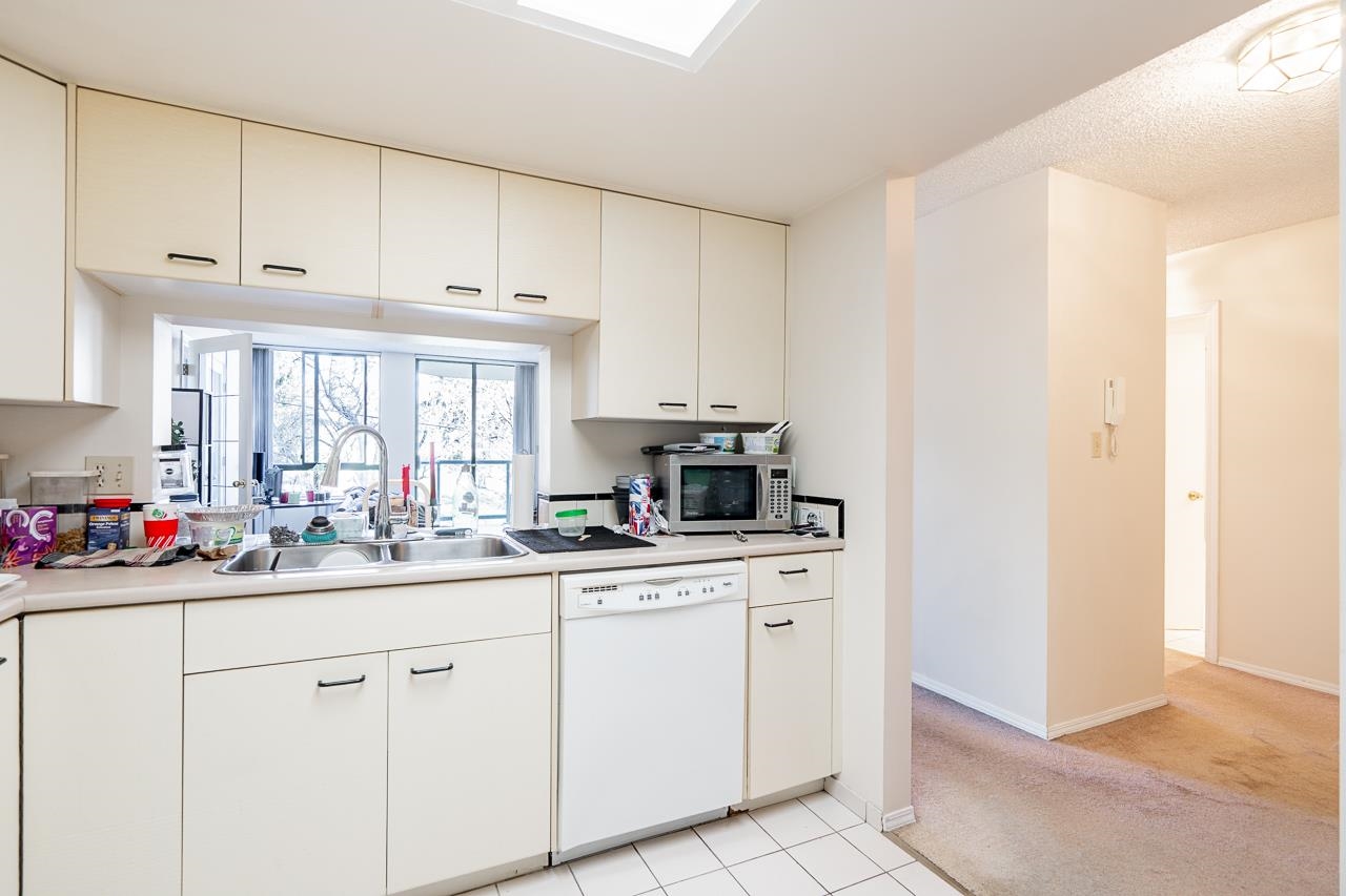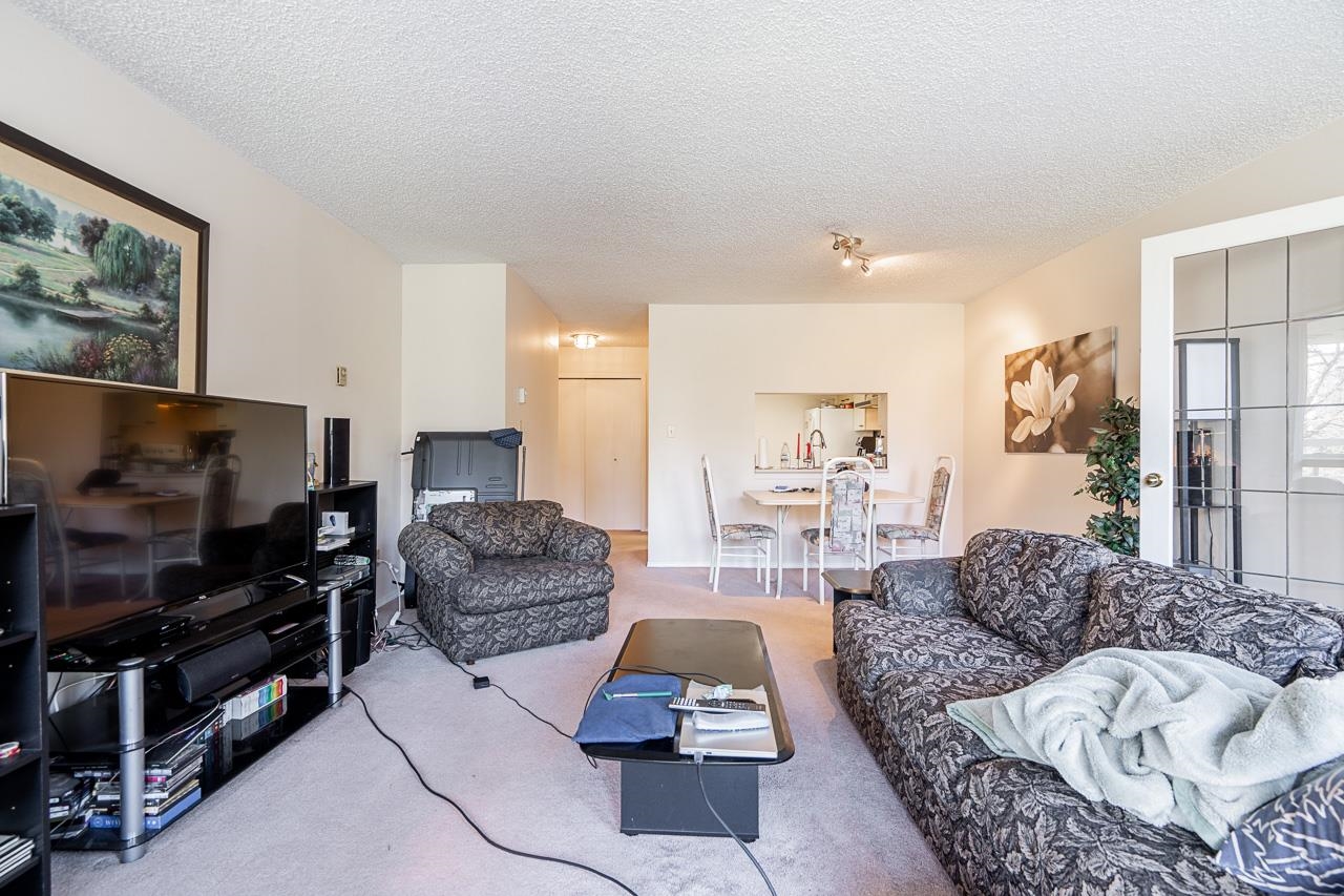 Welcome to this well-maintained, Bosa-built concrete tower in Uptown New Westminster, just steps to shopping and Sky Train! This spacious, nearly 1,000 square foot 2 bedroom, 1 bathroom home overlooks tranquil greenery and a nearby park, offering a quiet and private outlook. The thoughtfully designed layout features a large living and dining area, while the kitchen offers enough space for an eating nook. The primary bedroom is well-sized, complete with a walk-through closet and cheater ensuite. Floor-to-cei...