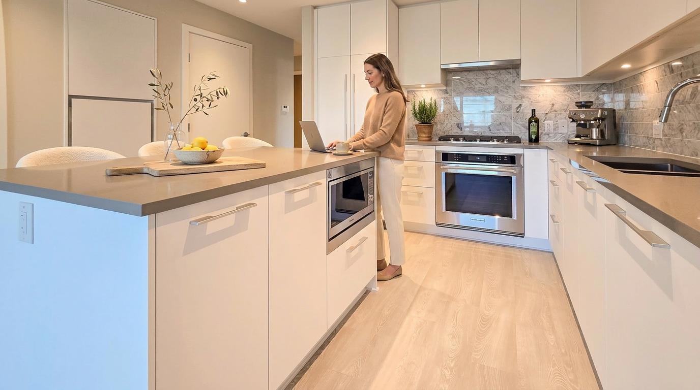 Brand-new and ready for you to move in! Welcome to this bright 3-bedroom corner unit at The Lennox by Polygon in the heart of Central Lonsdale, one of North Vancouver’s most walkable neighbourhoods. This beautifully designed home offers a gourmet kitchen with premium KitchenAid appliances, a functional open layout, EV parking, and a storage locker. Enjoy the outdoor patio, perfect for gatherings and BBQs, along with building amenities that include a modern gym, dog wash area, bike storage, and heat pump A/C...