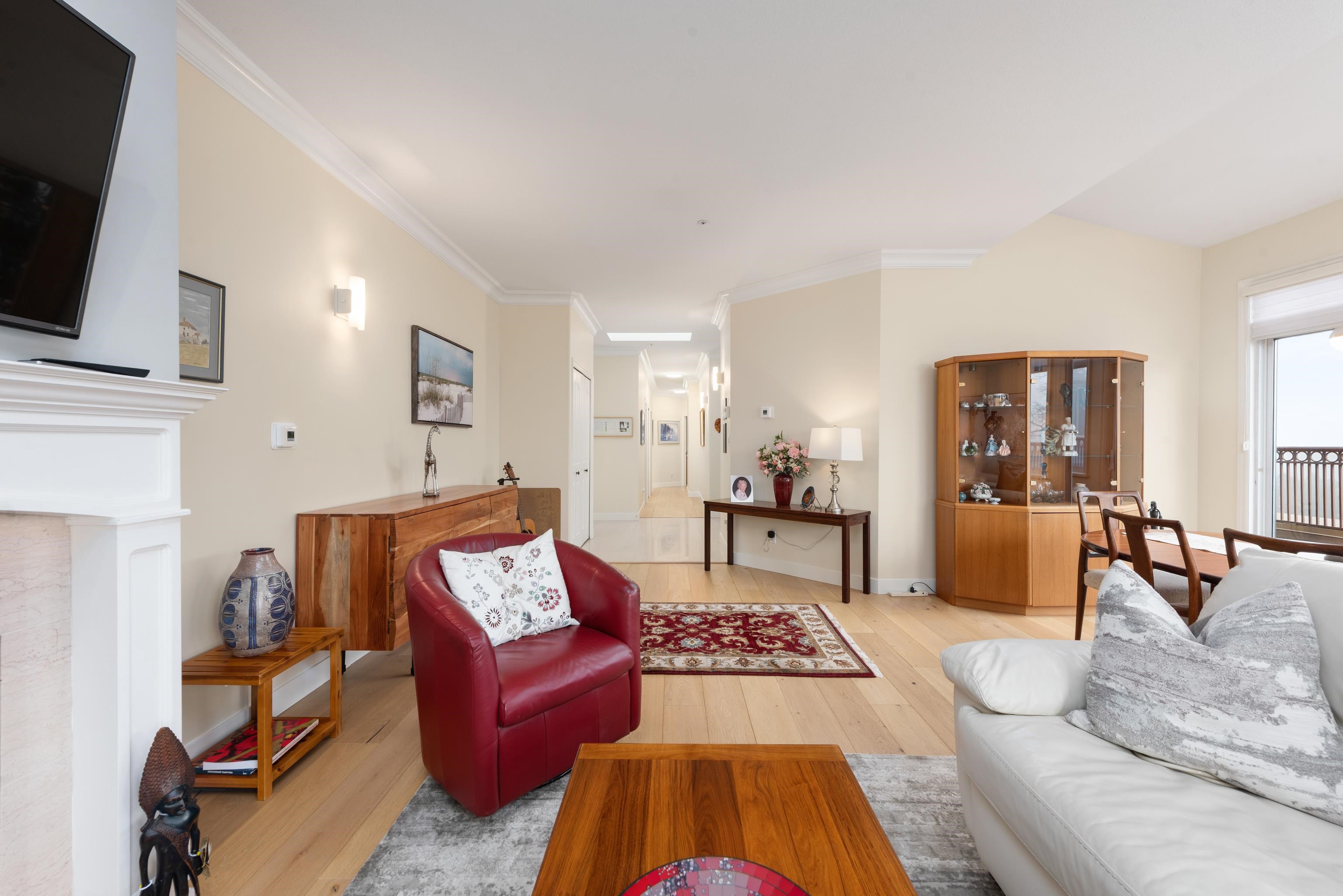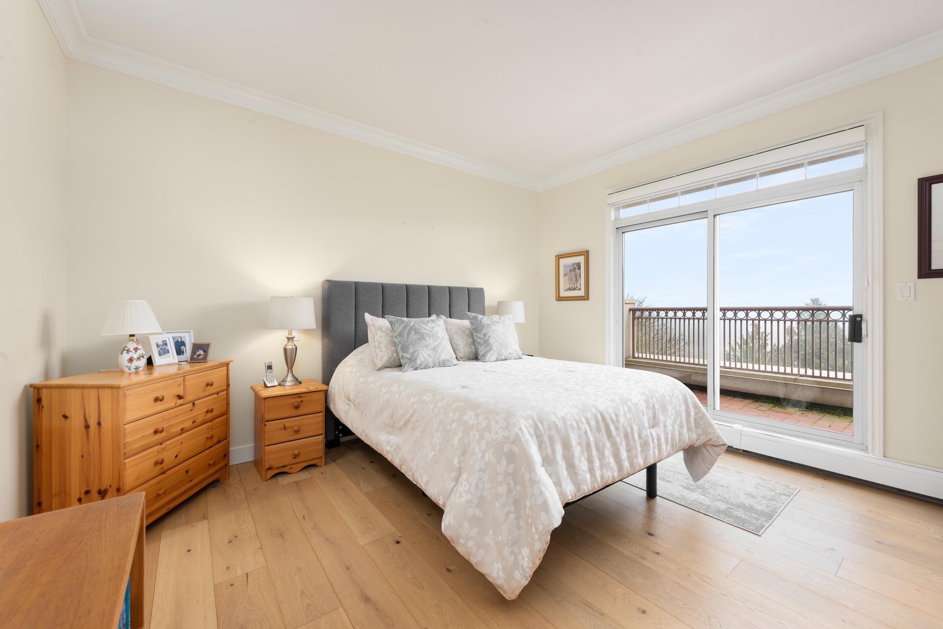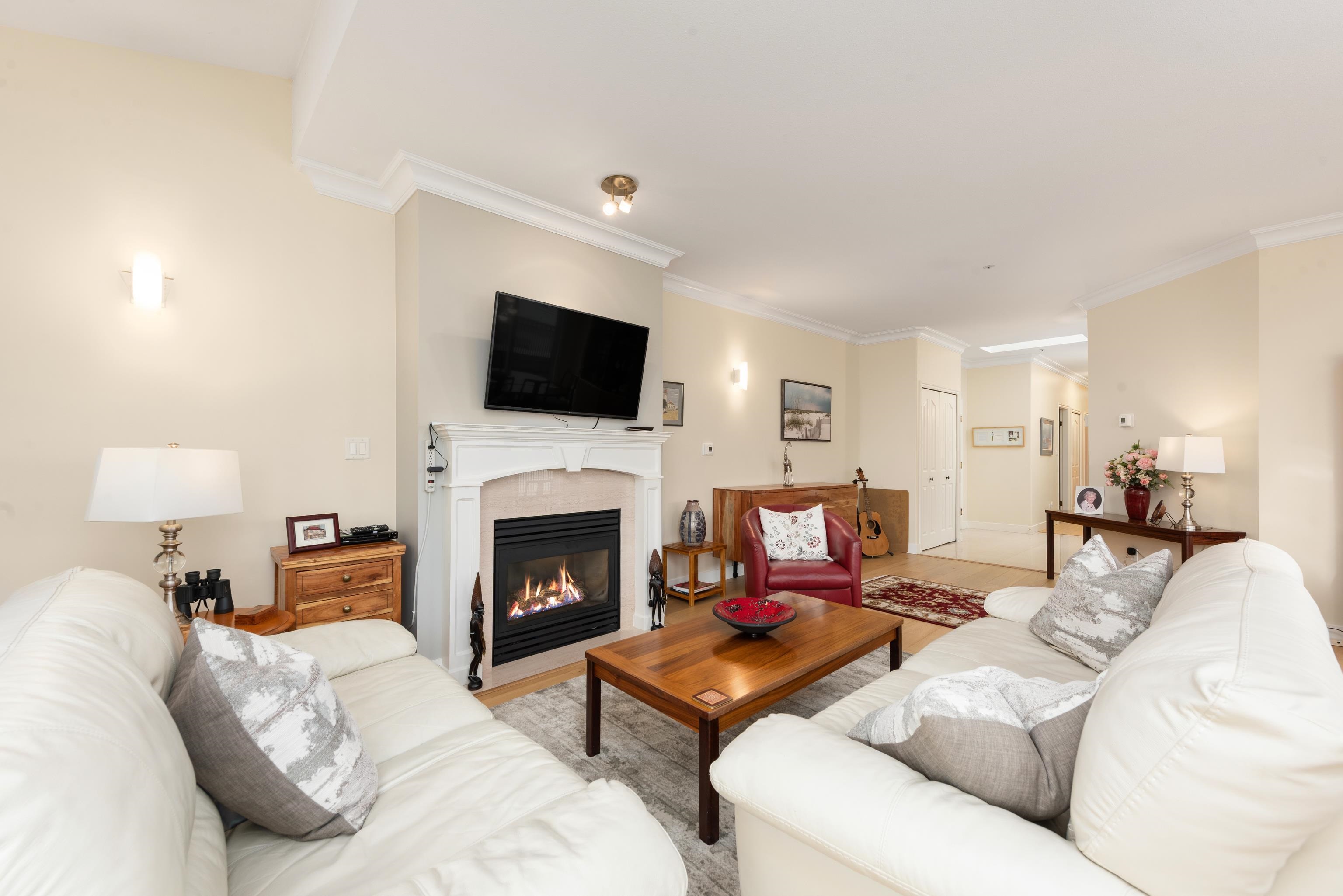 Rarely available top-floor corner penthouse in Tsawwassen’s desirable Beach Grove community. This bright 2 bedroom, 2 bathroom home offers approximately 1,535 sq ft of well-designed living space with southeast exposure, capturing abundant natural light along with mountain, water, and golf course views. High ceilings and large windows create an open, airy feel throughout the main living areas. The one-level layout offers excellent flow, privacy, and quiet with no neighbours above. Features include new in-sui...