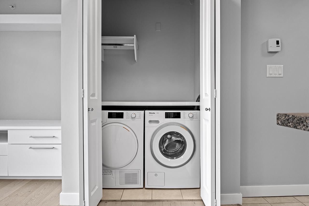Welcome to VIRTU – a premium CONCRETE building in Fairview! This bright 626 sqft, 1-bed, 1-bath home is move-in ready and features an open layout, private balcony, plus premium upgrades including a Miele washer/dryer and dishwasher. HUGE BUYER BONUS: A massive building exterior renewal was recently completed and is fully paid for, meaning you get a worry-free building with no levy stress! Recent strata updates also include new security cameras and fob systems. Virtu is an exceptionally managed, strictly non...