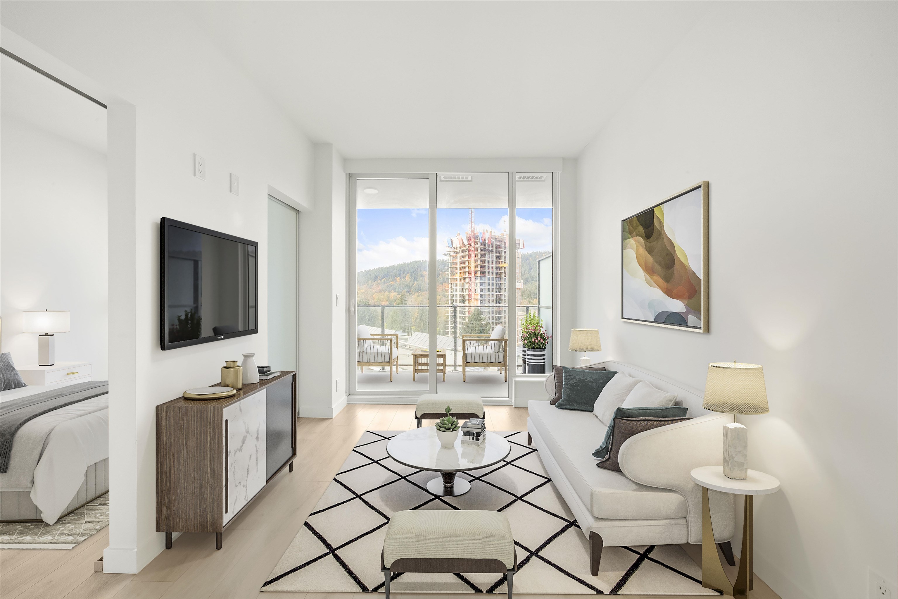 567 Clarke + Como, Coquitlam's tallest & most coveted luxury tower! The most desirable 1 bedroom floorplan spanning over 550 sq/ft of indoor/outdoor living. Enjoy an open & efficient space with/ the quietest exposure, spa-like bath, gourmet kitchen & large balcony perfect for morning coffees, BBQs & entertaining. Appointed with AC, floor-to-ceiling windows allowing an abundance of natural light & stunning views from every room! Includes: PARKING + STORAGE! 3 Levels of World Class Amenities: Basketball Court...