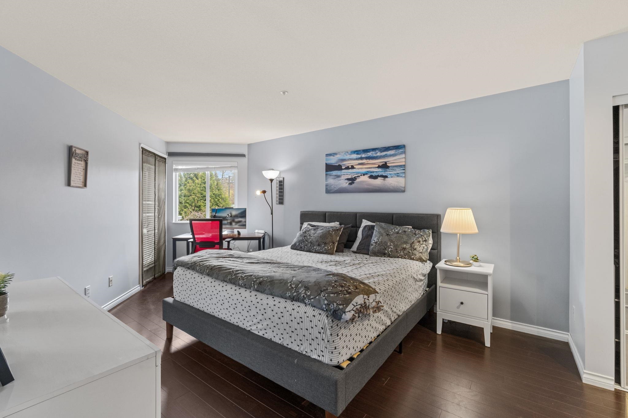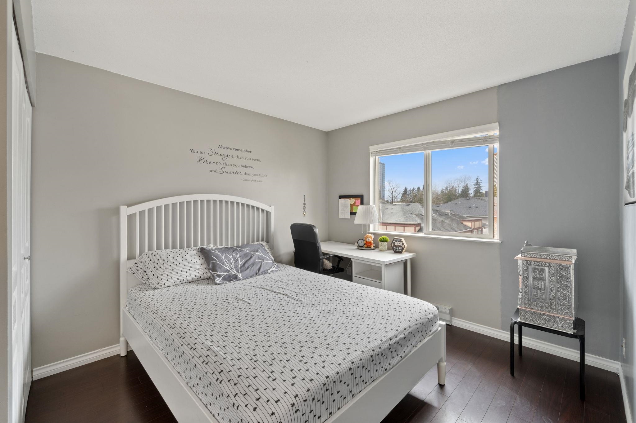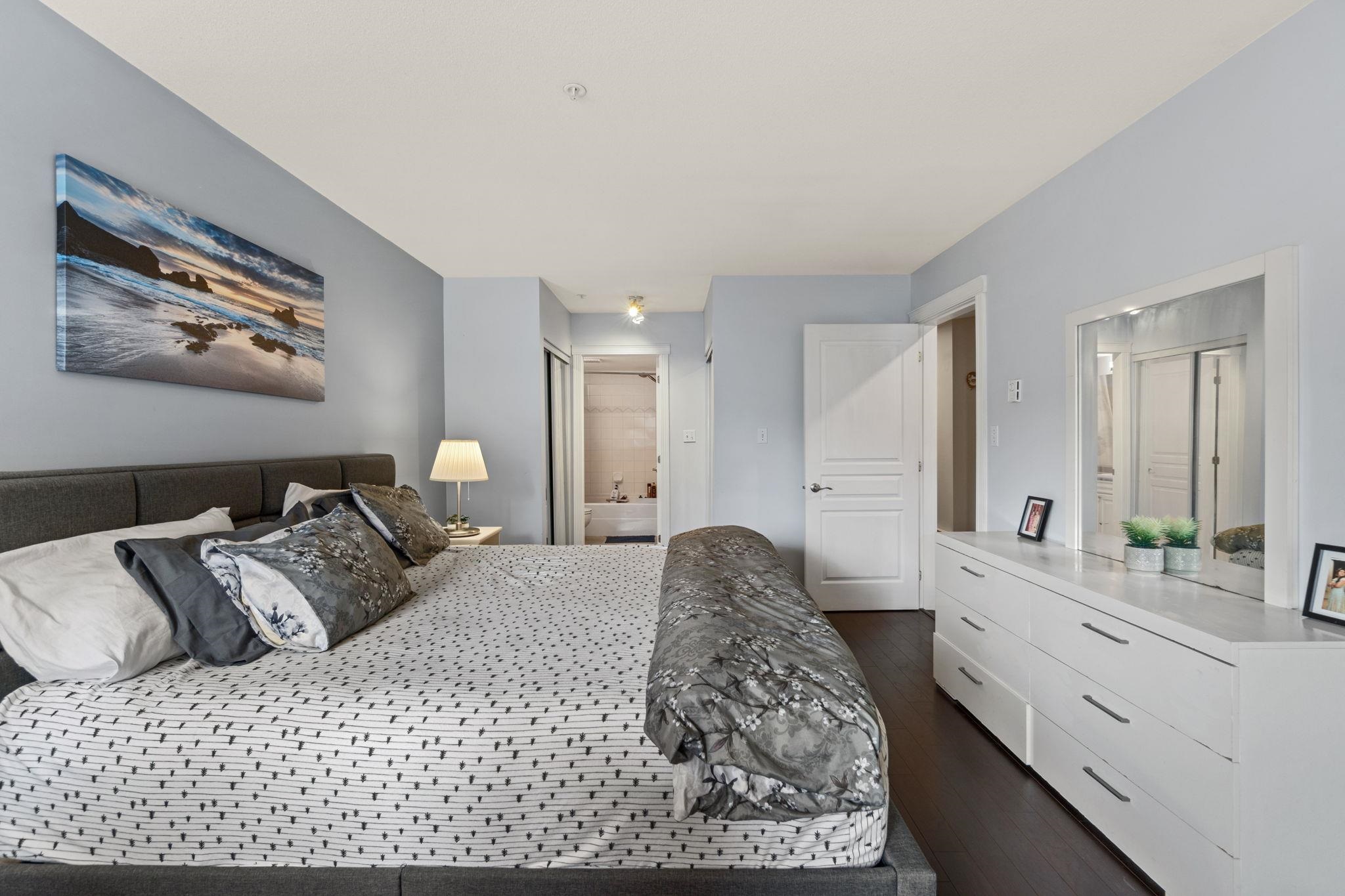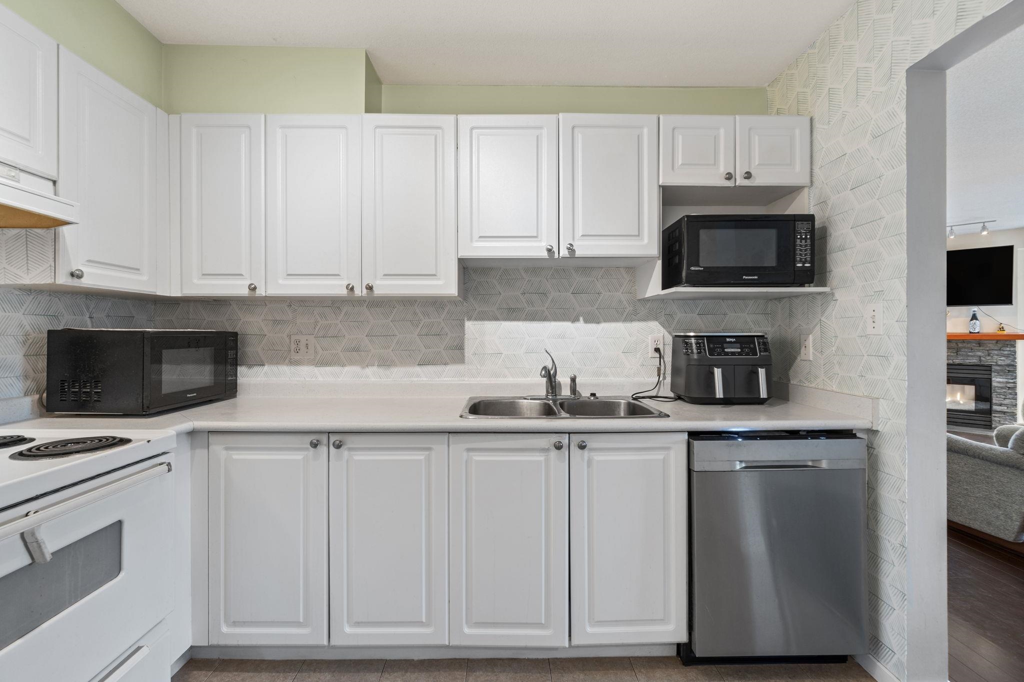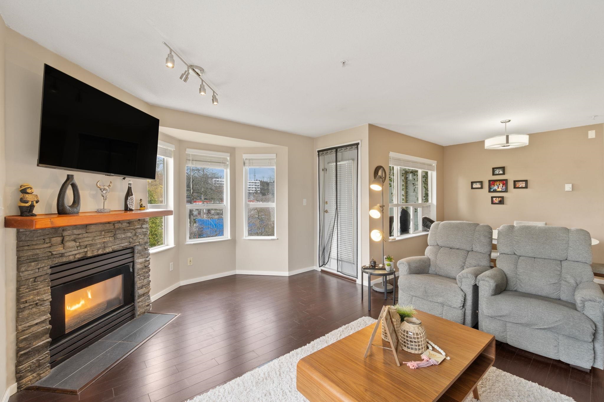 Top floor corner unit in a well-maintained, rainscreened building with low strata fees. Bright and spacious, offering over 1,000 sq ft with an excellent open-concept layout and large windows throughout. Features 2 large bedrooms on opposite sides for added privacy, 2 bathrooms, a generous kitchen, and a comfortable living area with gas fireplace. Enjoy your private balcony and abundant natural light. Includes 2 parking stalls, storage locker, and in-suite laundry. Unbeatable location just steps to King Geor...