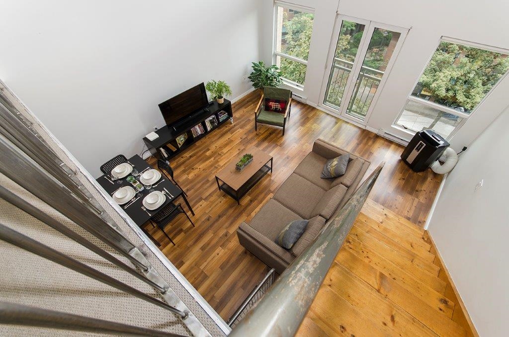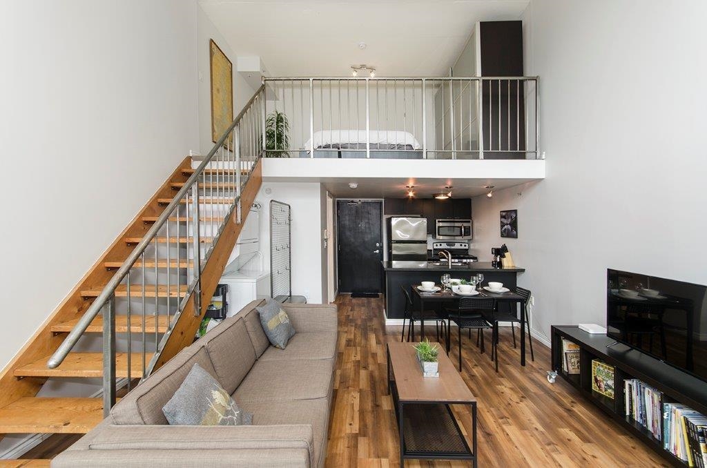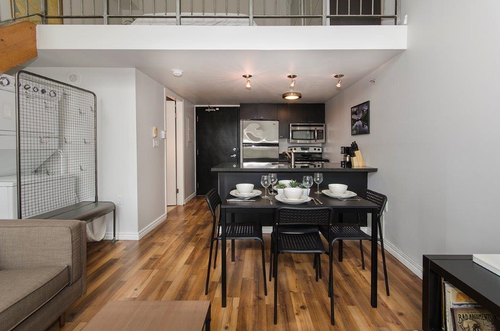 Welcome to urban sophistication at Carrall Station in one of Vancouver’s most historic neighbourhoods! This striking 2-level loft in the heart of Gastown offers the perfect blend of heritage charm & modern style. Soaring 16 ft ceilings & expansive windows flood the space with natural light, creating an airy, open atmosphere that’s dramatic & inviting. Main level features a contemporary kitchen & spacious living area that opens to a Juliette balcony. Upstairs, the open mezzanine bdrm overlooks the living spa...