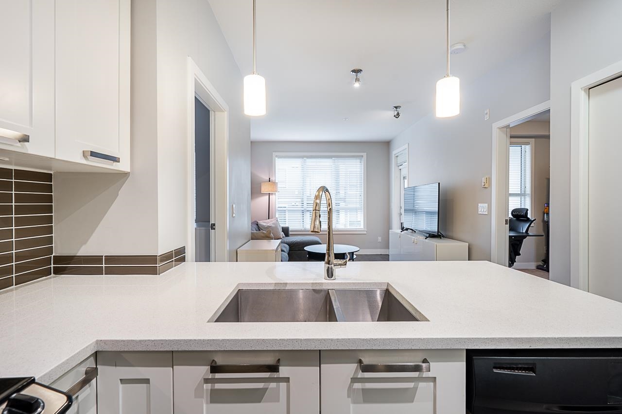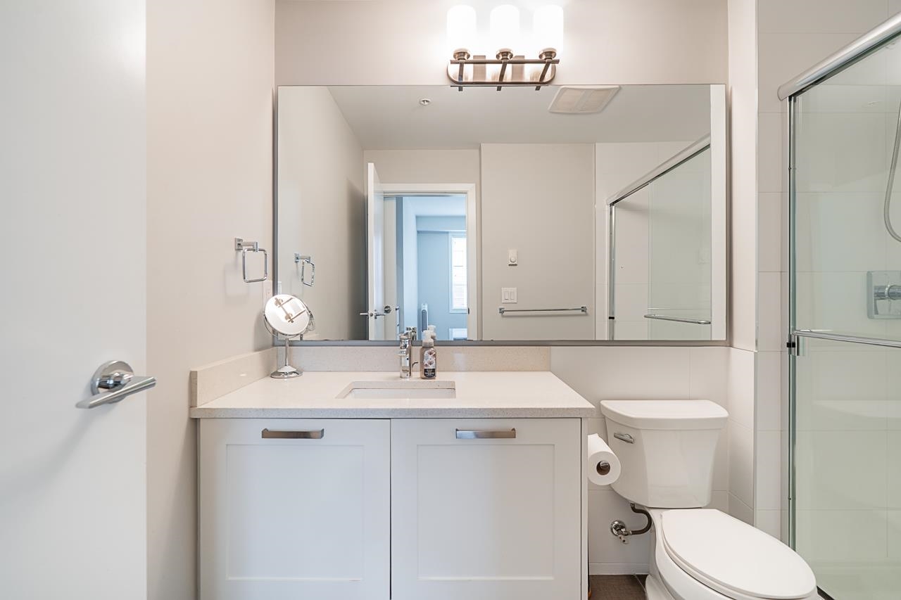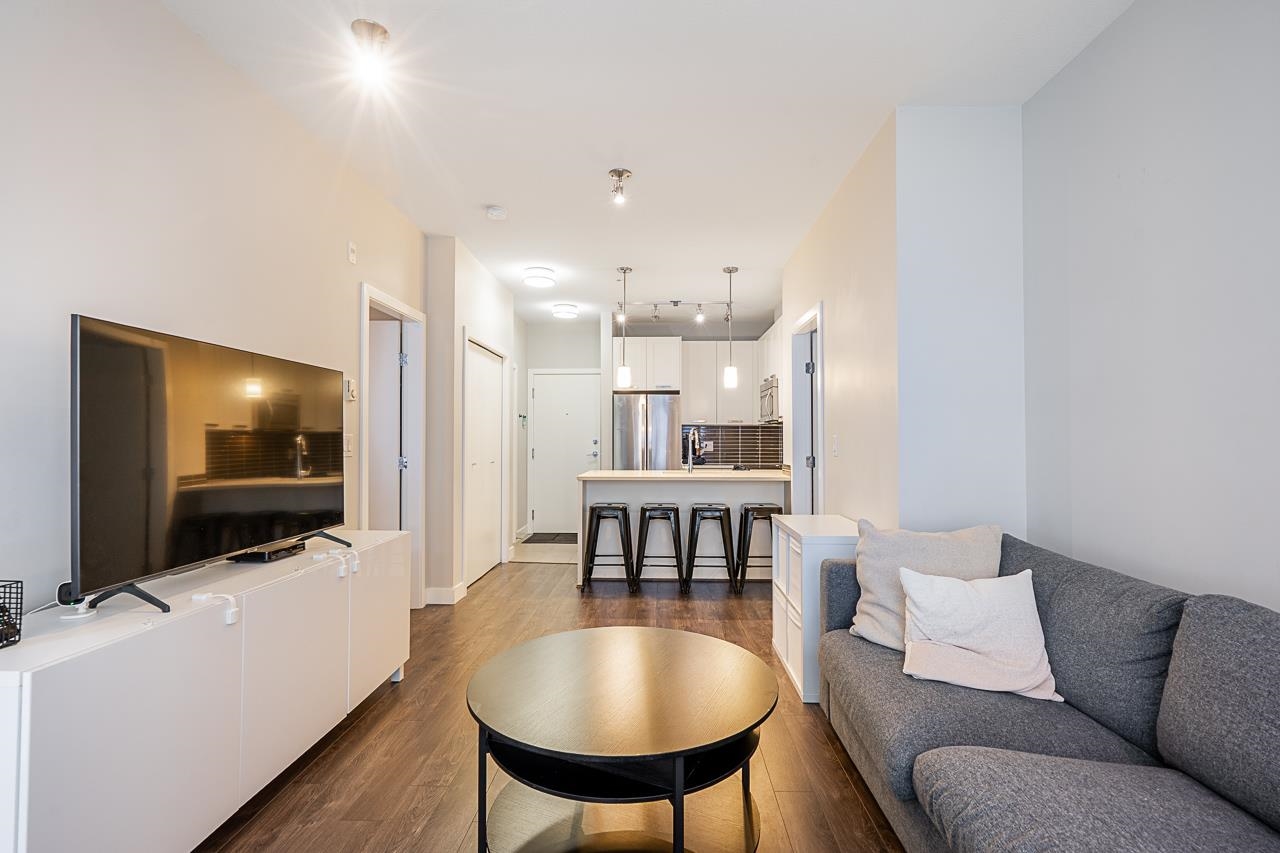 Welcome to G3 Residence — a beautifully maintained, bright corner 2-bed, 2-bath home on the 2nd floor with 9-ft ceilings and expansive windows that flood the space with natural light. The thoughtful layout places the primary bedroom with ensuite and walk-in closet on one side and the second bedroom on the opposite side for privacy. Enjoy an open gourmet kitchen with quartz counters, stainless steel appliances and shaker cabinetry, in-suite laundry, a covered deck, and one parking stall. Relax in the serene ...