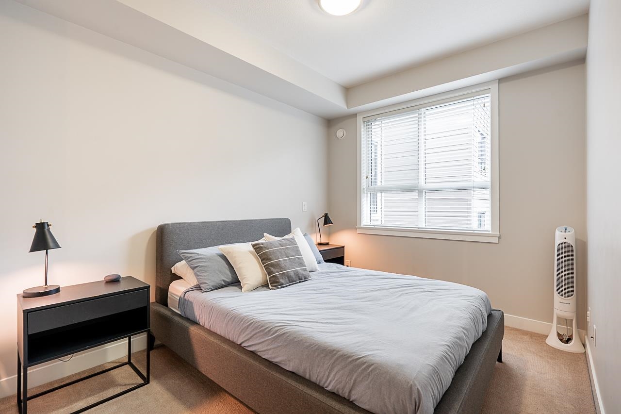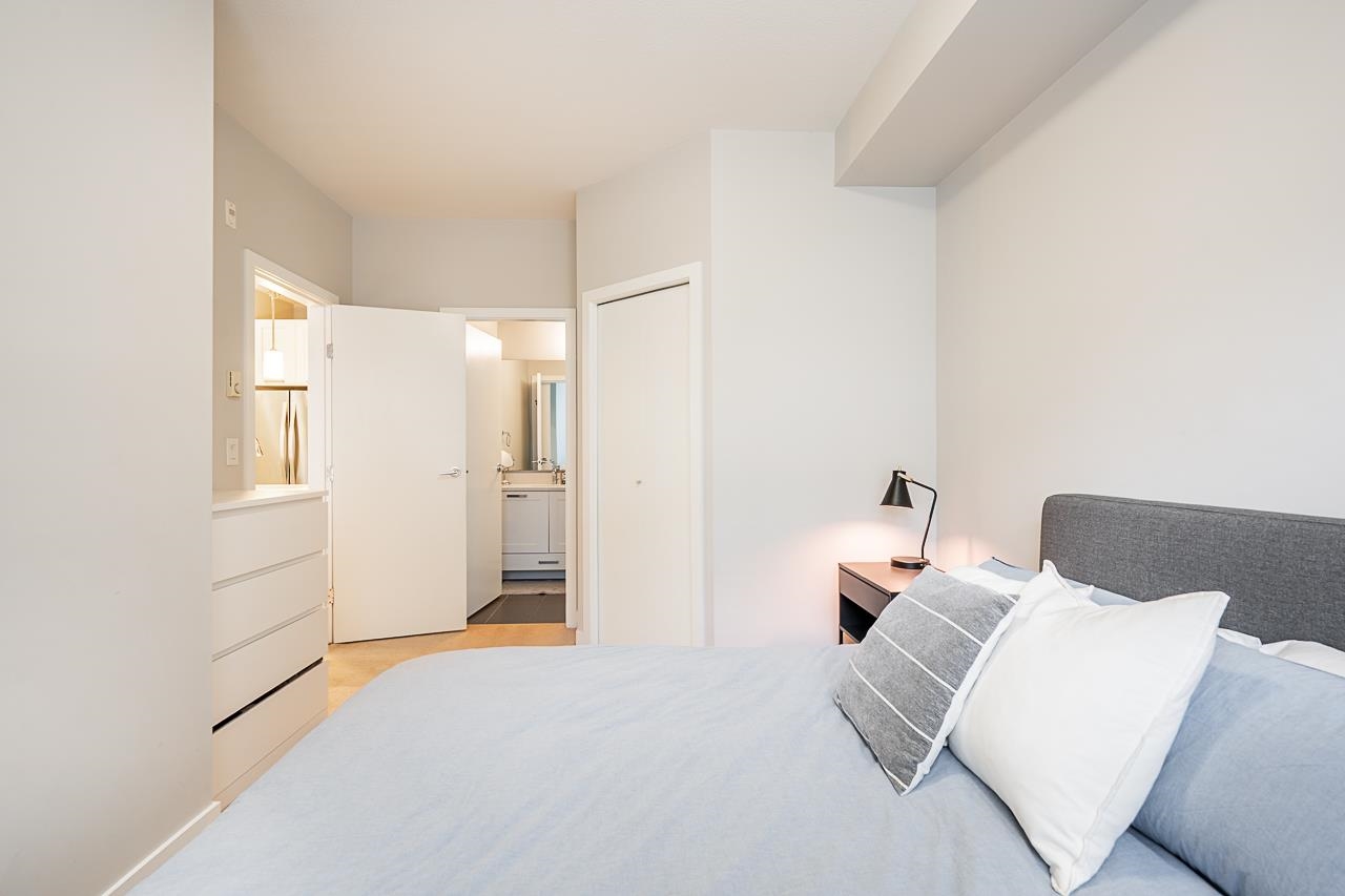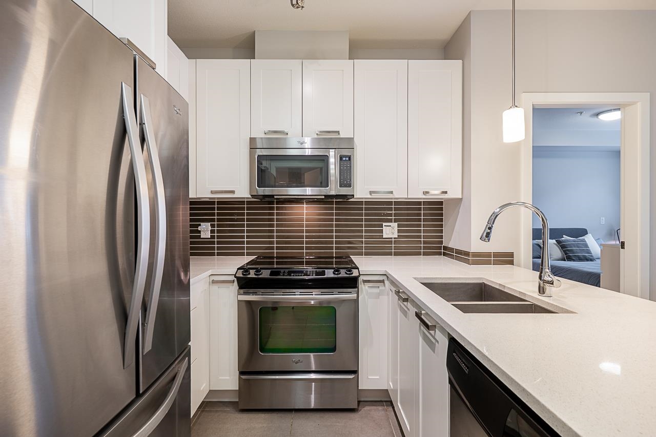 Welcome to G3 Residence — a beautifully maintained, bright corner 2-bed, 2-bath home on the 2nd floor with 9-ft ceilings and expansive windows that flood the space with natural light. The thoughtful layout places the primary bedroom with ensuite and walk-in closet on one side and the second bedroom on the opposite side for privacy. Enjoy an open gourmet kitchen with quartz counters, stainless steel appliances and shaker cabinetry, in-suite laundry, a covered deck, and one parking stall. Relax in the serene ...