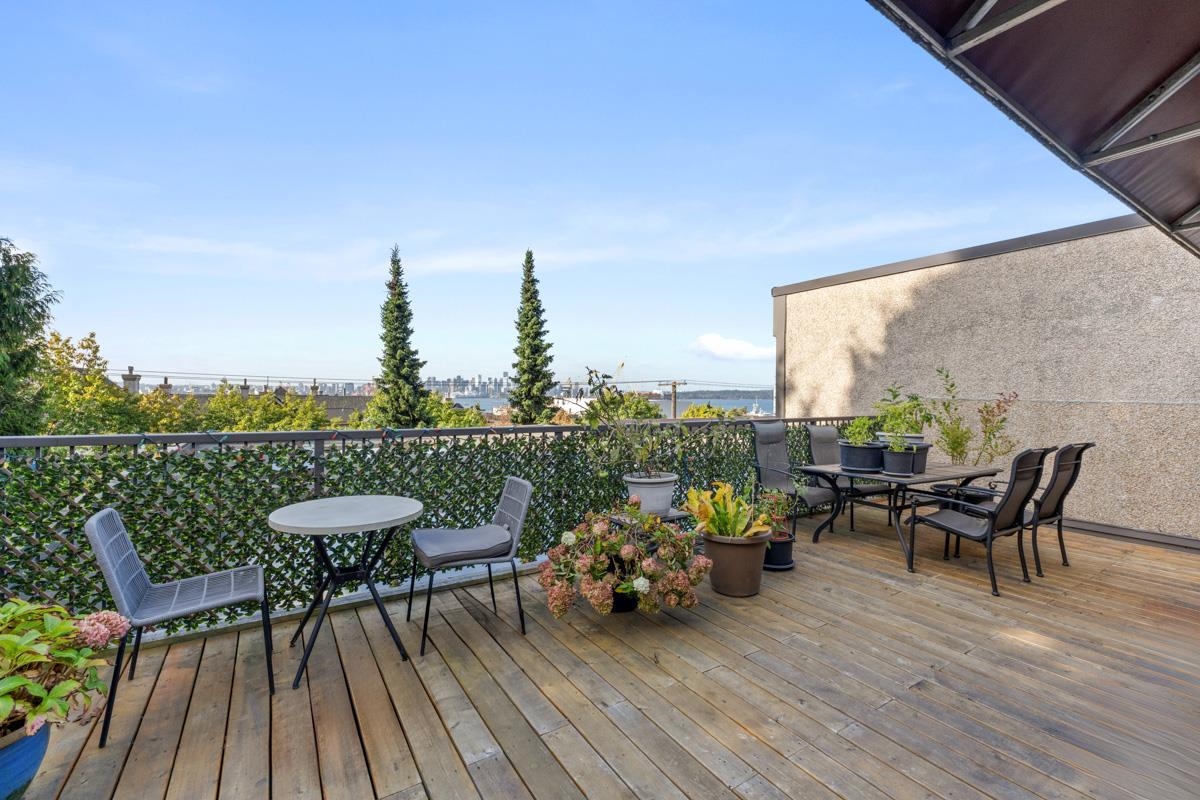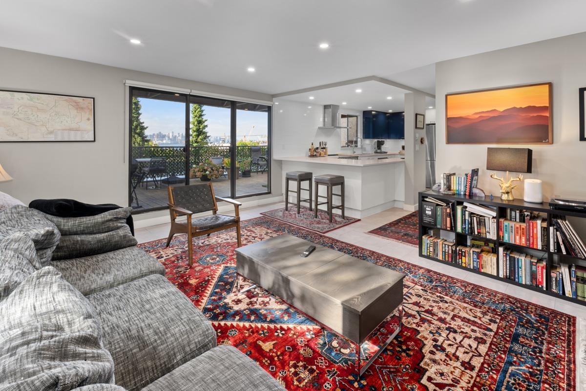 This well-maintained, renovated two-bedroom, one-bathroom residence offers 837 square feet of comfortable living space on the top floor of a quaint building in the beautiful Lower Lonsdale area! The suite benefits from enhanced privacy (no shared walls), abundant natural light, and sweeping views of the neighbourhood. The interior features a bright and spacious living and kitchen area with large windows, a spacious, private balcony for enjoying the outlook, and a thoughtfully designed layout that balances c...