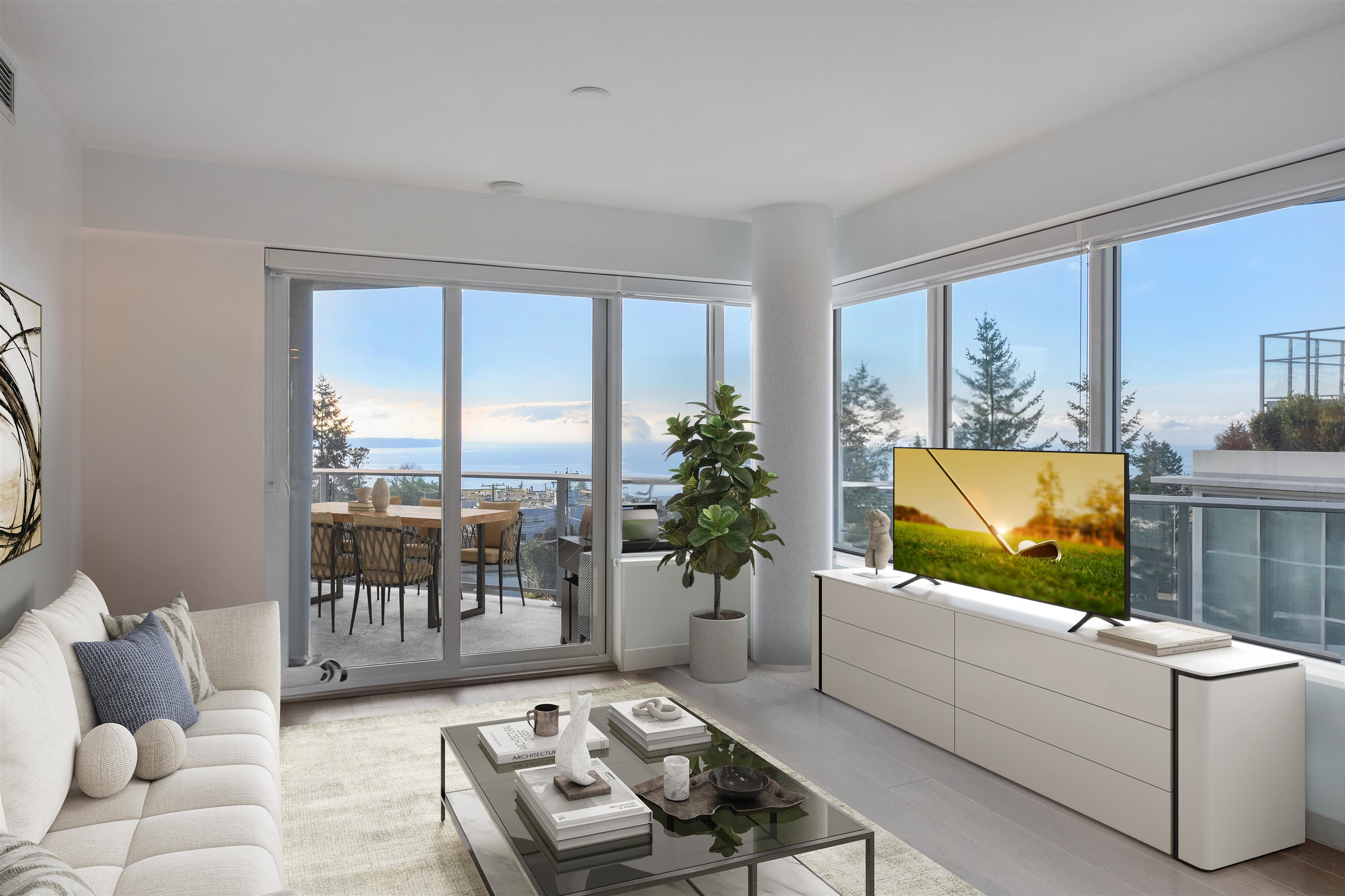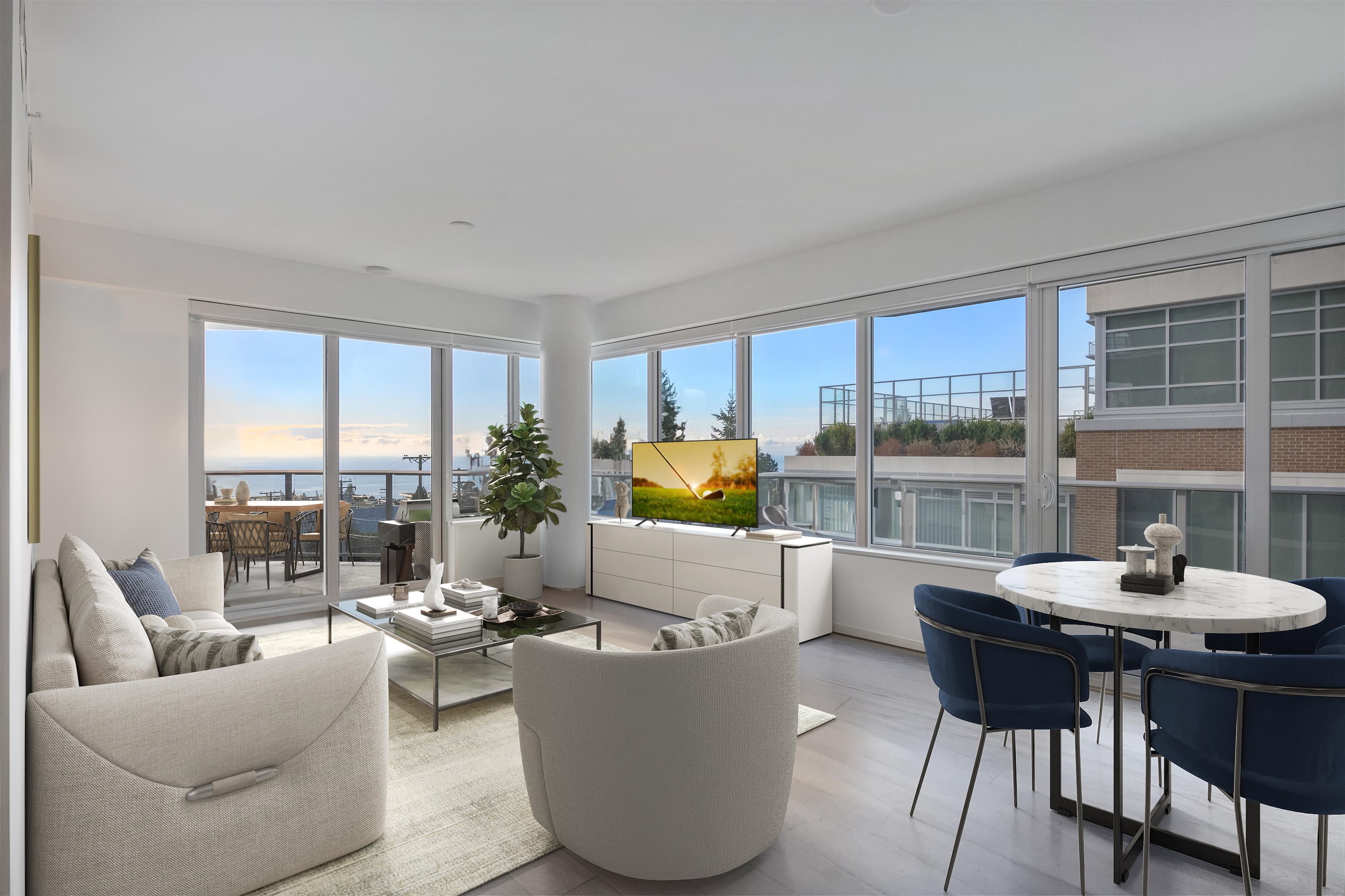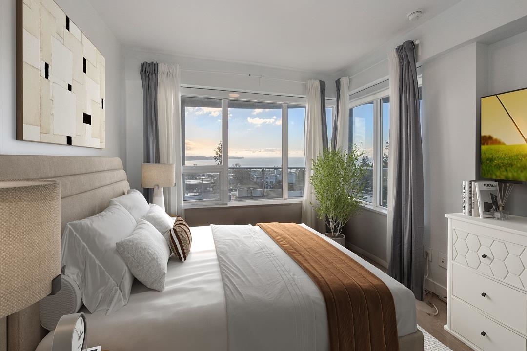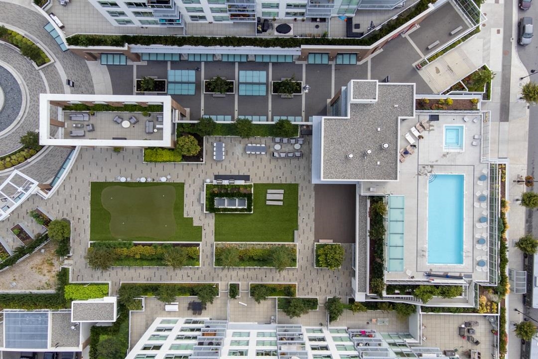 Southwest corner ocean view unit, concrete condo 1,113 SF located in Miramar by BOSA built in 2020. 2 bedrooms/2 full bath + 374 SF wraparound balcony. Kitchen w/ Island, en-suite radiant flr heating, hardwd flrs, stone surfaces + Nest thermostat. A/C heat pump, HRV. 2 parking stalls #904 & #905, EV available/bike room/storage locker: #163. Amenities: Dual Elevators ,Concierge service , 3rd Flr - Executive gym & stretching area with access out to lovely spacious 15,000 SF outdoor patios with BBQ's, furnishe...