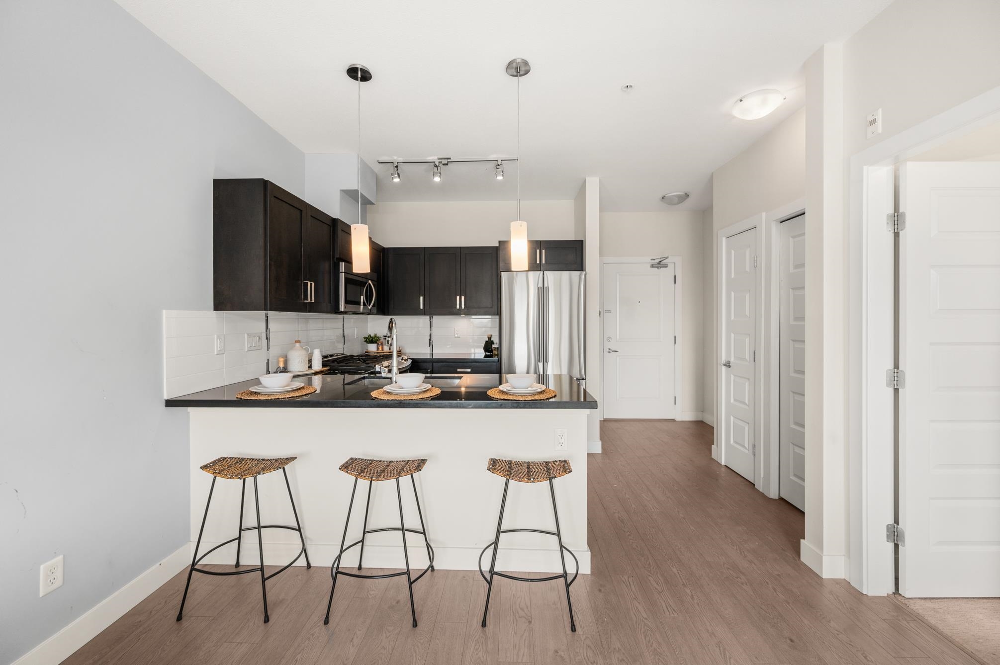 Welcome to Varsity—modern living in the heart of Langley! This bright & inviting 1 bed, 1 bath condo on the top floor offers open-concept living space featuring gourmet kitchen with granite countertops, S/S appliances & gas stove. Spacious bedroom has walk-through closet leading to full cheater ensuite, while high ceilings & large windows fill home with natural light. Near Willowbrook Shopping Centre, Costco, Cactus Club, Save-On-Foods, Shoppers Drug Mart, Kwantlen Polytechnic University (Langley Campus), p...