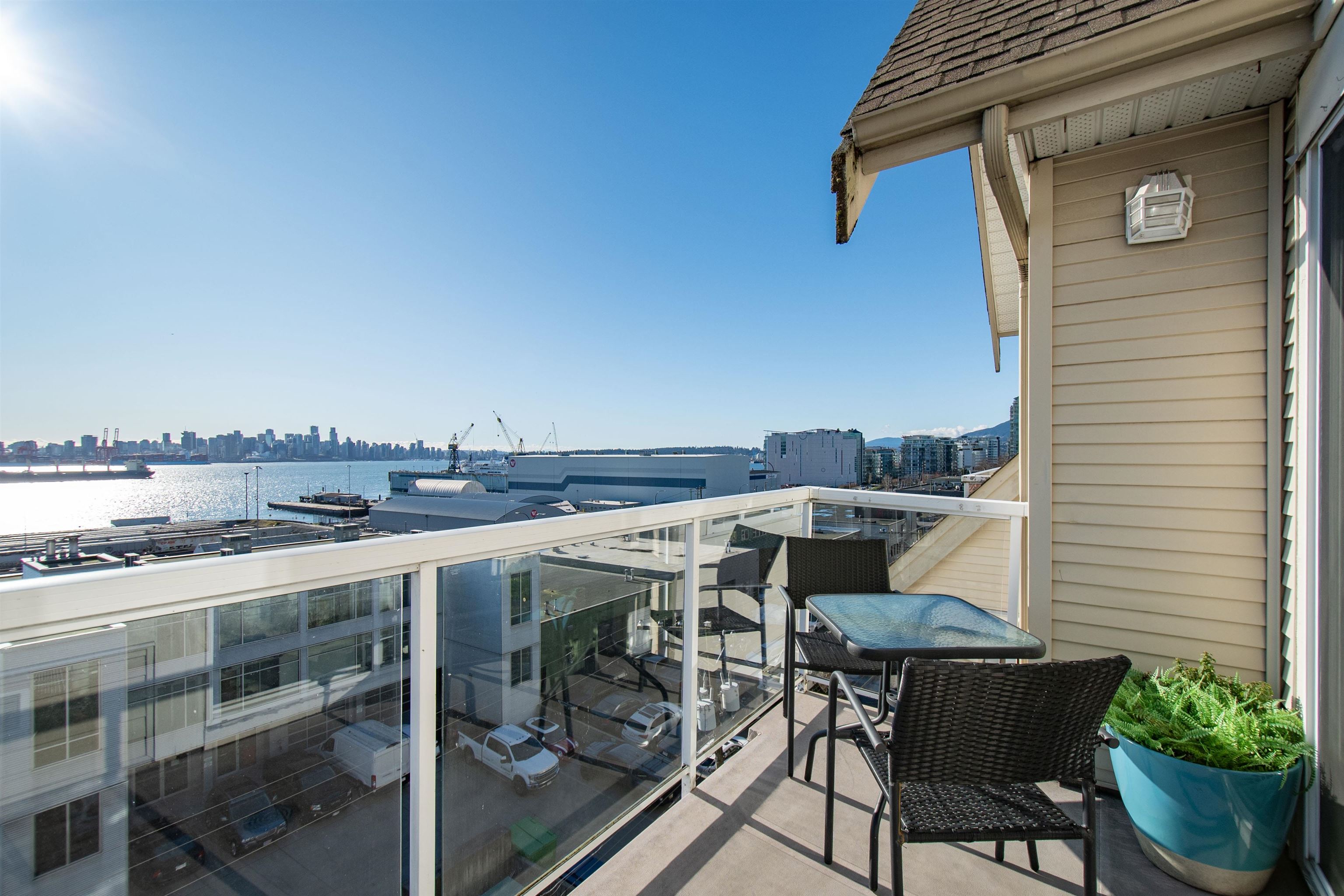 SUN-DRENCHED PENTHOUSE AT VISTA EAST! This top-floor gem is 650 sq ft of bright and airy space that oozes sunshine all day long. The vaulted ceilings give it that massive feel you only get on the top floor, all while overlooking the Burrard Inlet. This building was built to superior standards, featuring quality rain screen technology by Ledingham McAllister. Perfectly located right across from the kids' play park at Hammersley Park, you’re in the heart of the Lower Lonsdale walking lifestyle—minutes to the ...