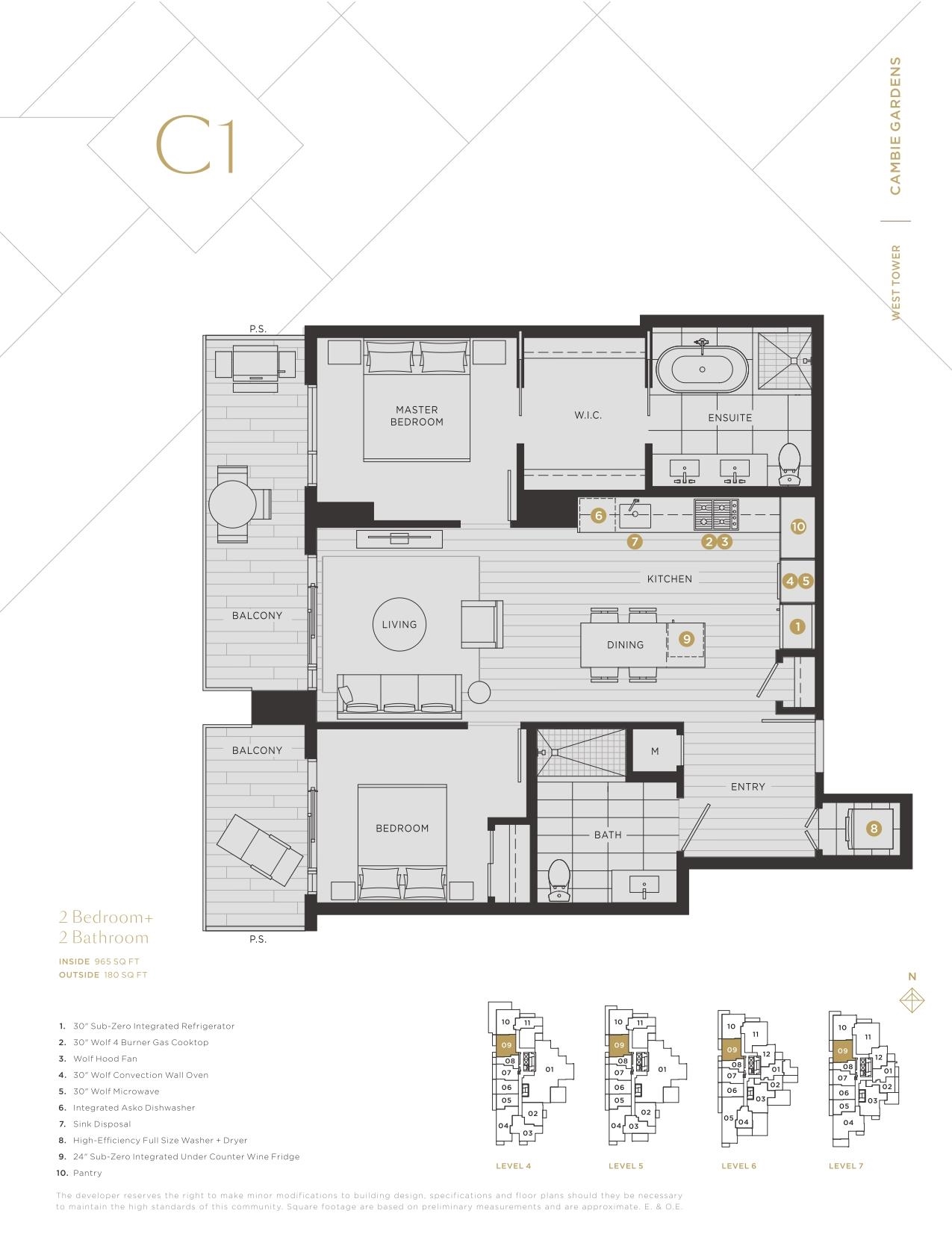This 945 SF spacious home is located at Cambie Gardens, Onni Group's masterplanned community on Vancouver's westside. Lavishly finished w/ engineered HW flooring, AC, automated lighting & roller shades. A gourmet kitchen includes natural stone countertops and a 30" Sub Zero + Wolf appliance package w/ integrated refrigerator and wine fridge. A spa-inspired bathroom boasts marble countertops, Nuheat flooring & oversized mirror w/ LED lighting. 1 Parking and storage locker included !!!