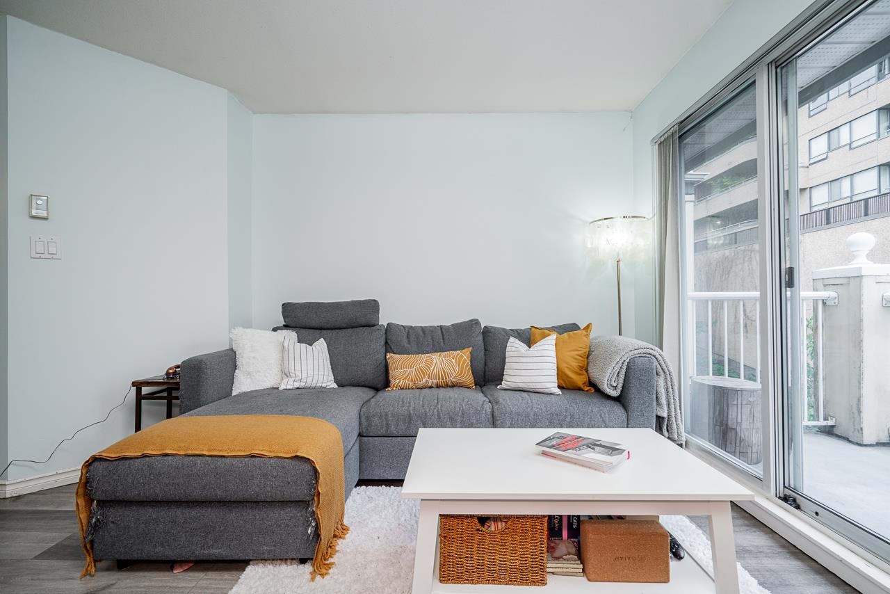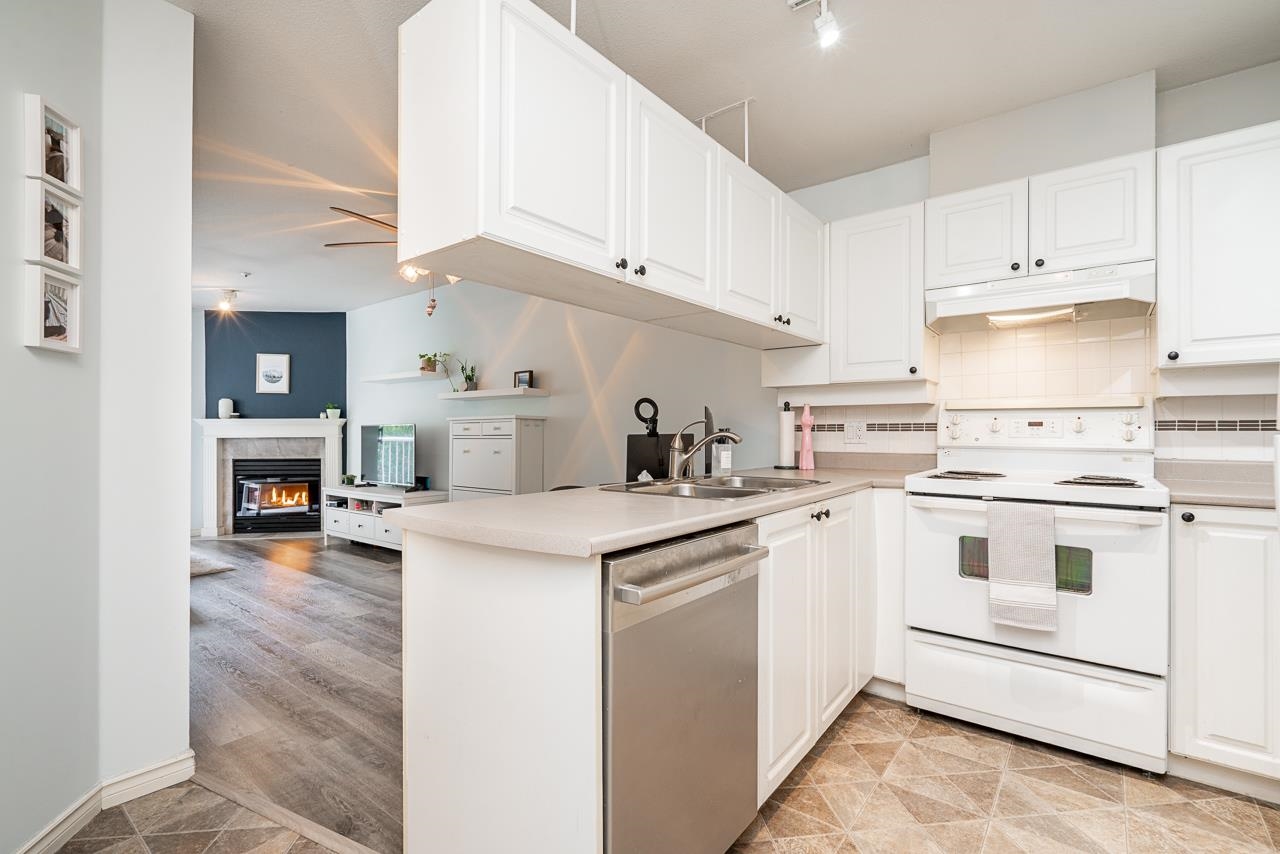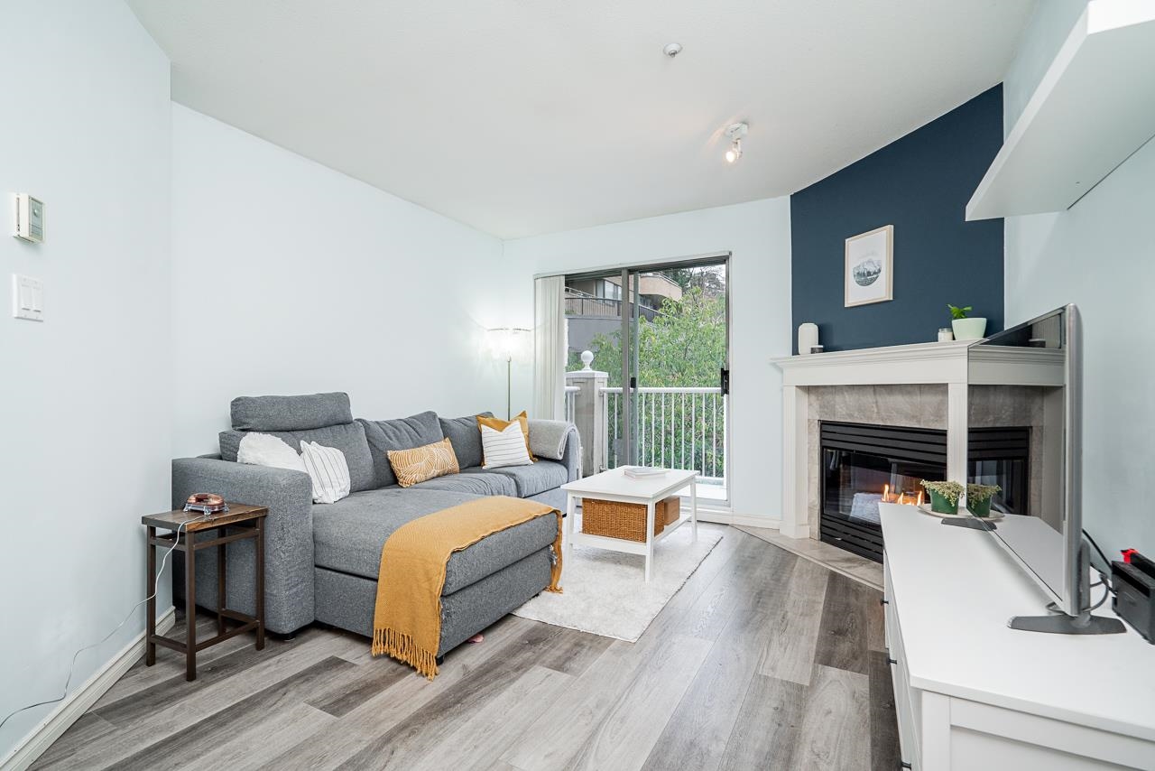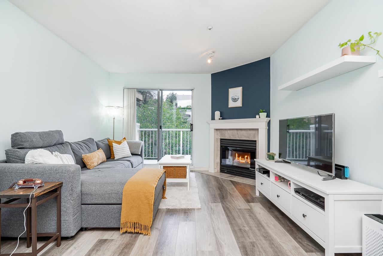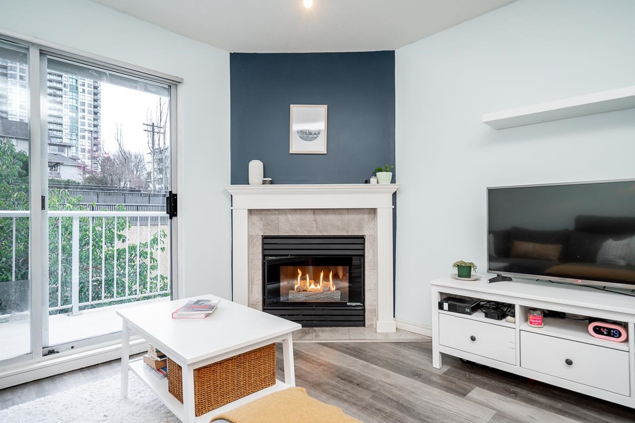 CUTE AND COZY ONE BEDROOM Condo at Queens Terrace. This home has been well maintained and offers an open plan living area with gas fireplace and hard surface flooring throughout. There's a generous sized patio off of the living room with east facing light and greenery. Laundry is directly off of the bathroom with an individual hot water tank and extra storage for linens. The complex is made up of three separate buildings that were rainscreened in 2003 and have new roofing in the past few years. You will lov...
