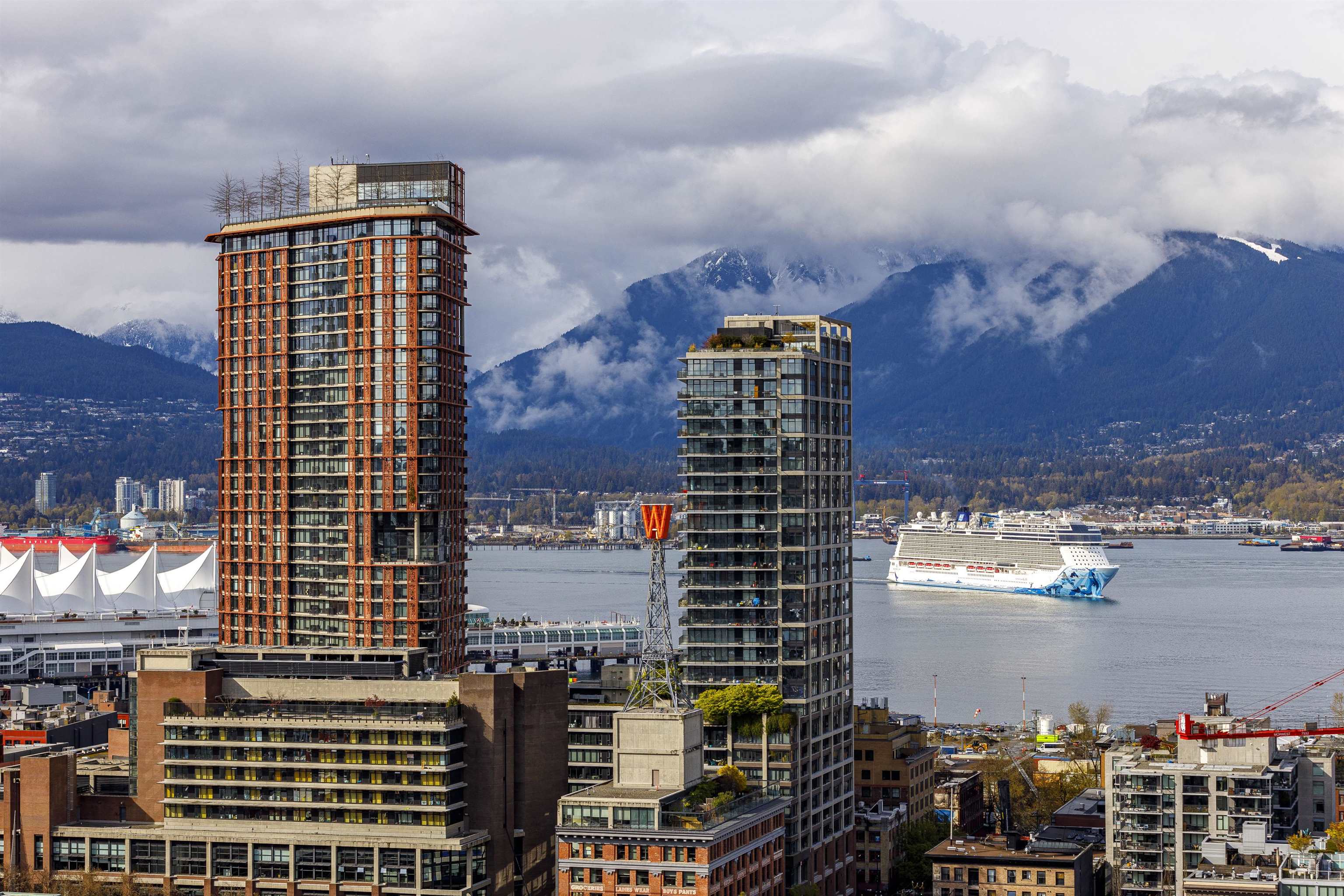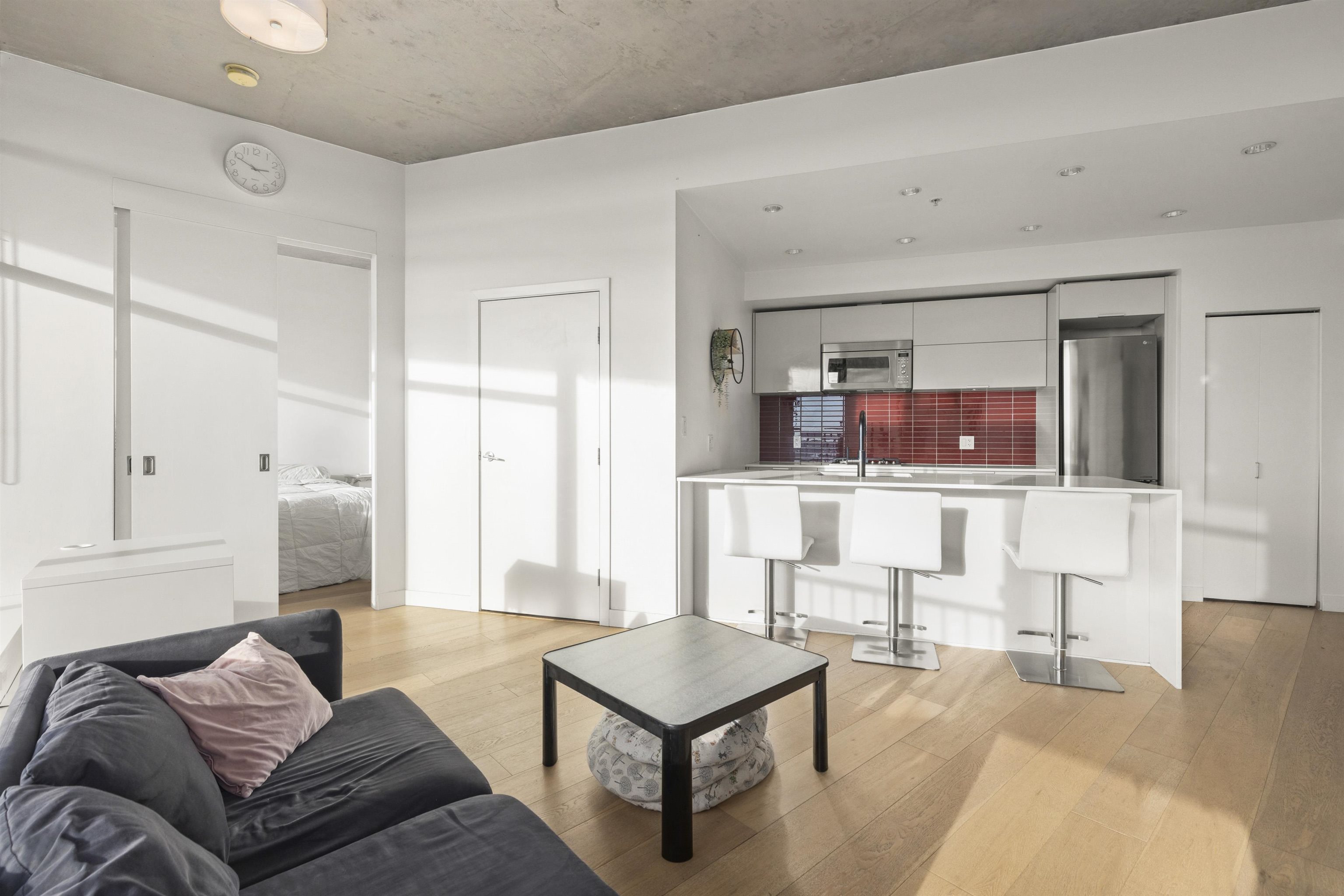 This is not your typical home at the iconic Woodwards building! This 744 SF 1 bedroom + Den (can be used a second bedroom) & 1 bathroom PENTHOUSE condo features 10'6 polished concrete ceilings, custom upgrades include wide plank engineered oak flooring, wood vanity in the bathroom, waterfall quartz counter top, S/S appliances including a gas stove, Juliet balcony & floor to ceiling panoramic windows to accentuate the WATER, MOUNTAIN, and CITY VIEWS. The AMENITIES: Convenient access to Club W amenities which...