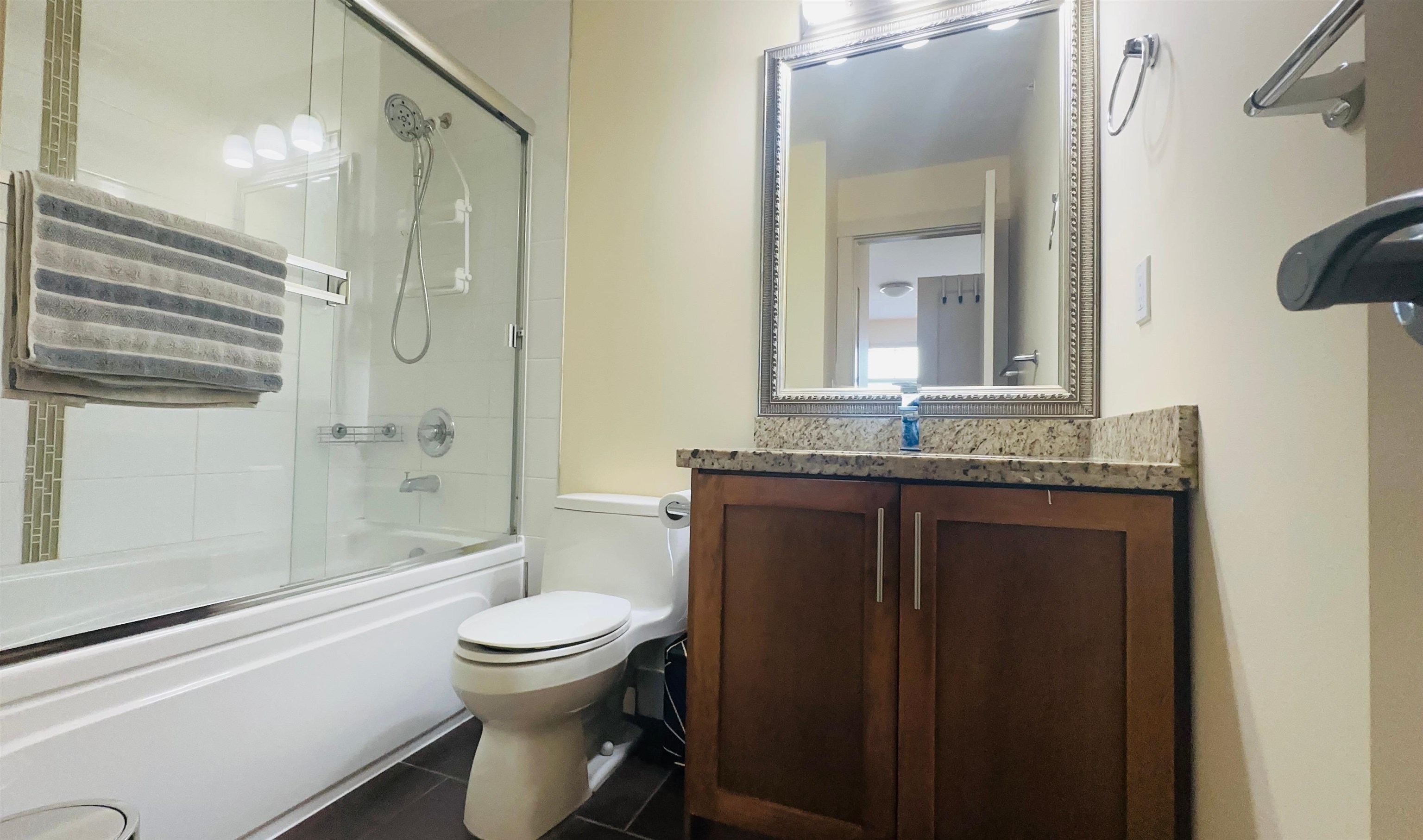 Top-floor 2-bed, 2 bath home in the sought-after SOHO building, complete with two large side-by-side parking stalls. Quiet north-facing unit with 9-ft ceilings, fresh paint, crown mouldings, and beautiful North Shore mountain views. Open layout with granite counters, stainless steel appliances, electric fireplace, and maple cabinetry. Bedrooms are separated for privacy; primary includes a walk-in closet. Well-managed building with low strata fees including water & sewer, plus amenities: guests suite, party ...